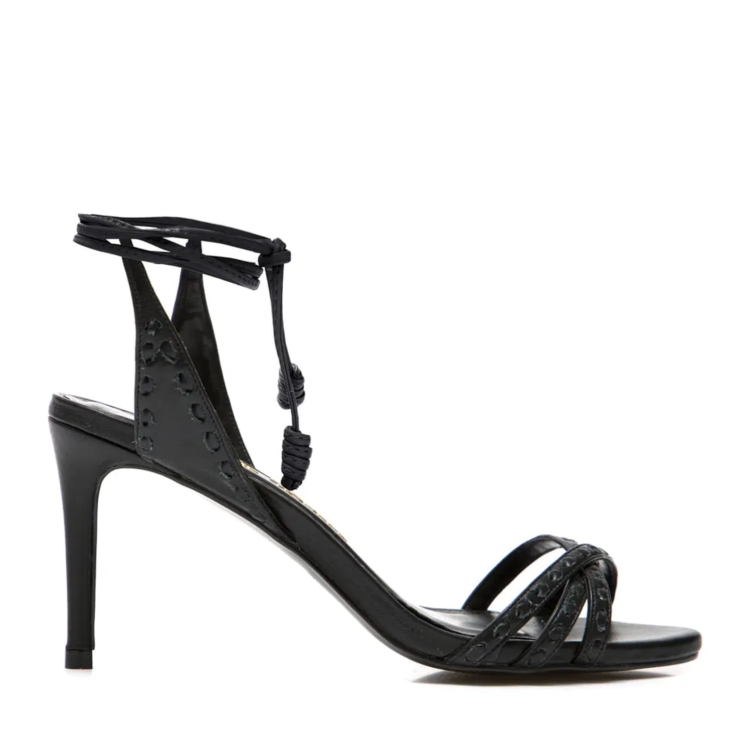 A Sandália Gisele é produzida em couro. A peça possui bico arredondado e tiras finas cruzadas com pesponto em couro na cor. No tornozelo, tiras para amarração com acabamento também em couro deixando a sandália mais delicada e feminina.