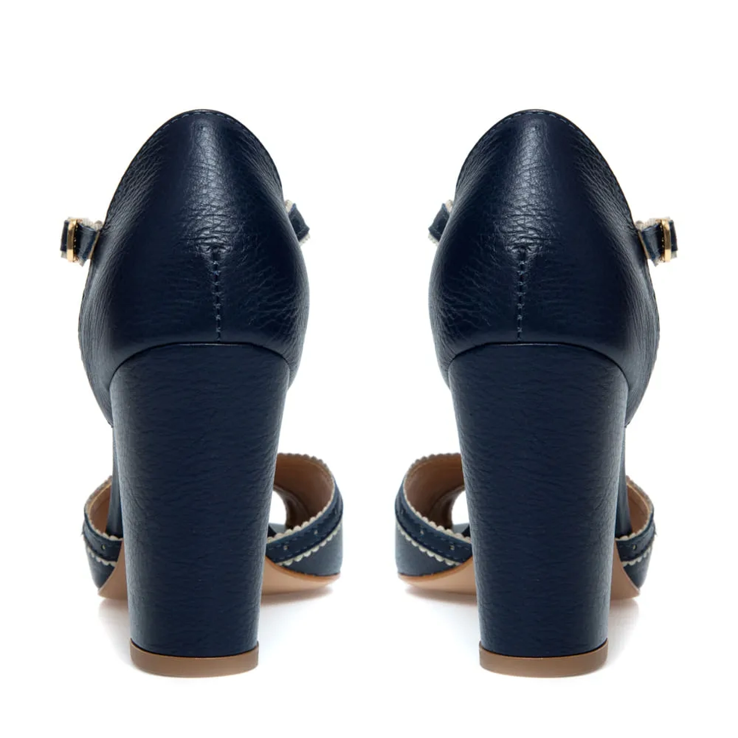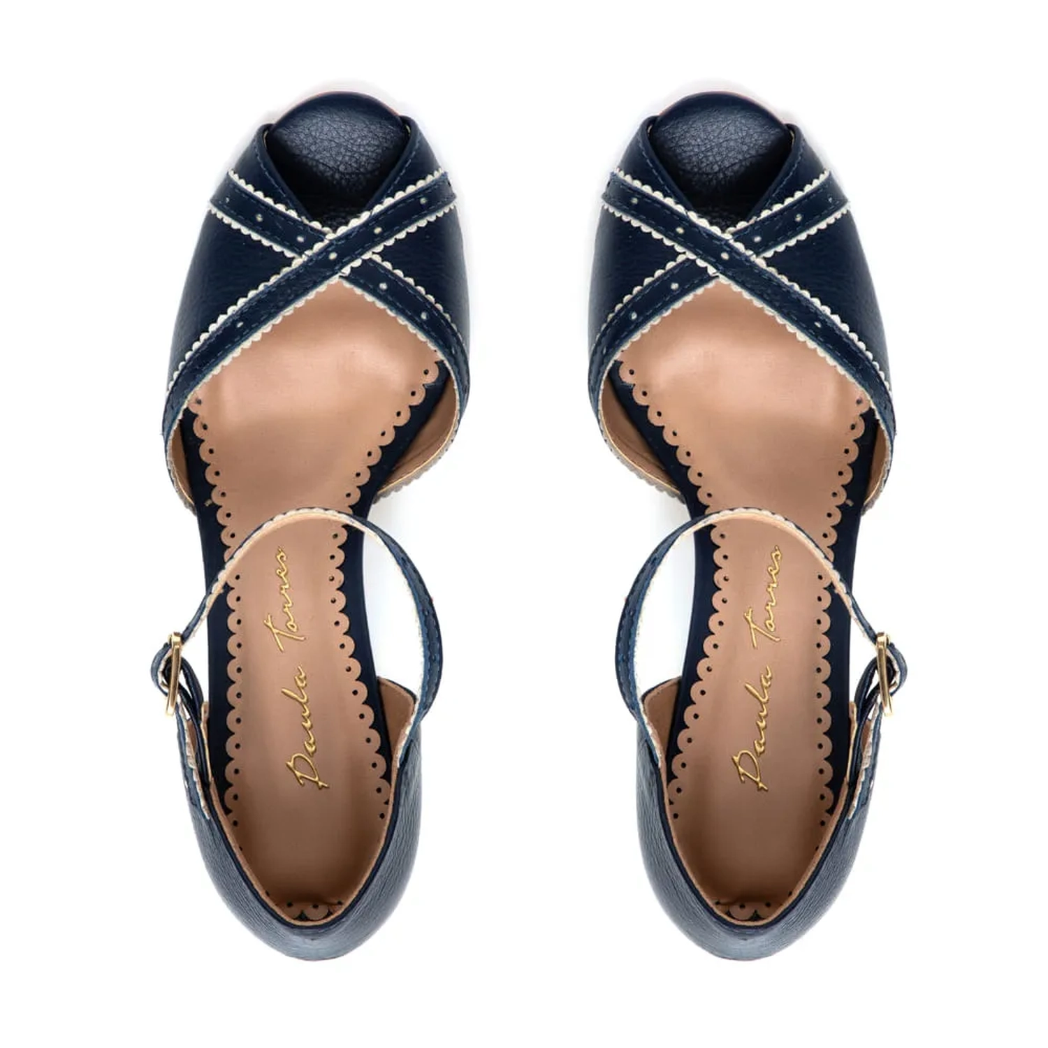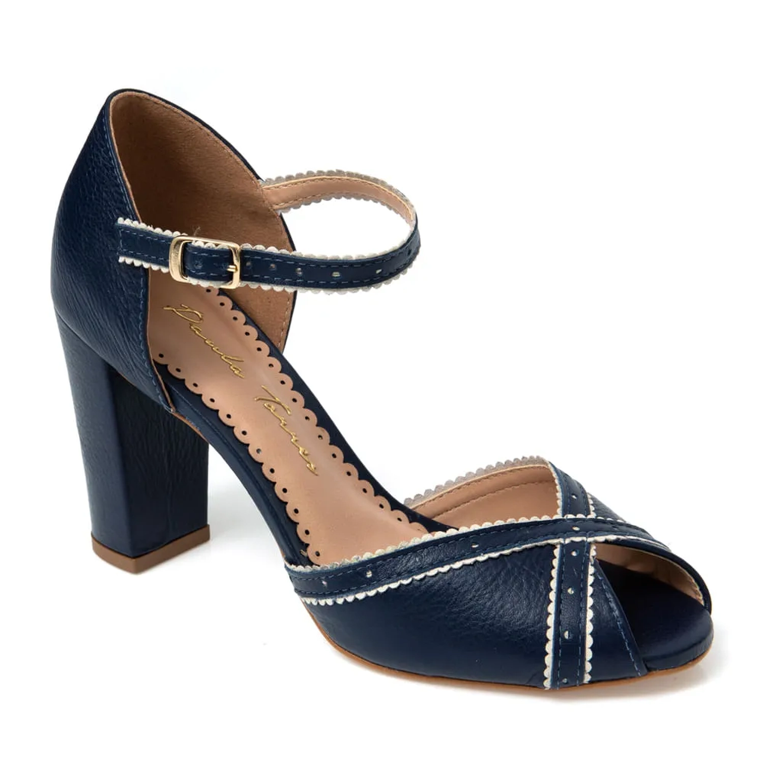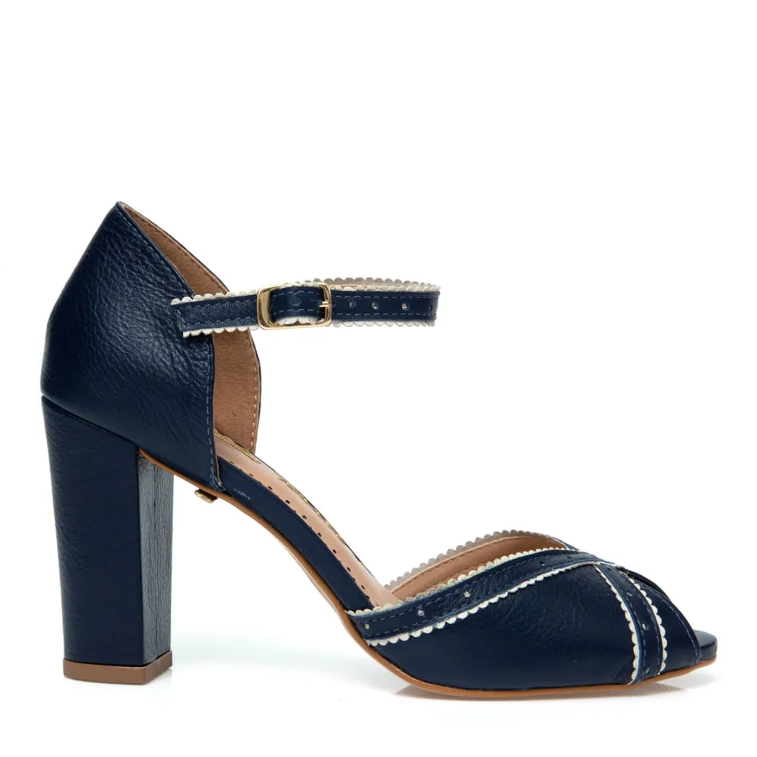 A Sandália Giuliane é confeccionada em couro. Modelagem em bico redondo e aberto. Cabedal composto por duas tiras finas com detalhe de babados em cor contrastante. Fechamento lateral por fivela metalizada. Por conta do salto grosso e da calcanheira, o modelo oferece mais conforto e segurança. Alternativa romântica trazendo mais feminilidade ao look. Qualidade Paula Torres.