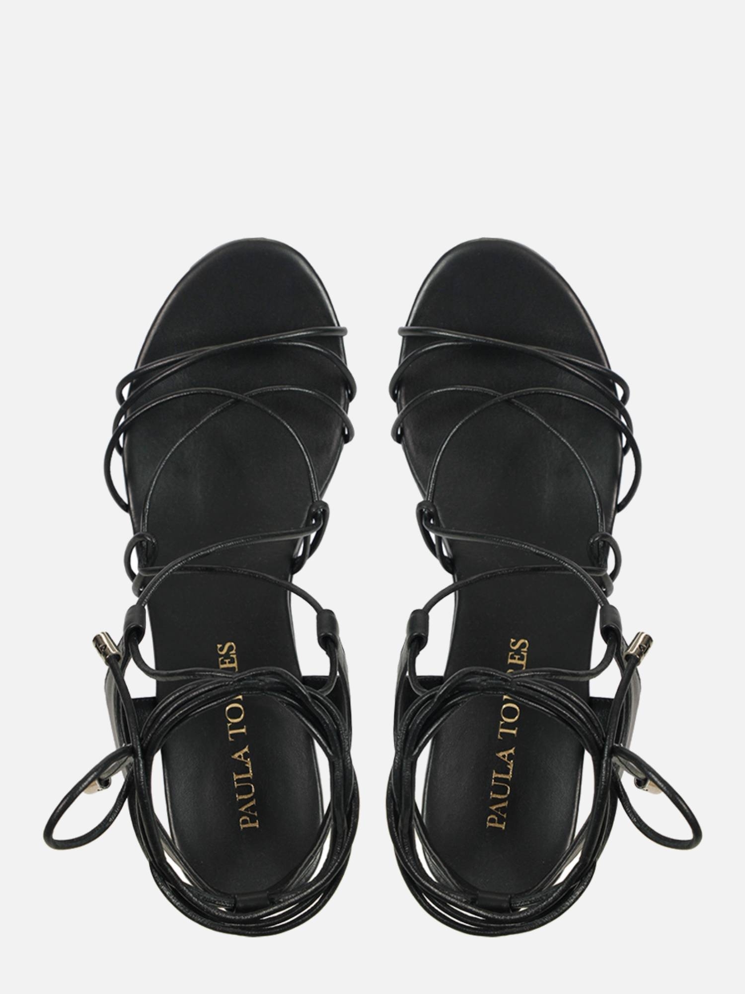 A Sandália Greta é confeccionada em couro. A modelagem conta com cabedal de tira trançada e fechamento por amarração. O modelo destaca-se por sua plataforma que apresenta salto arquitetônico e meia pata. A versatilidade com o toque de modernidade e conforto presente no DNA Paula Torres arrematam a peça.