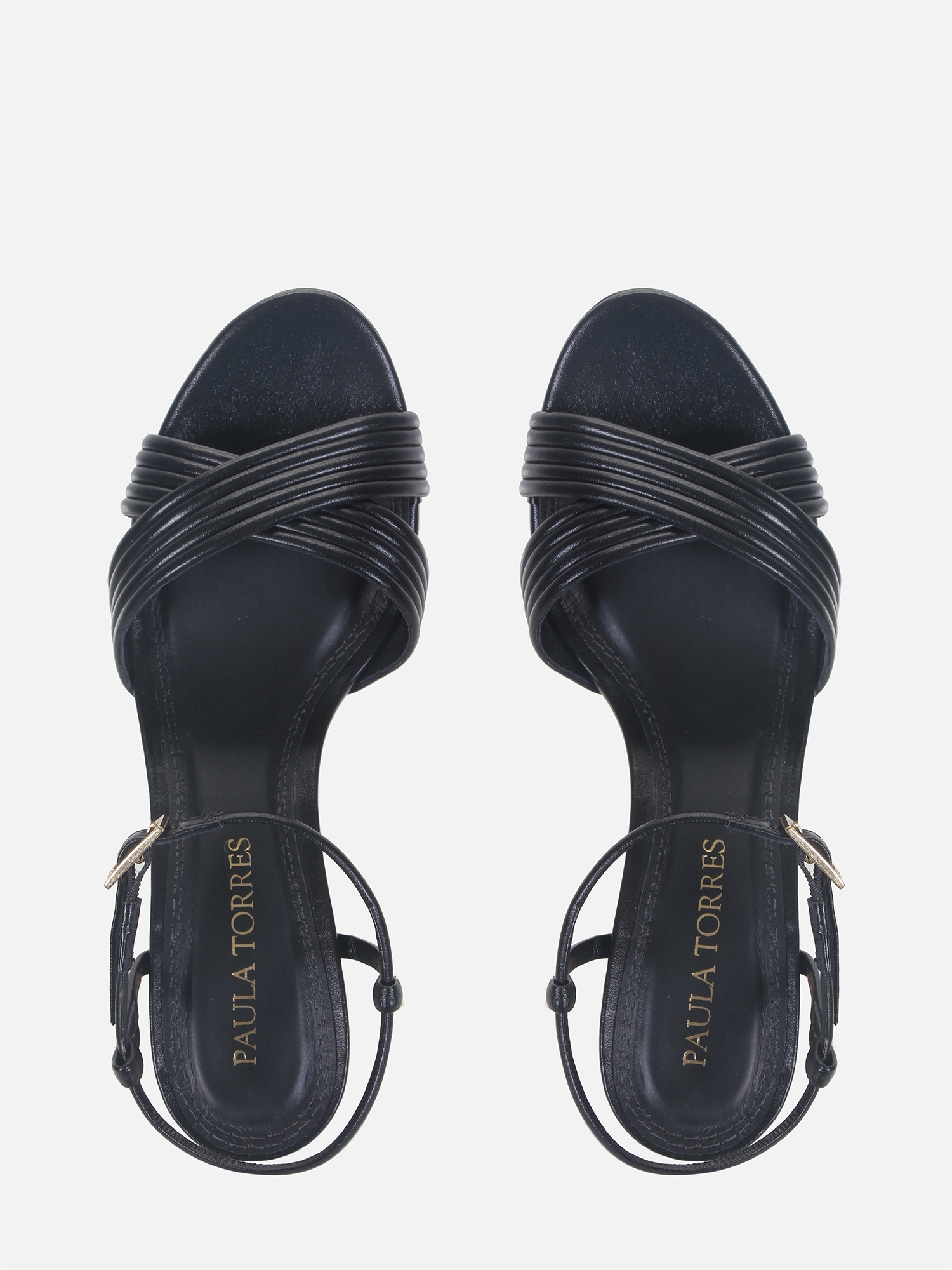 A Sandália Feminina Hope da Paula Torres é a combinação perfeita entre sofisticação e conforto. Confeccionada em couro preto, apresenta design moderno com gáspea em formato X e tiras em couro formando um canelado que valorizam o brilho do acabamento metálico.
