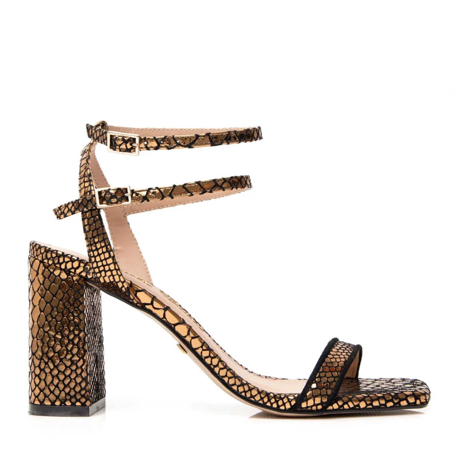 Tendência absoluta deste inverno, o metalizado está presente em grande parte da nossa nova coleção. Pra ficar melhor ainda, é no modelo clássico de sandália de salto alto e grosso - extremamente confortável e uma ótima opção para trabalhar. Use com jeans para deixar seu look ainda mais descolado, ou para uma ocasião mais especial que pede algo moderno e cheio de charme. Cor: Bronze Salto: 9.0 CM