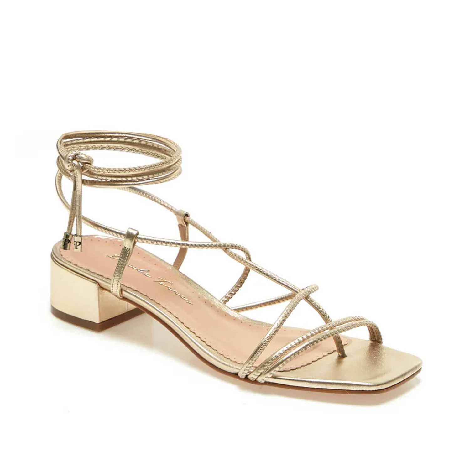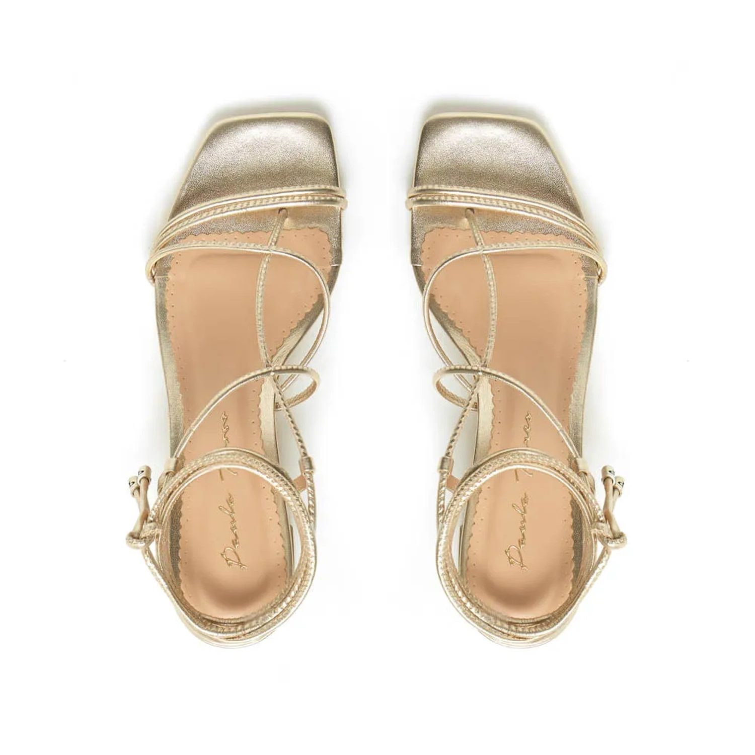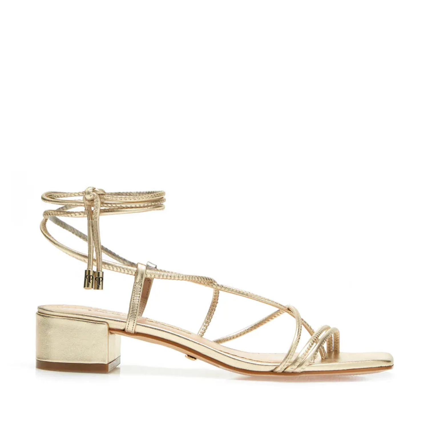 Produzida em couro, a Sandália Kate é ideal para o verão. As tiras levemente acolchoadas, cruzam no peito, sendo uma saindo entres dedos. O bico quadrado e o metalizado trazem modernidade a peça. Fechamento feito por amarração no tornozelo.