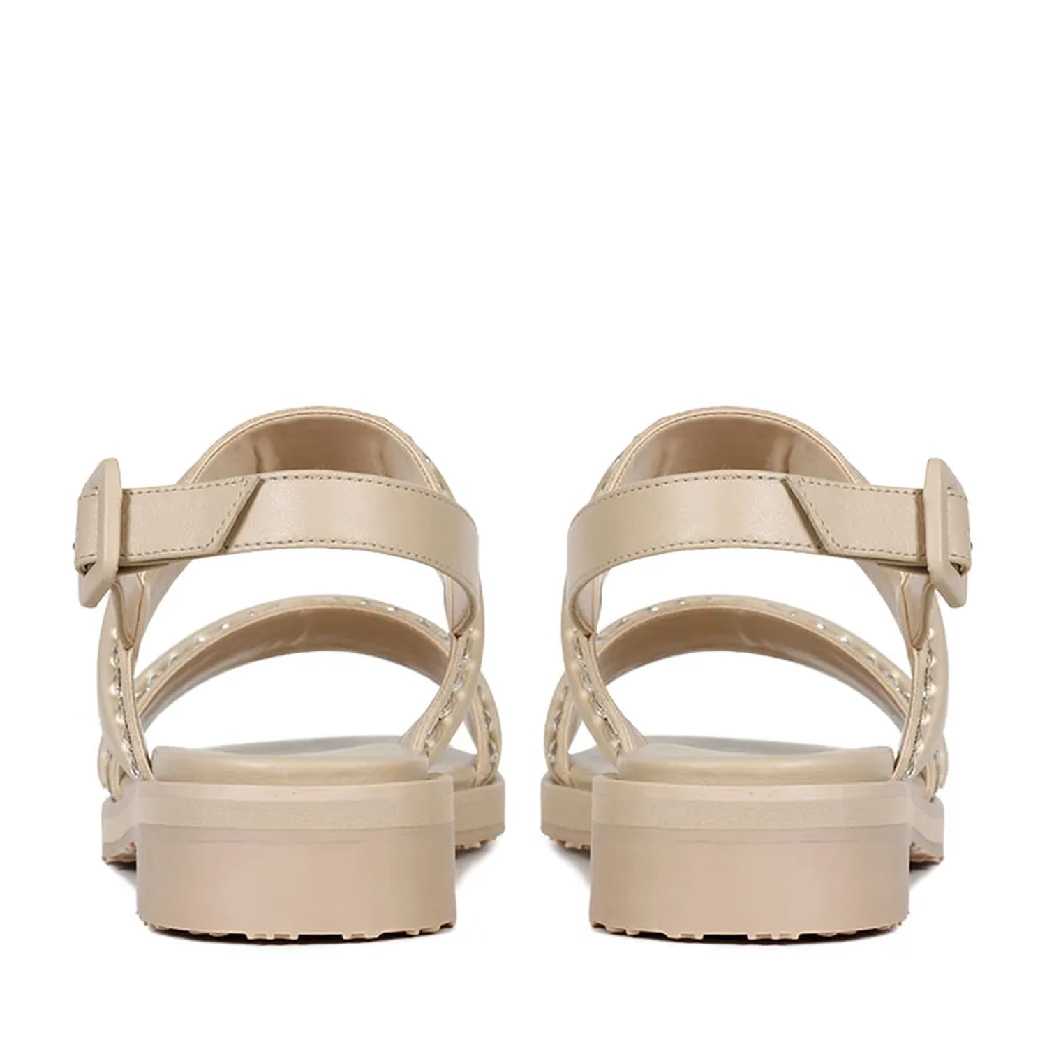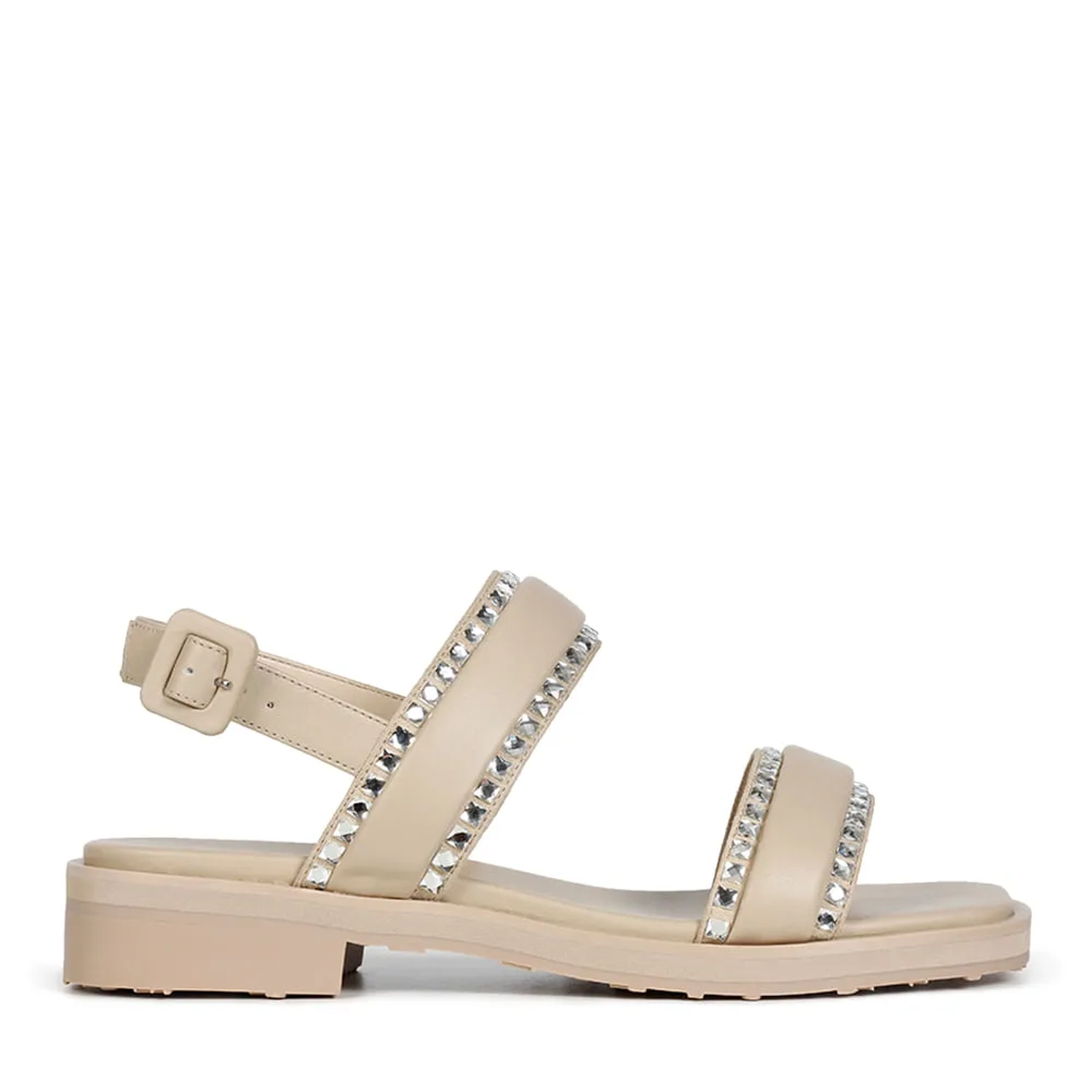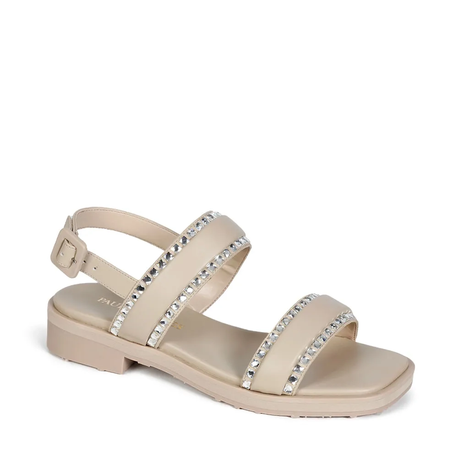 A Sandália Lola é confeccionada em couro. Modelagem que traz muito conforto e segurança ao calce, através do salto baixo bloco e fechamento ajustável por fivela. O diferencial da peça são os cristais embutidos nas extremidades das tiras que compõem o cabedal, conferindo glamour e estilo.
