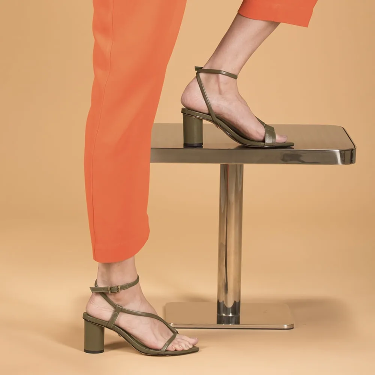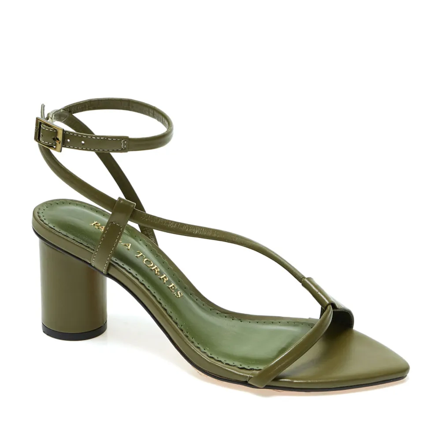 A sandália Lucca é confecciona em couro. O modelo conta com construção do cabedal em tiras finas e como ponto chave a delicadeza do desenho que o modelo faz no peito do pé, além de salto exclusivo em formato pilar. A riqueza de detalhes e sutileza no seu desenvolvimento são percebidos no leve acolchoado das tiras, na fivela com monograma da marca e no debrum contrastante da sola trazendo continuidade ao taco do salto. Uma sandália eterna que reafirma a atemporalidade e femilidade presentes no DNA Paula Torres.