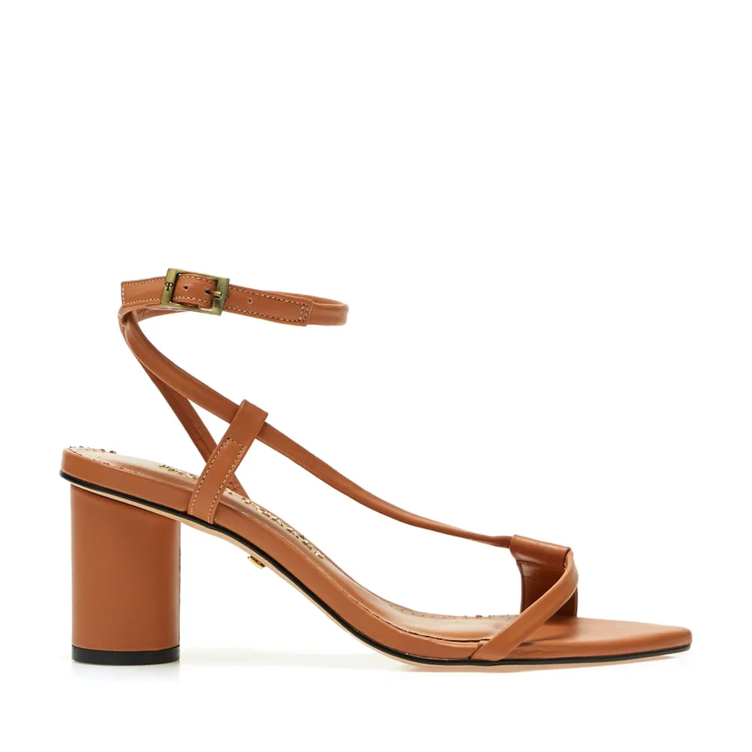 A sandália Lucca é confecciona em couro. O modelo conta com construção do cabedal em tiras finas e como ponto chave a delicadeza do desenho que o modelo faz no peito do pé, além de salto exclusivo em formato pilar. A riqueza de detalhes e sutileza no seu desenvolvimento são percebidos no leve acolchoado das tiras, na fivela com monograma da marca e no debrum contrastante da sola trazendo continuidade ao taco do salto. Uma sandália eterna que reafirma a atemporalidade e femilidade presentes no DNA Paula Torres.
