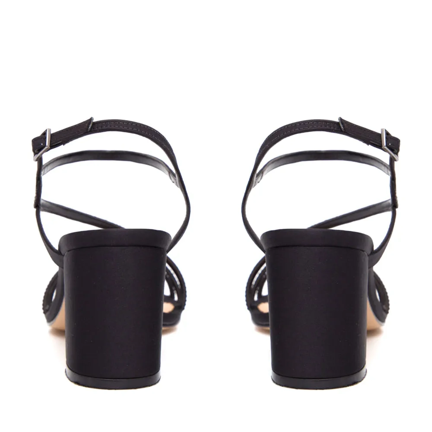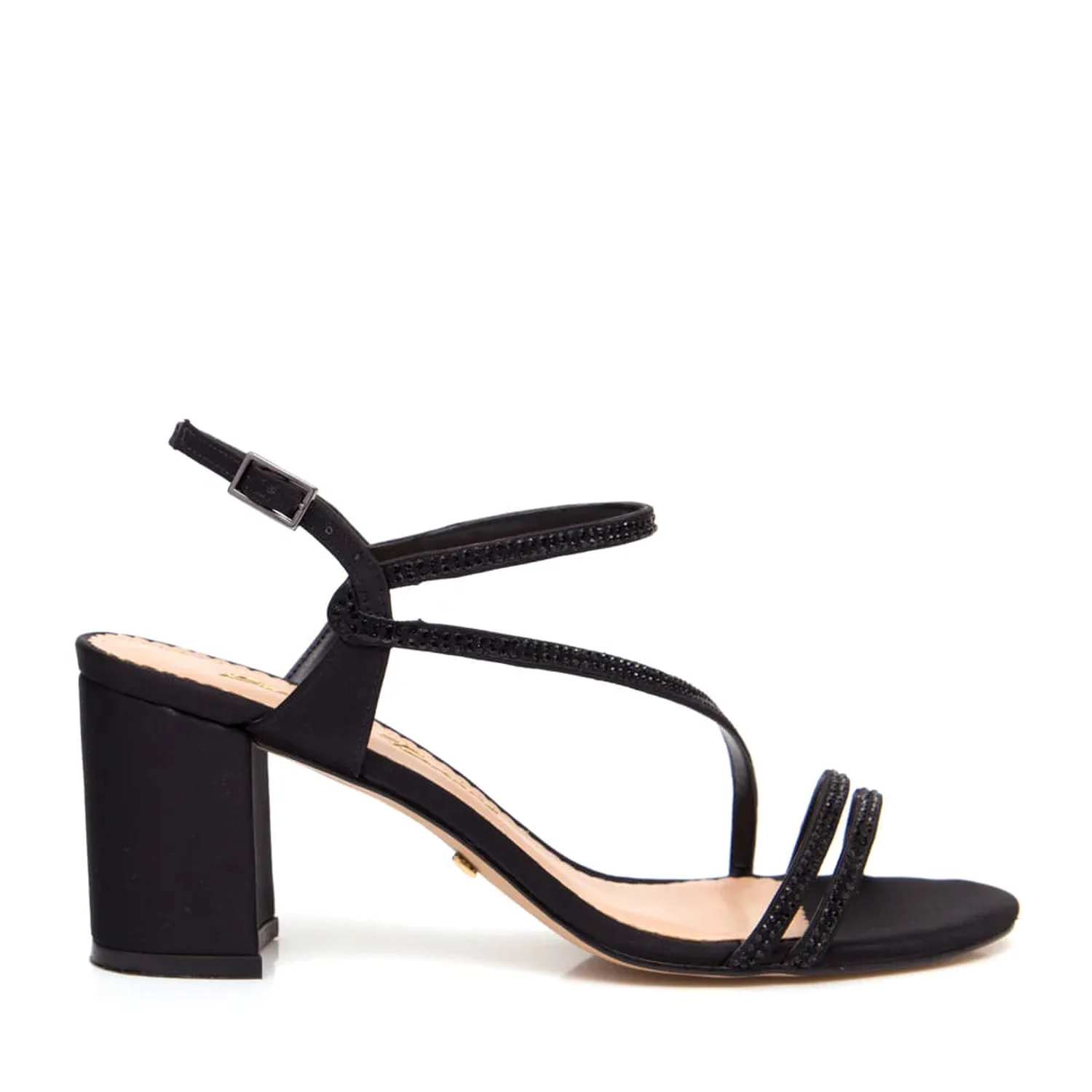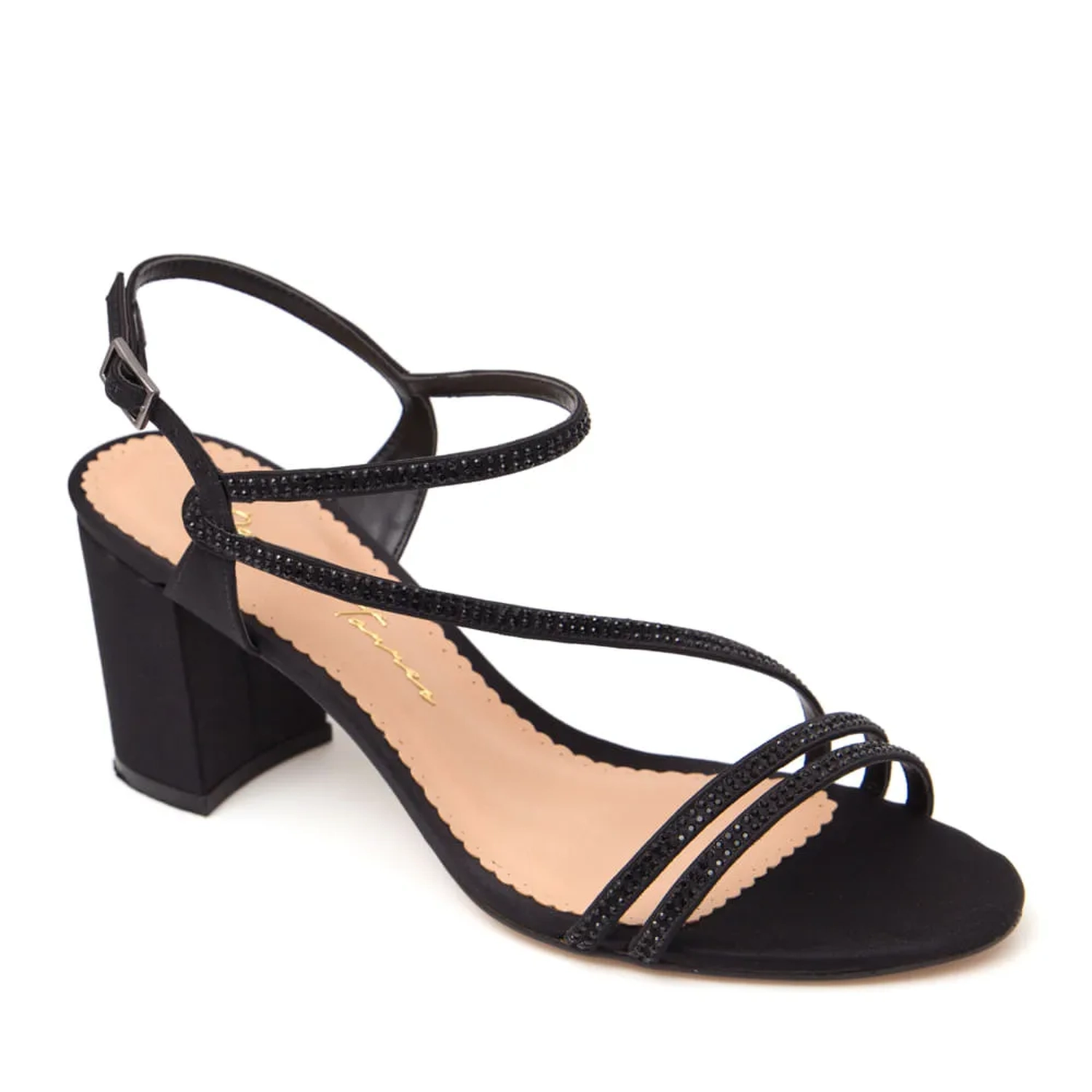 A Sandália Maisa é confeccionada em couro. Modelagem em bico redondo e salto bloco. O diferencial do modelo é a assimetria do cabedal no peito do pé. As tiras de couro possuem strass embutido, tornando o modelo ainda mais sofisticado e charmoso. O fechamento é lateral por fivela.