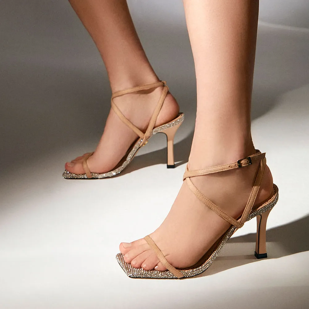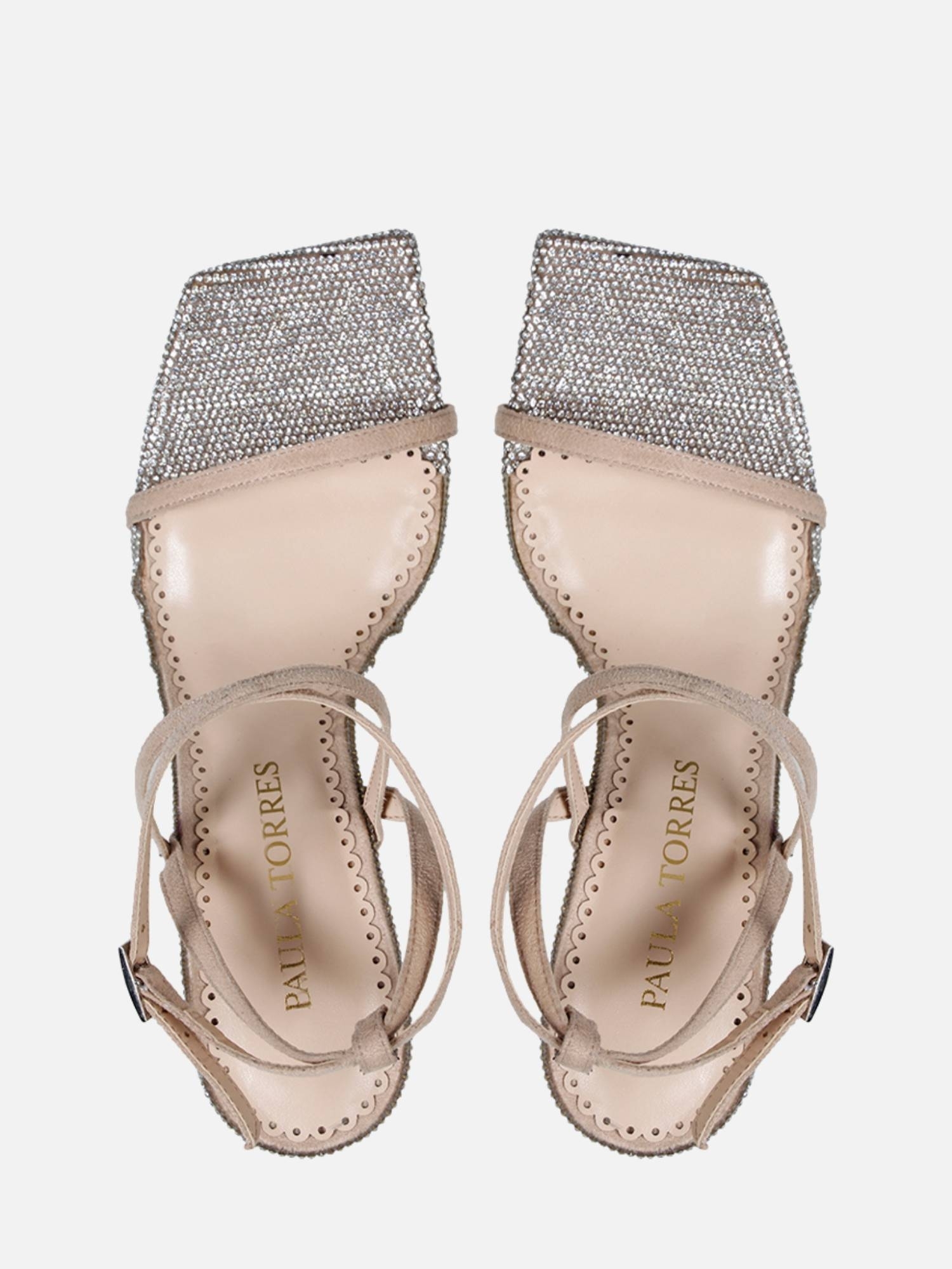 A Sandália Martina é confeccionada em couro. Modelagem em bico quadrado e salto alto taça. Construção composta por finas tiras de couro, uma na parte frontal, e duas na parte traseira, envolvendo o calcanhar e se cruzando sobre o peito do pé, criando uma estética contemporânea. O diferencial são os cristais embutidos na palmilha e na vira do modelo, revelando o brilho de maneira sofisticada, conferindo charme e glamour ao calce.