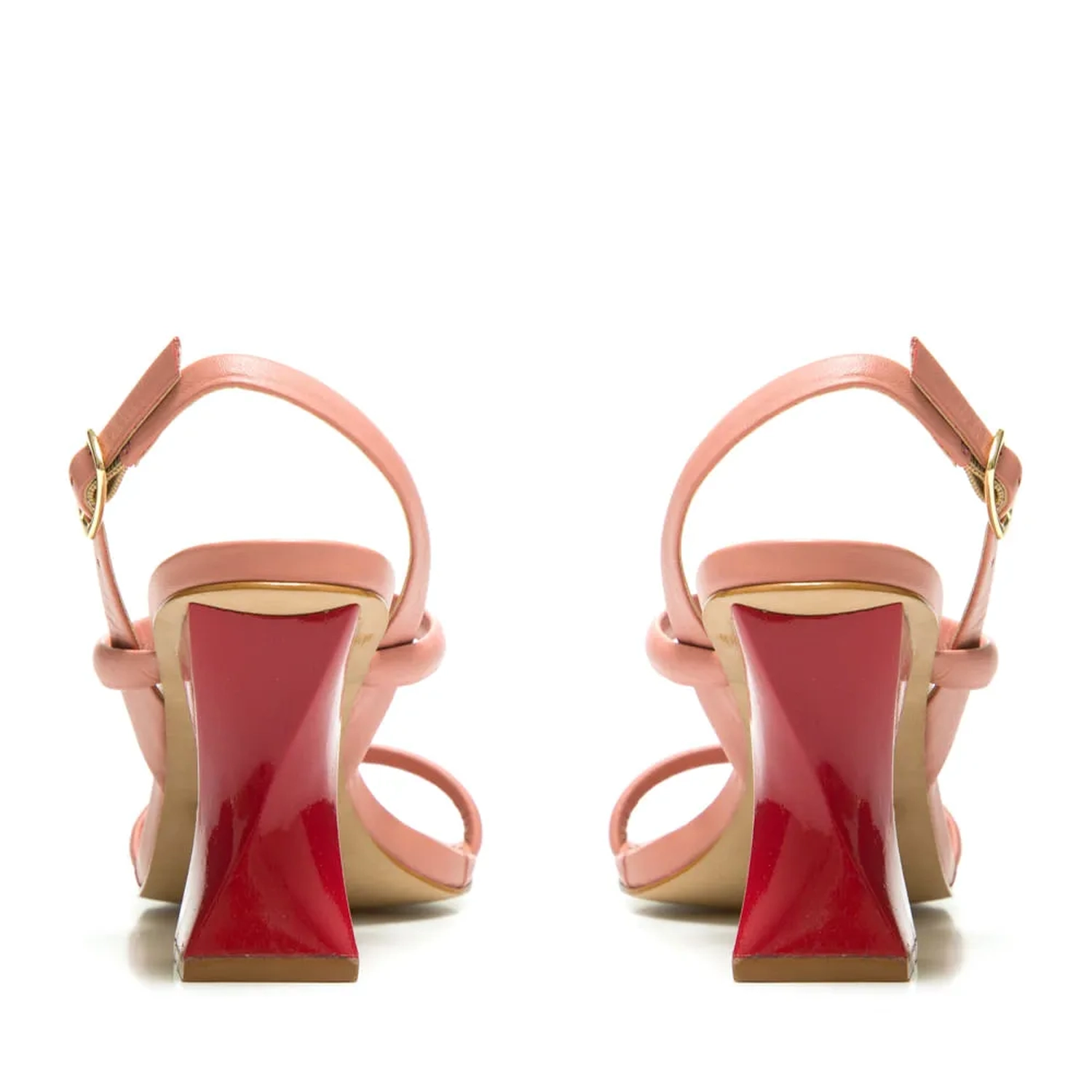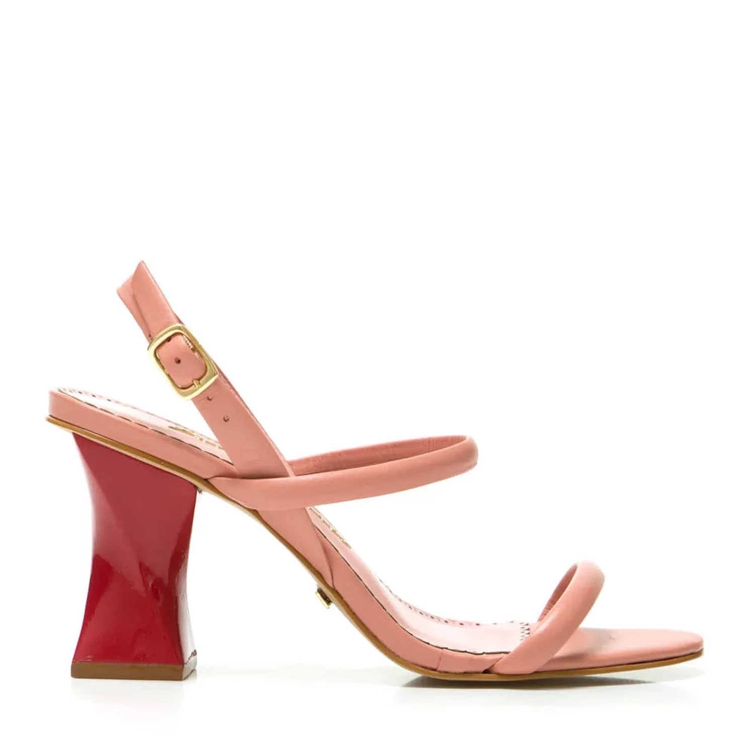 A Sandália Nápolis é produzida em couro. Modelagem com tiras frontais com leve acolchoado e fechamento por fivela lateral. O foco dessa sandália está no salto torcido e exclusivo Paula Torres. O modelo perfeito para sair do óbvio.