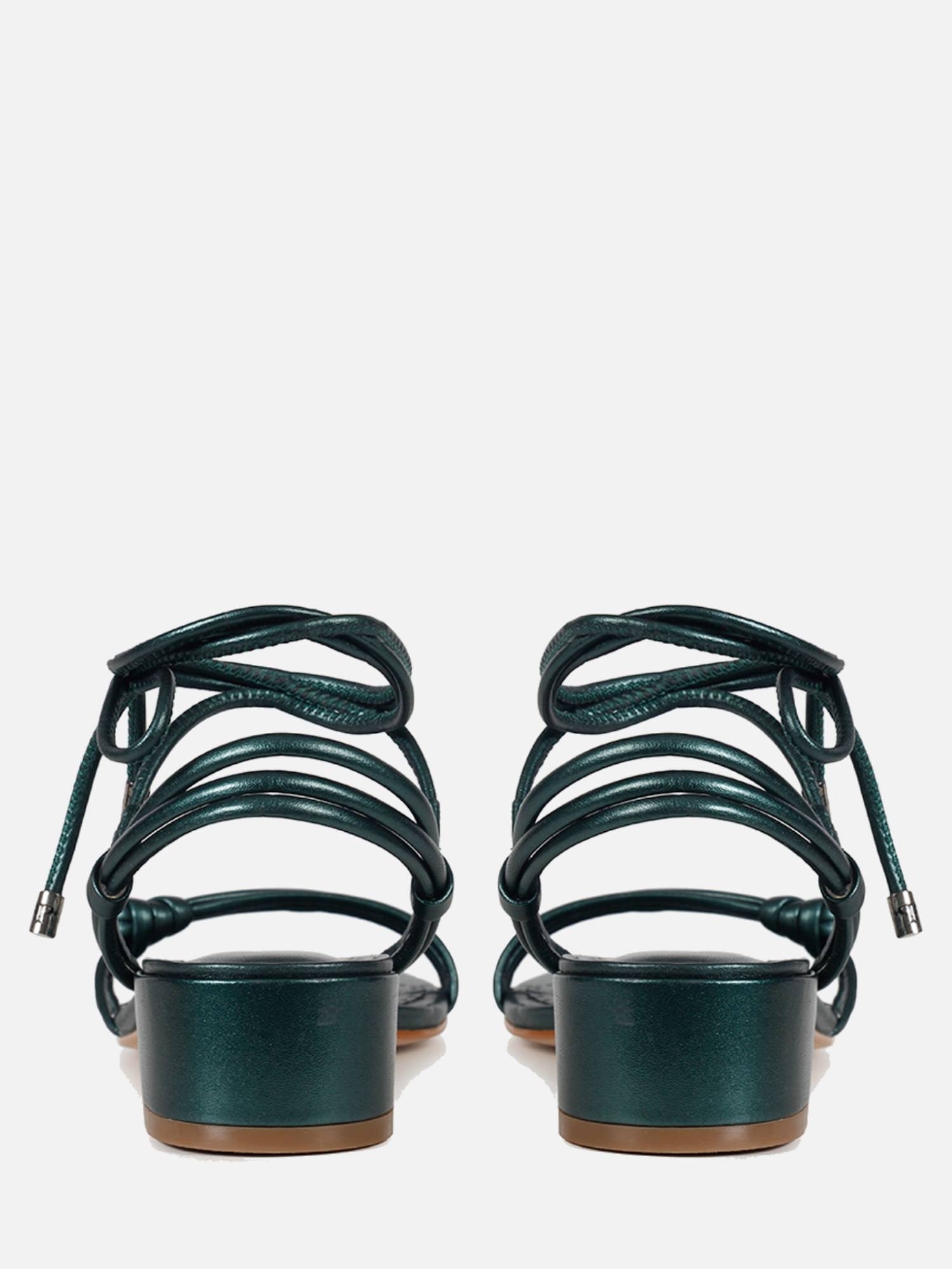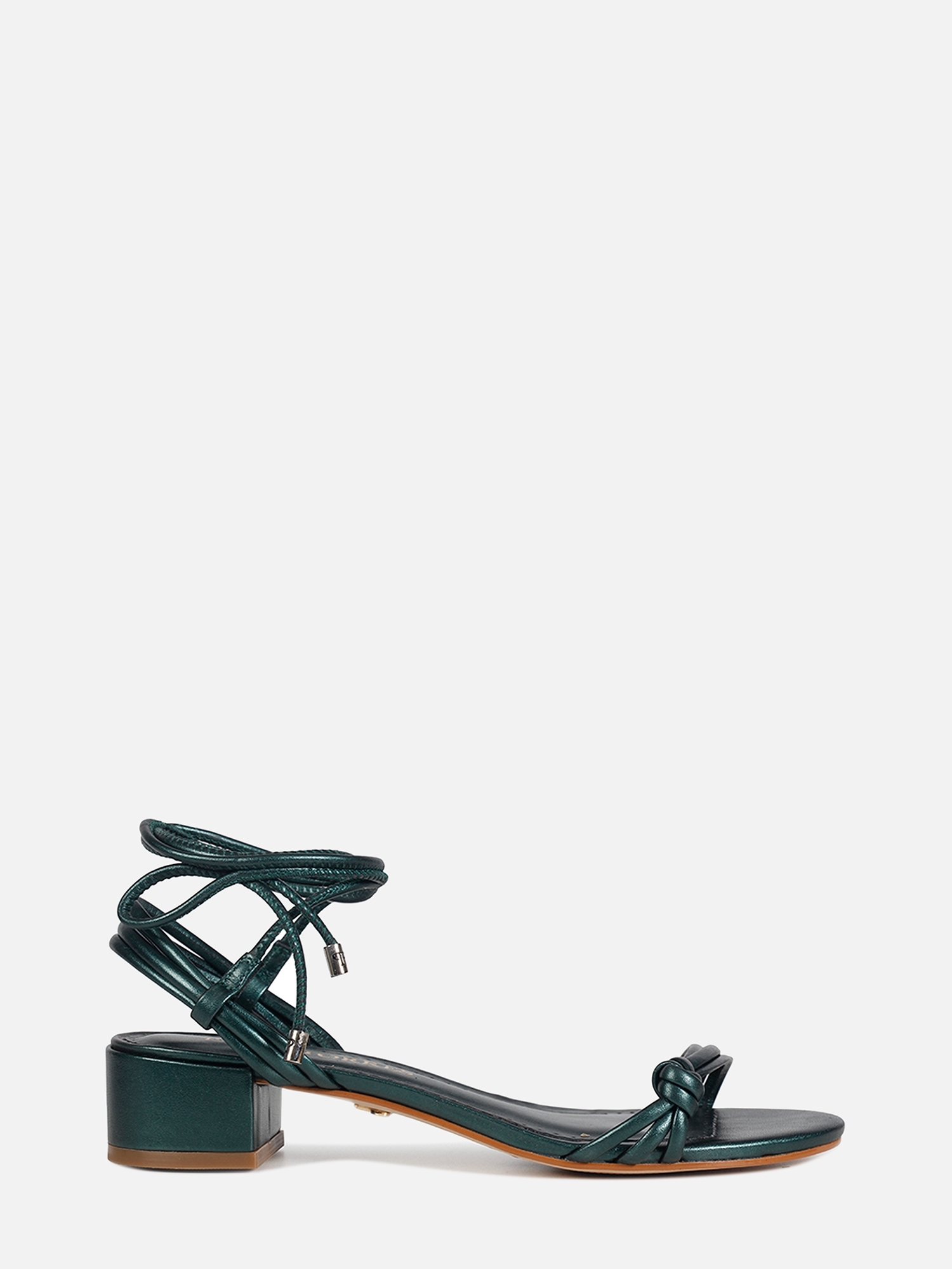 A Sandália Nicole é confeccionada em couro. Modelagem em bico redondo e salto baixo bloco. Construção clássica, composta por finas tiras de couro e fechamento por amarração. O destaque da peça são as tiras triplas e o nó lateral na parte frontal do cabedal, traduzindo o DNA handmande da marca, de maneira sofisticada e delicada. A cor metalizada e as ponteiras de amarração arrematam a peça de maneira charmosa.