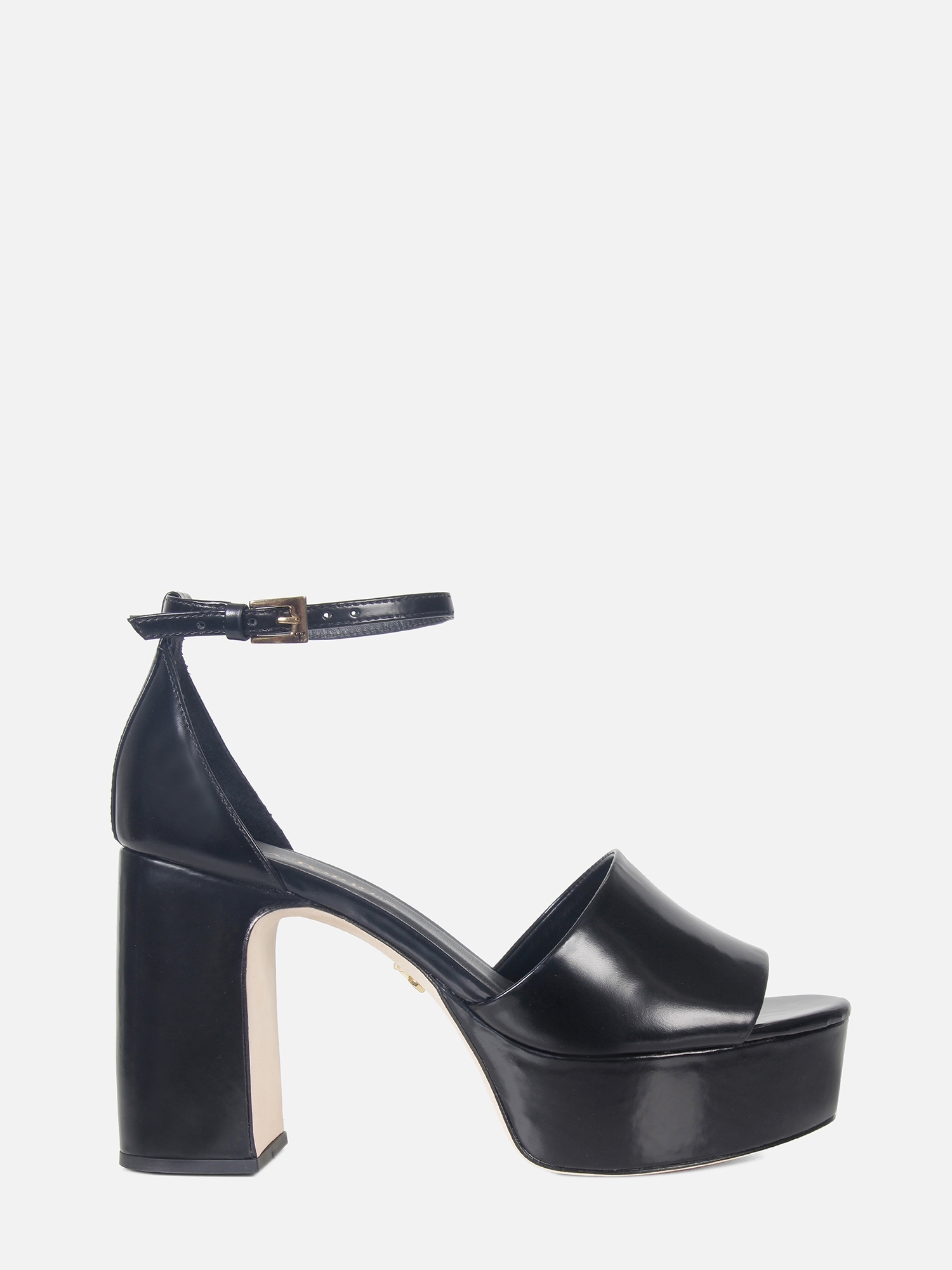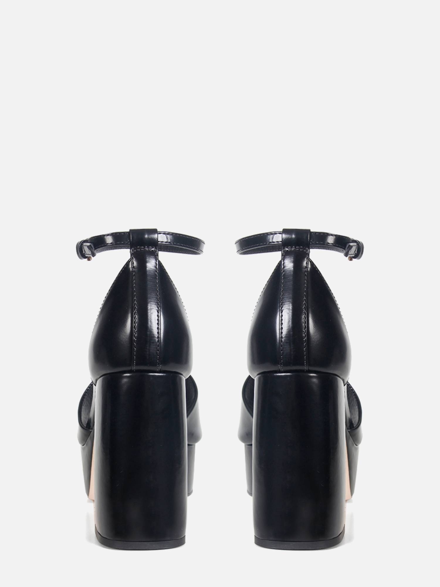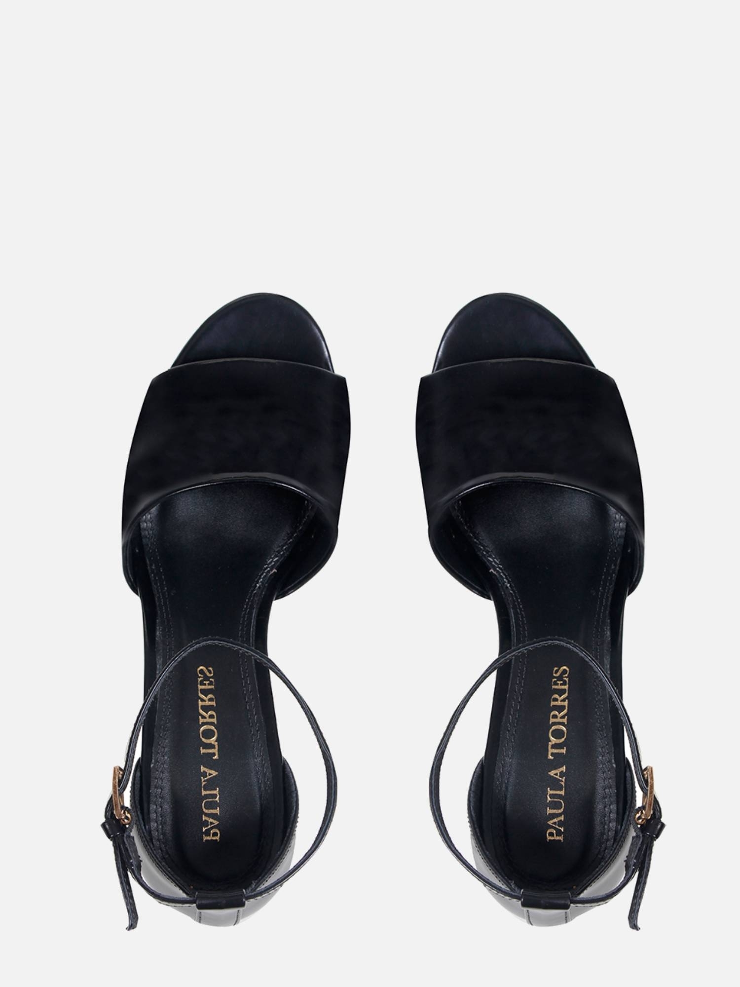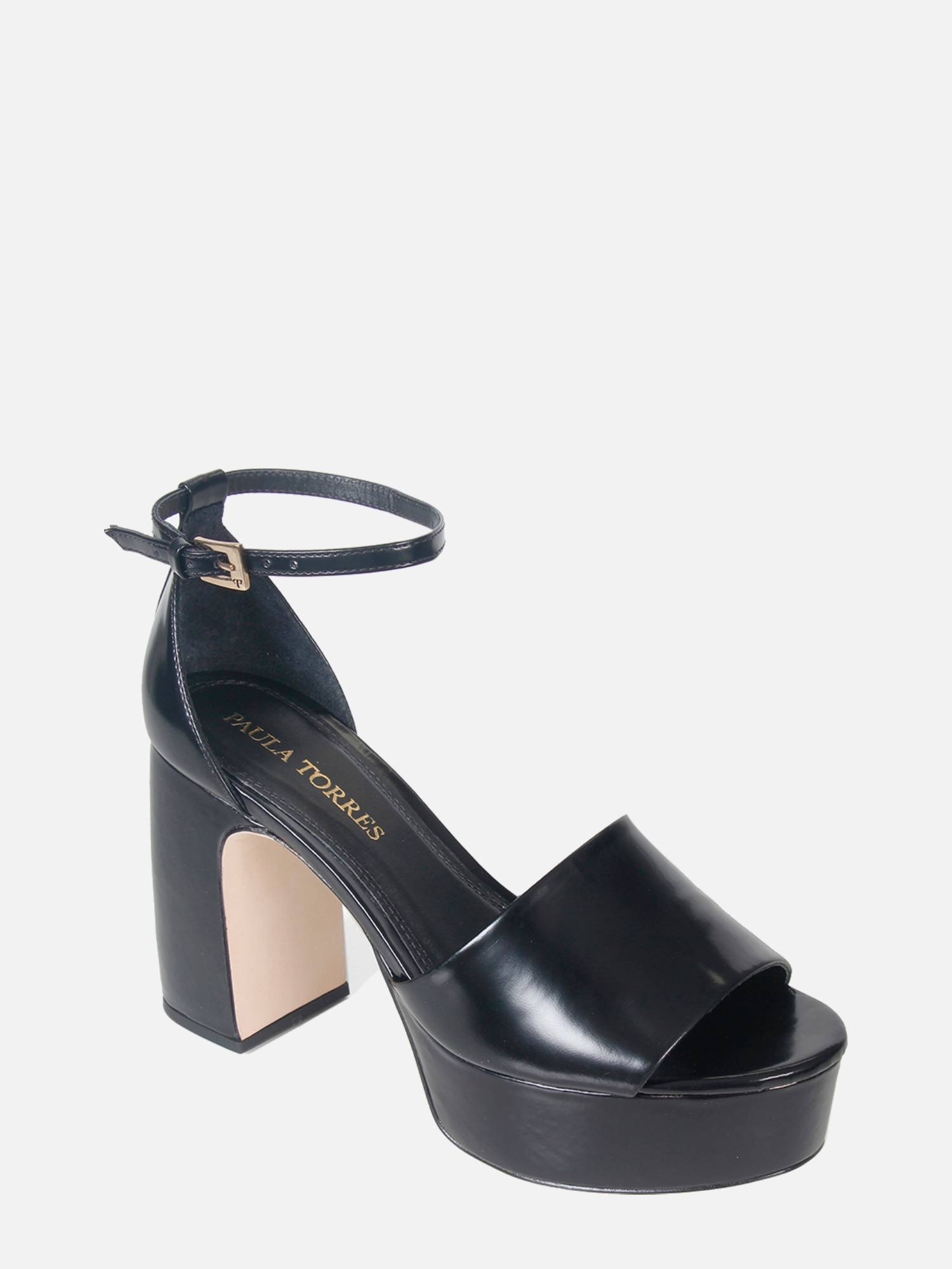 A Sandália Nora é produzida em couro box. O modelo apresenta salto grosso e meia-pata, projetados com uma curvatura reduzida para proporcionar maior conforto, mesmo para quem não está habituada a saltos altos. A sandália conta com uma tira larga na parte frontal e fechamento por fivela ajustável no tornozelo. O solado em couro reforça o conforto e a qualidade do design.