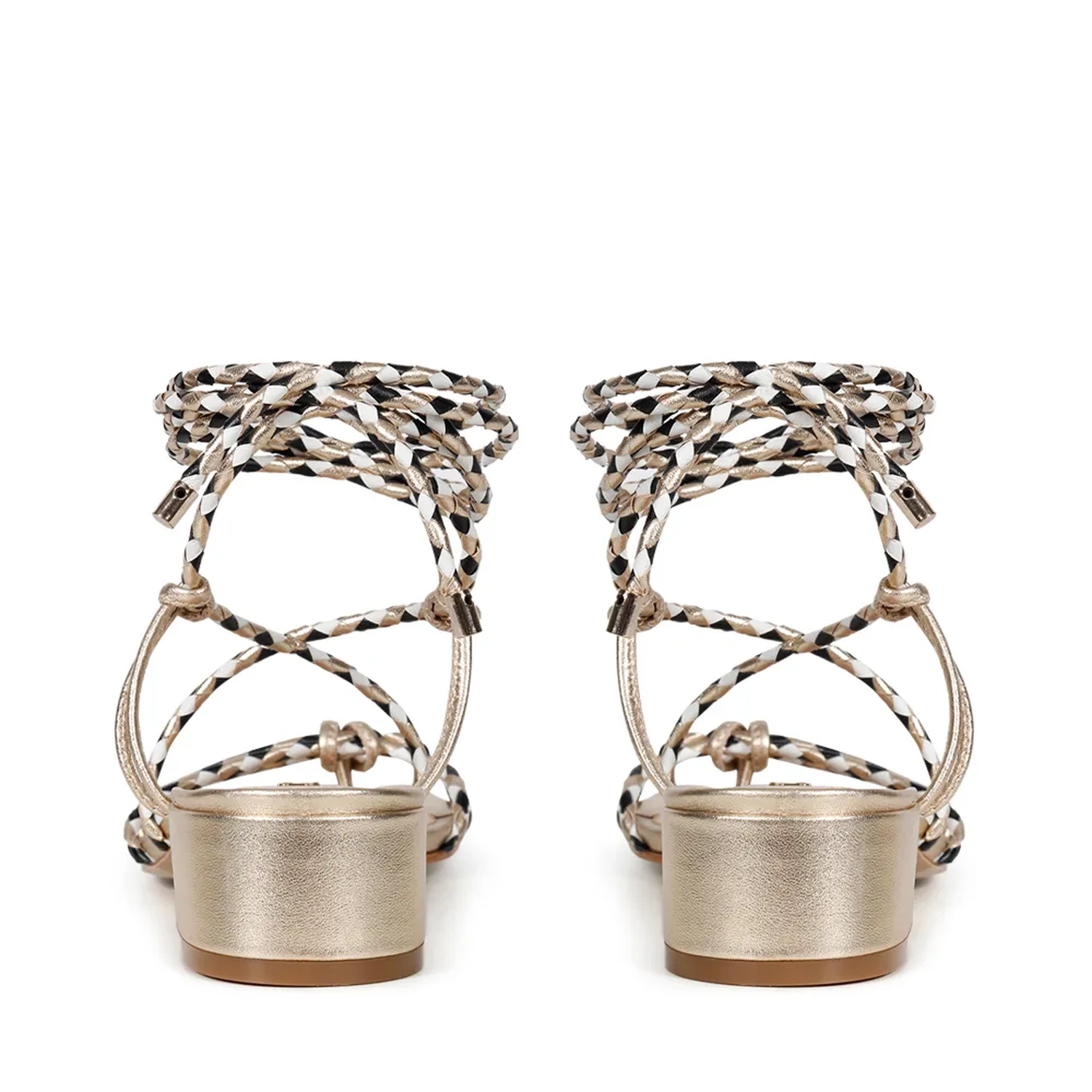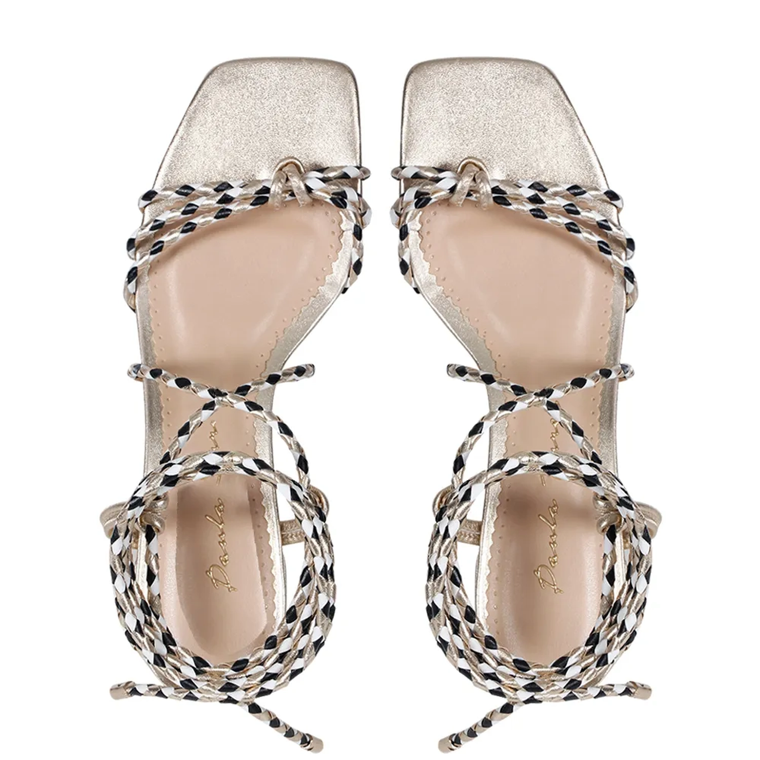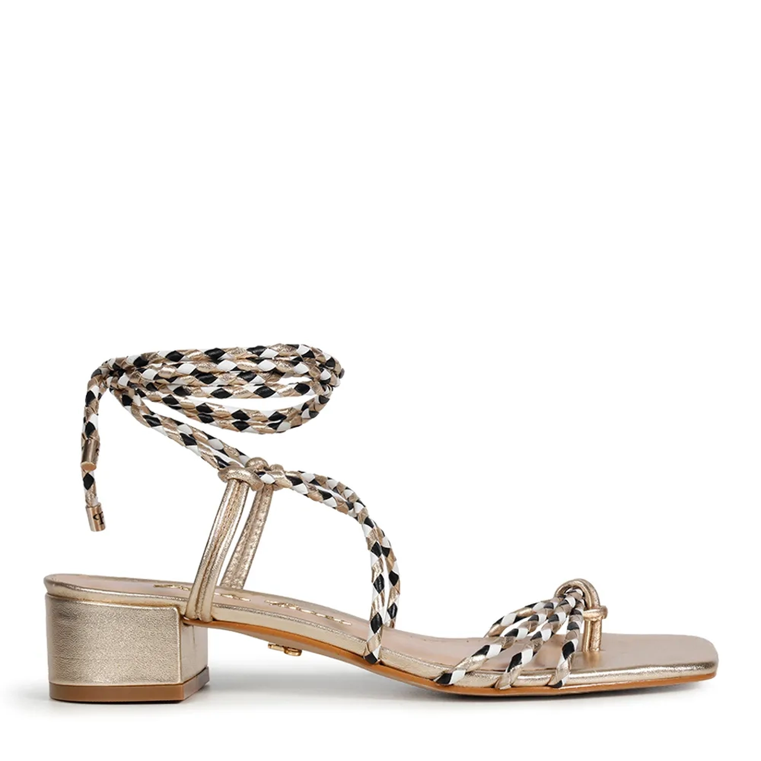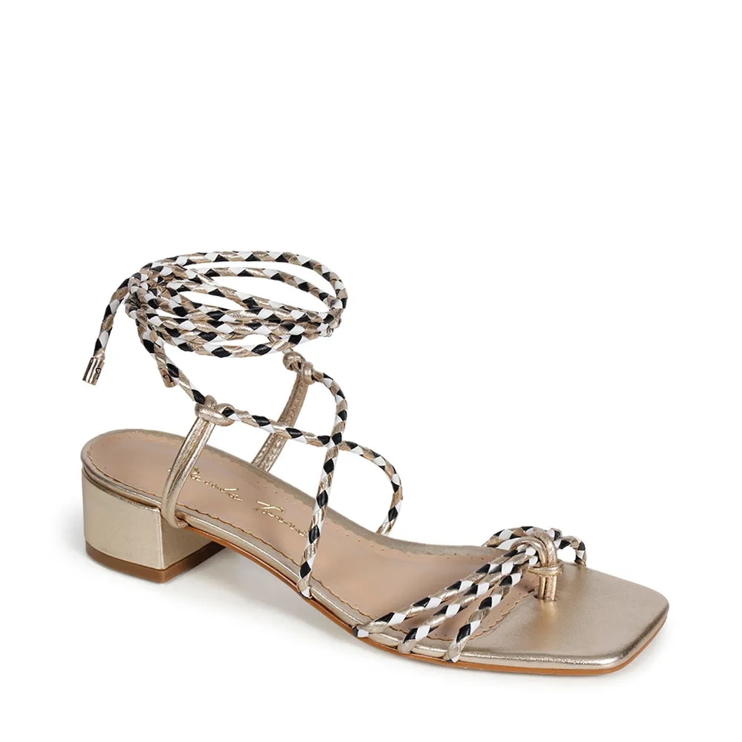 A Sandália Olivia é confeccionada em couro. Modelagem em bico quadrado e salto bloco. Cabedal e tornozeleira formada por tiras de couro trançado bicolor, remetendo ao estilo náutico. Na parte do peito do pé as tiras se encontram e formam um X, seguindo para a parte do tornozelo, onde ocorre o fechamento acorre por amarração. As extremidades das cordas são finalizadas com um charme metalizado. Super fresca e confortável, ideal para o Verão 22!