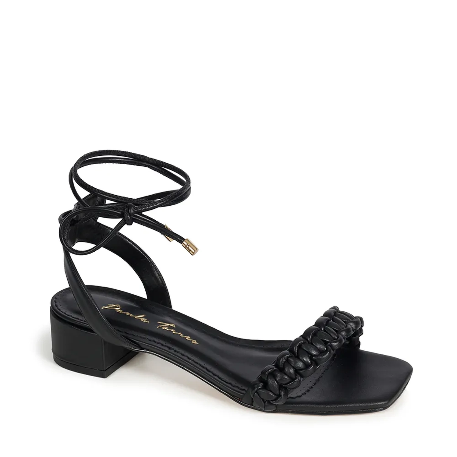 A Sandália Paola é confeccionada em couro. O modelo destaca o conforto e estilo em sua construção e o grande protagonista é o cabedal com trabalho em macramê, além de toda feminilidade em seu fechamento por amarração com tiras com a ponteira em metal com o logo da marca. Para finalizar, o salto bloco que confere estabilidade e elegância ao calce do modelo exclusivo Paula Torres