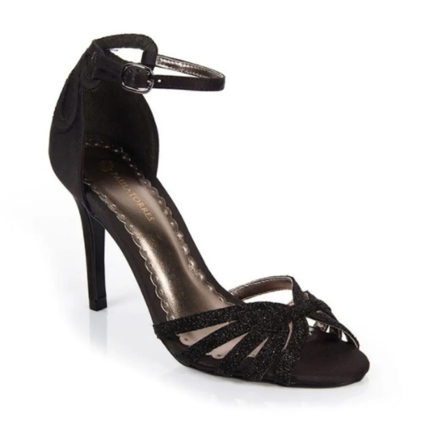 Sandália revestida em cetim e tiras finas em lurex. O detalhe na calcanheira dá um charme para a sandália, que é perfeita para uma festa, casamento, formatura ou evento especial. Fina e discreta, fica bem em diversos looks e ocasiões.