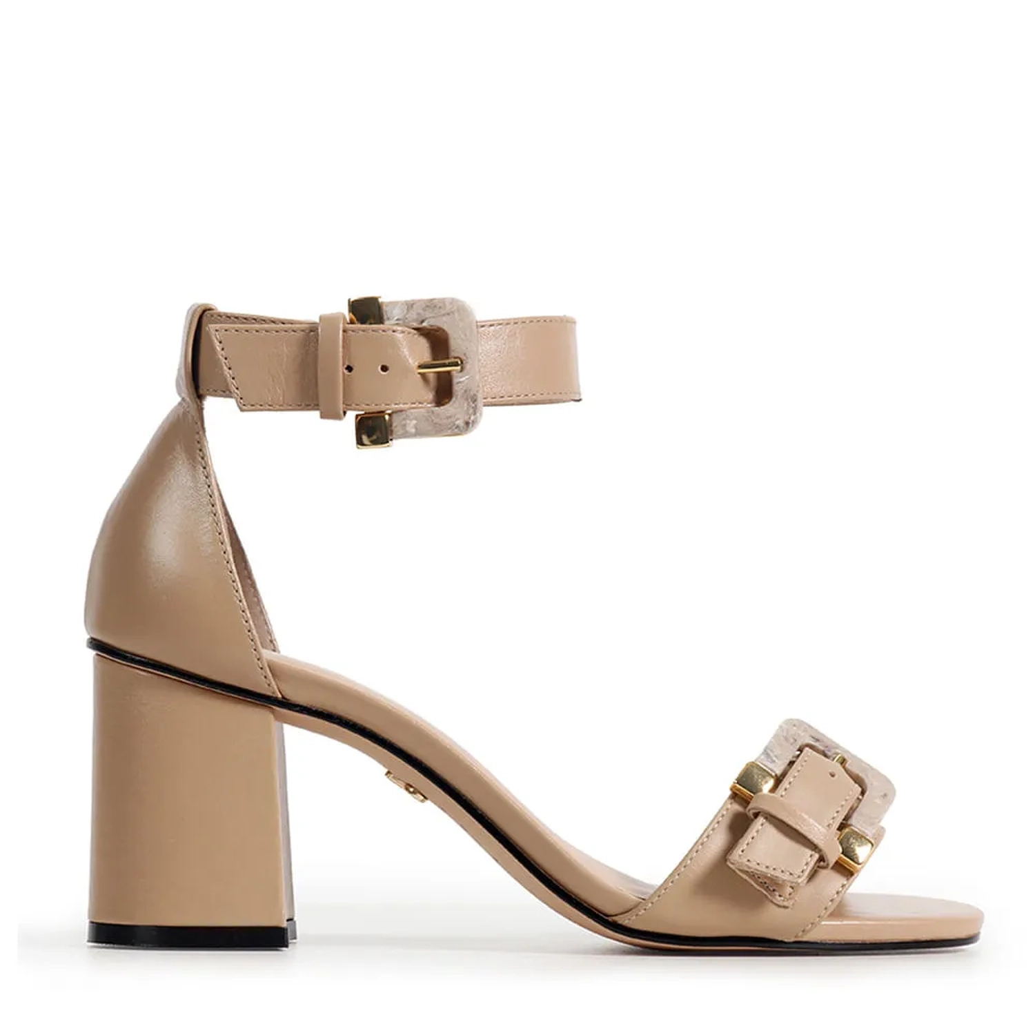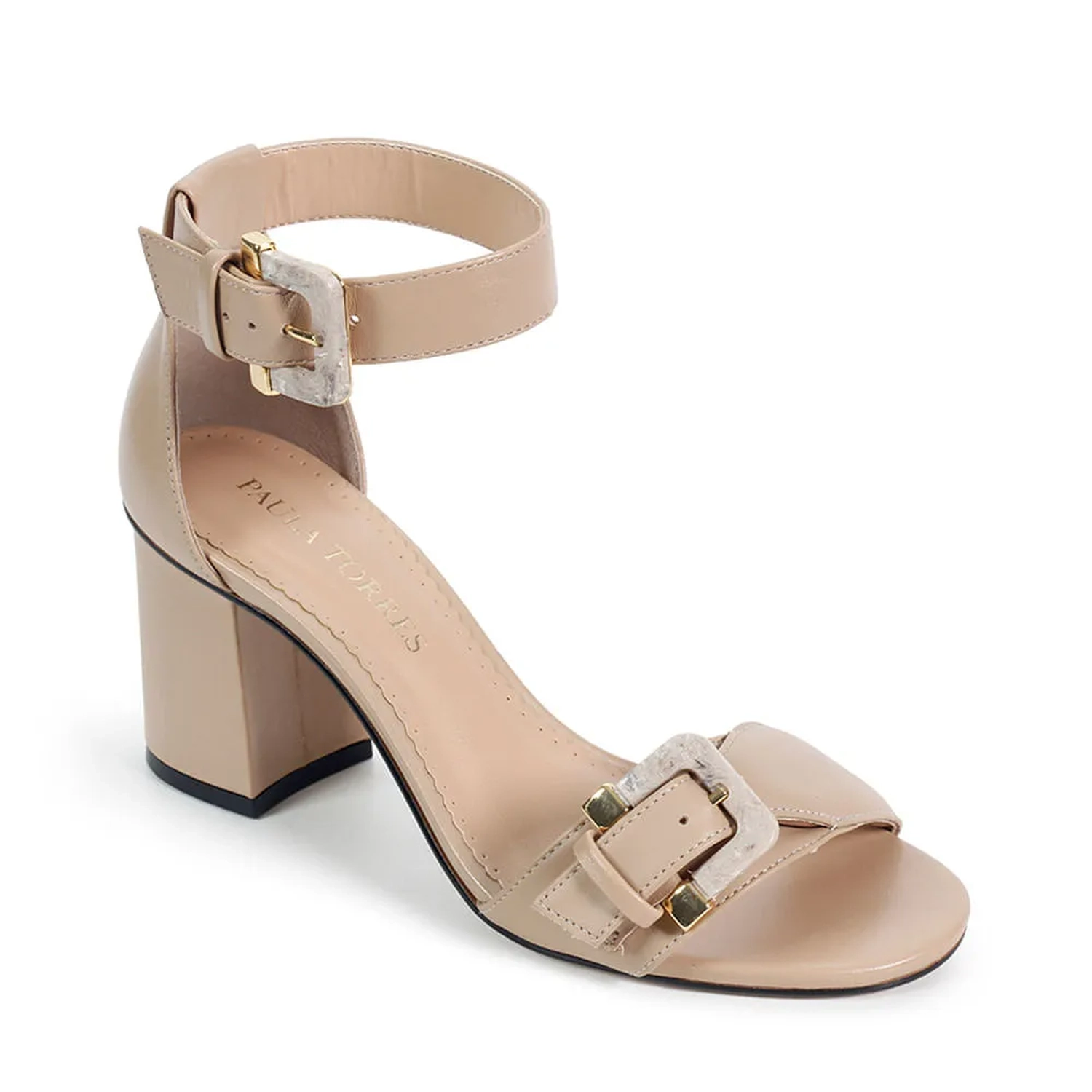 A Sandália Provença é confeccionada em couro. Modelo com bico arredondado e salto médio bloco. Seu cabedal é composto por uma tira acolchoada com fivela em resina