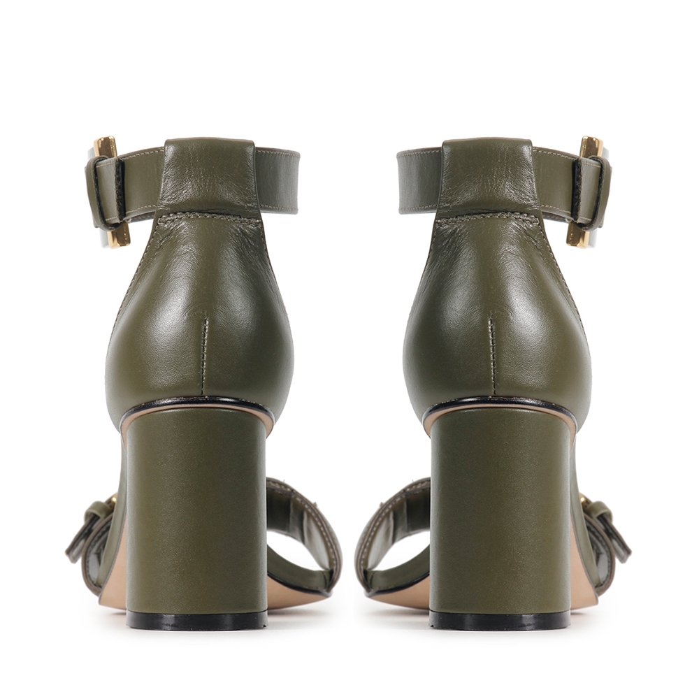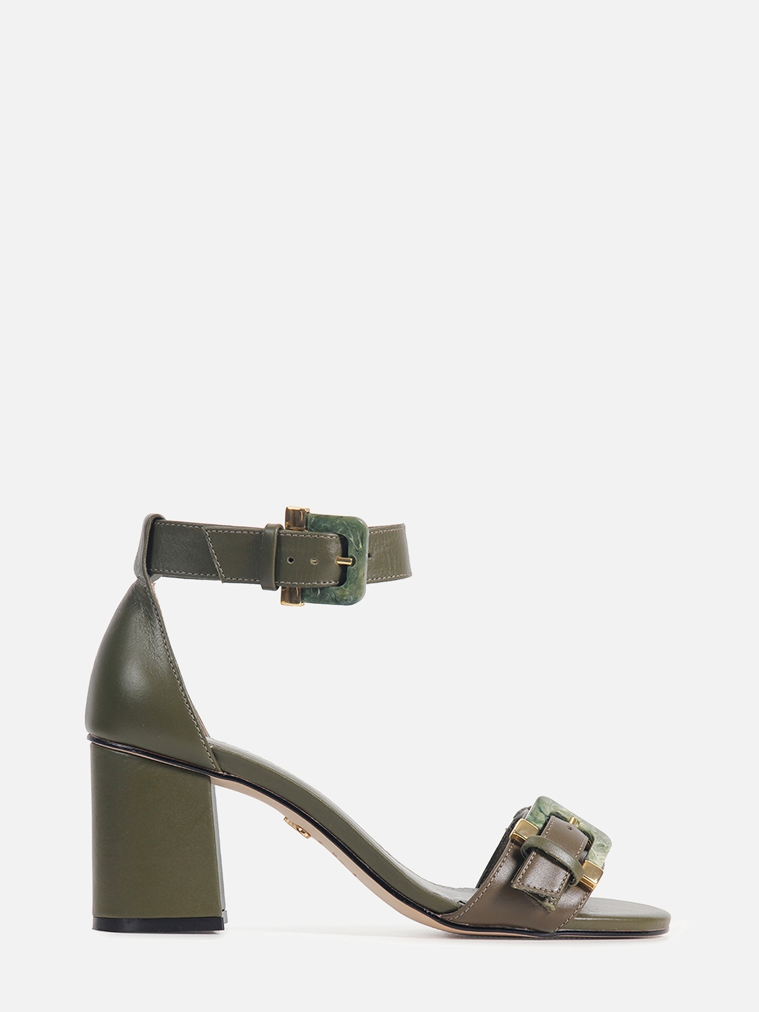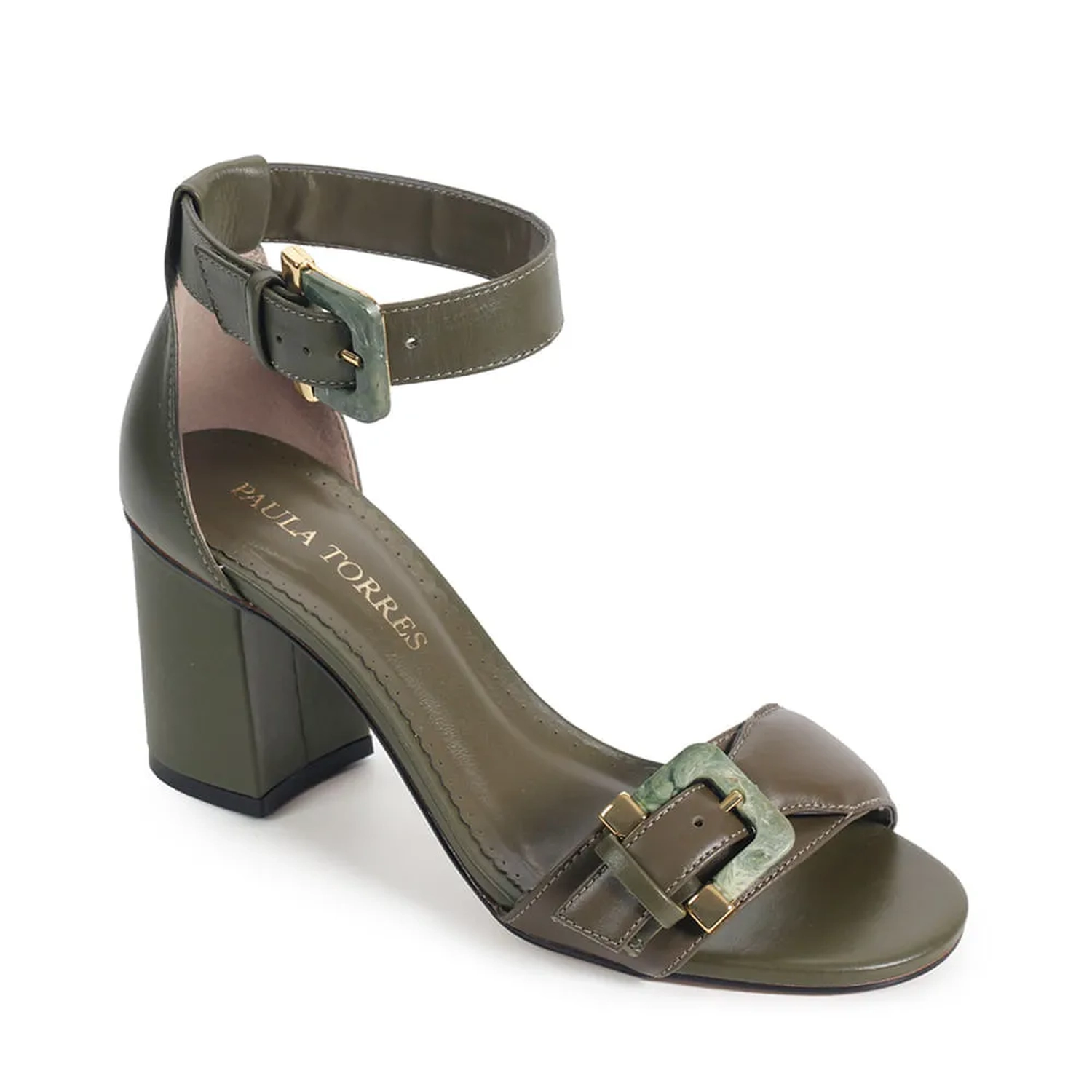 A Sandália Provença é confeccionada em couro. Modelo com bico arredondado e salto médio bloco. Seu cabedal é composto por uma tira acolchoada com fivela em resina