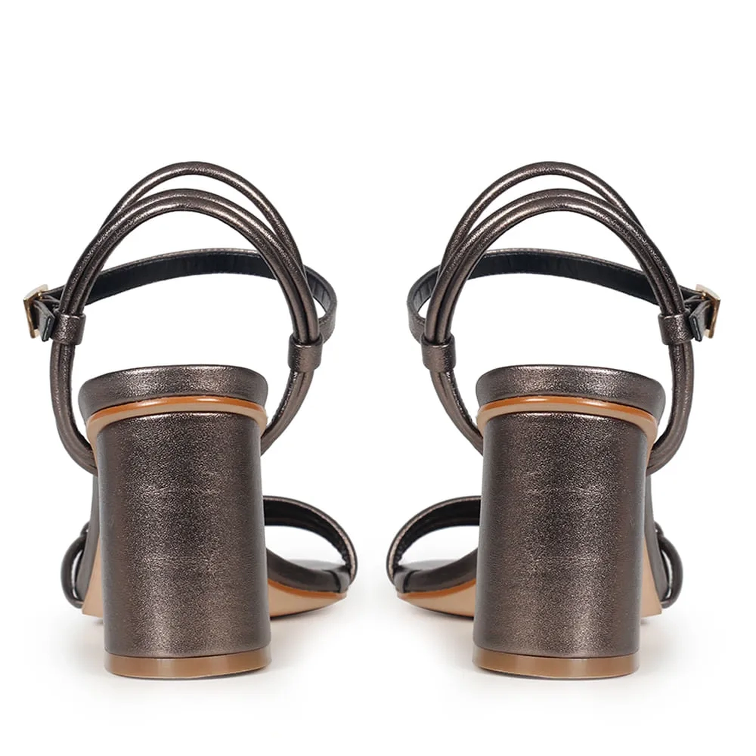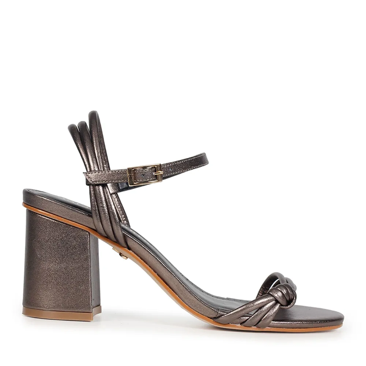 A Sandália Sara é confeccionada em couro. Modelagem em bico redondo e salto médio bloco. Construção clássica, composta por finas tiras de couro e fechamento por fivela. O destaque da peça são as tiras triplas e o nó lateral na parte frontal do cabedal, traduzindo o DNA handmande da marca, de maneira sofisticada e delicada. O fechamento por fivela confere elegância e praticidade ao calce.