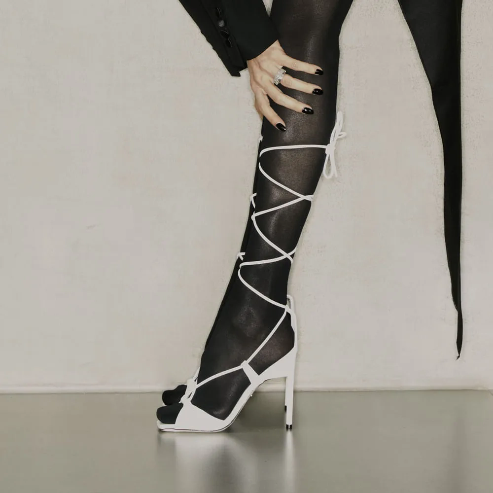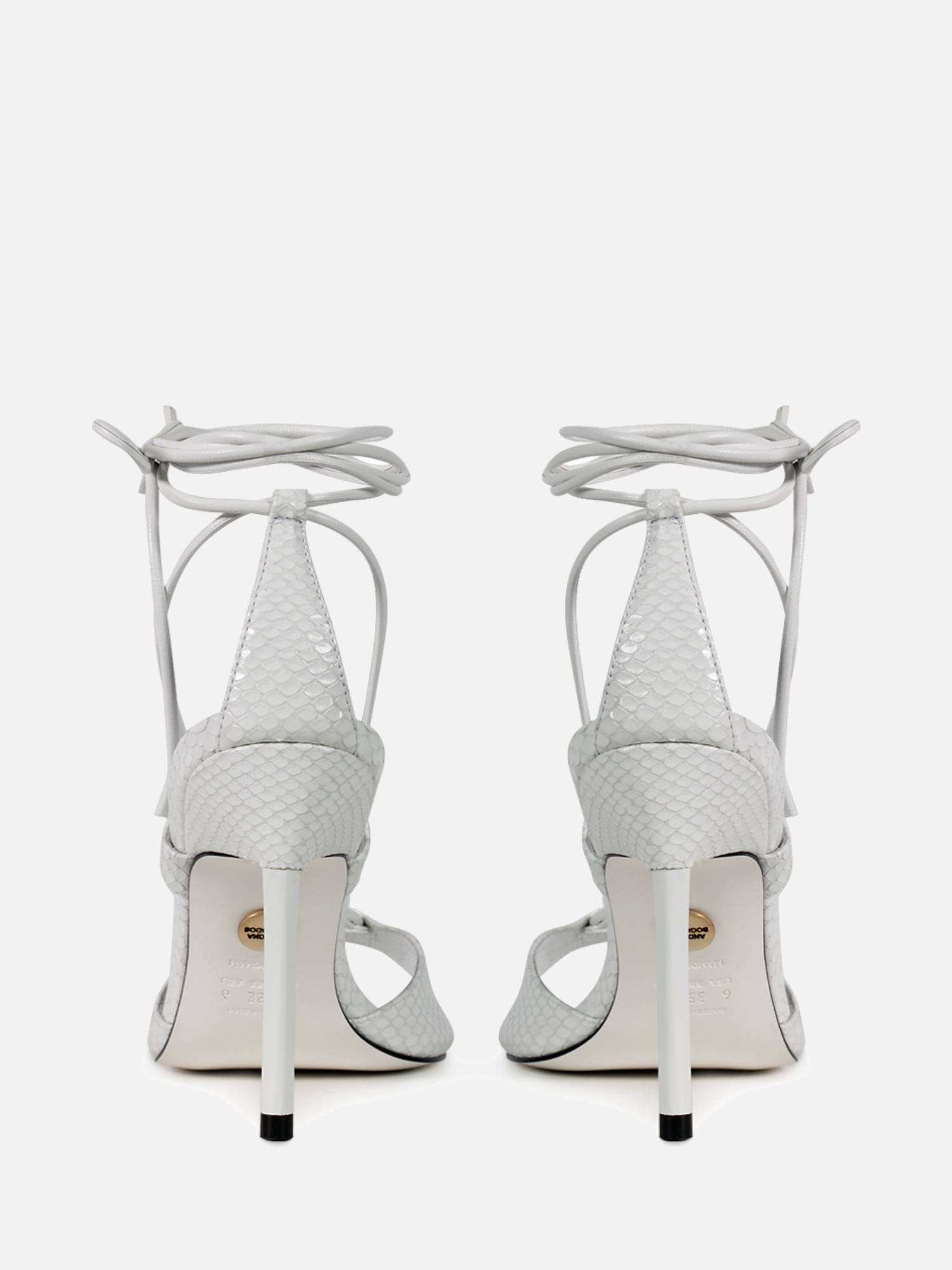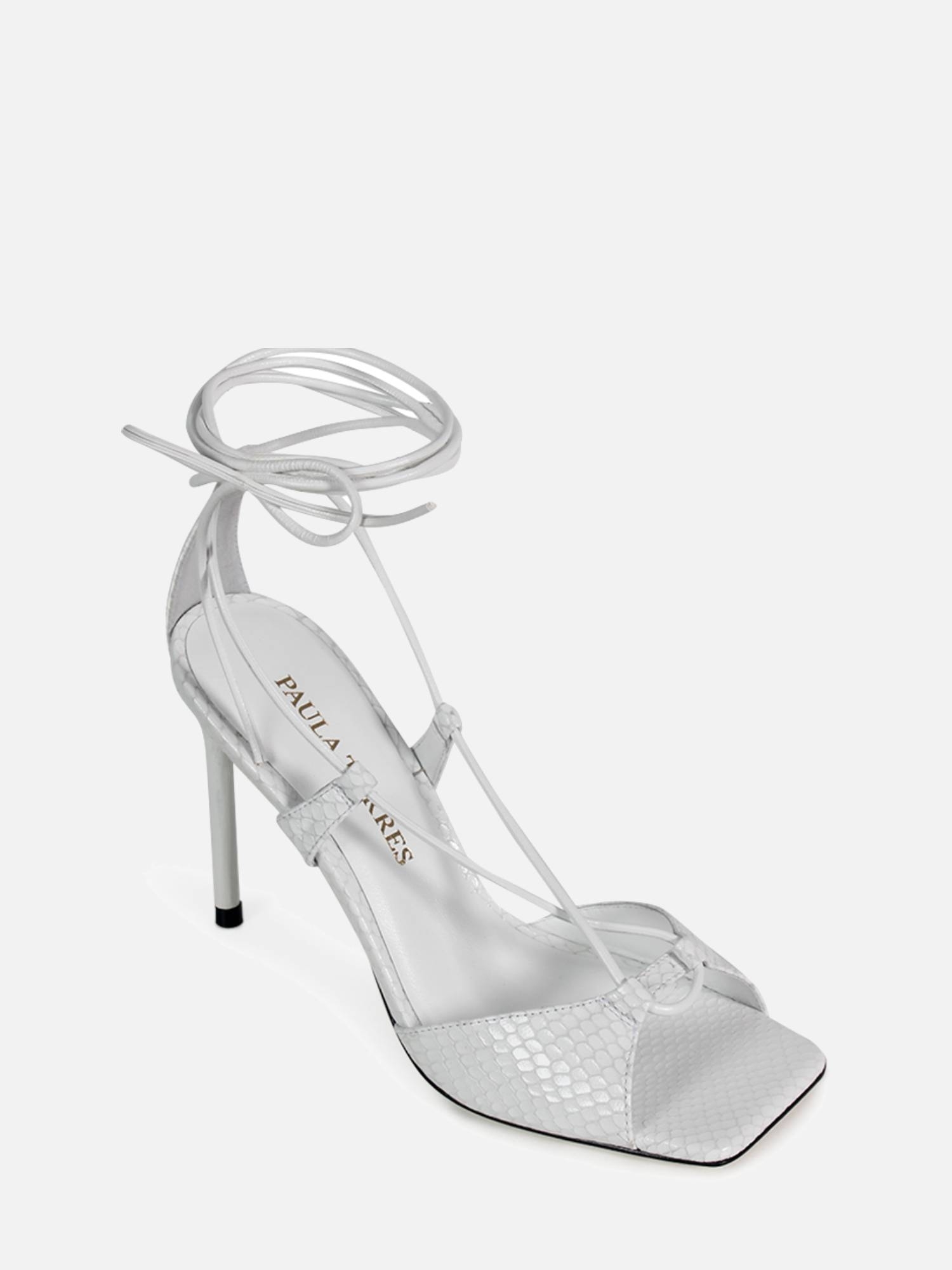A Sandália Shine é confeccionada em couro com textura. De modelagem moderna a peça conta com cabedal de tira única, bico quadrado e salto fino. O modelo destaca-se pelo fechamento em tira longa transpassada por todo o cabedal conferindo sofisticação e elegância.
