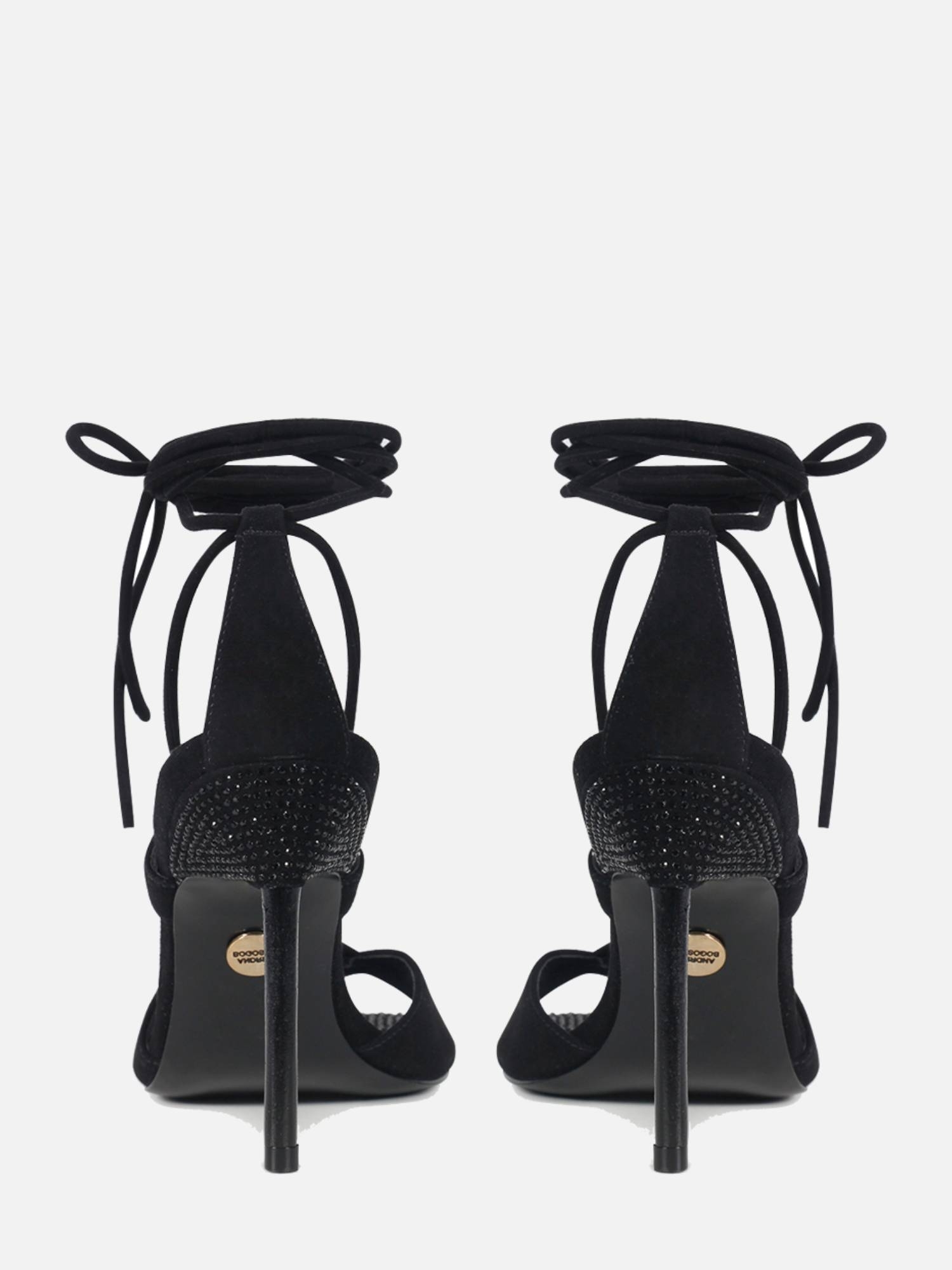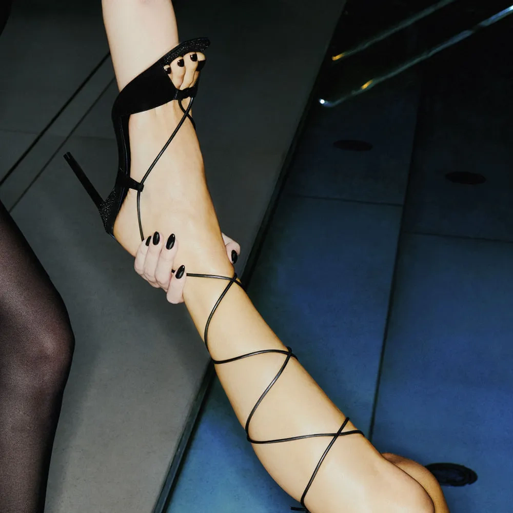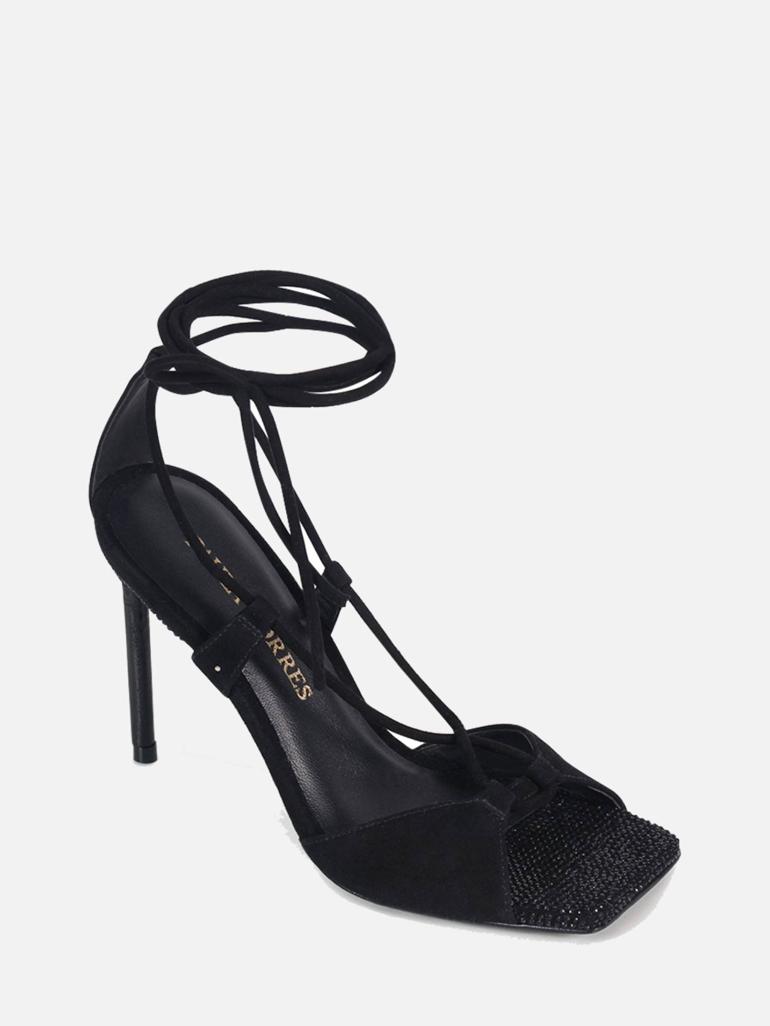 A Sandália Shine é confeccionada em couro com textura. De modelagem moderna a peça conta com cabedal de tira única, bico quadrado e salto fino. O modelo destaca-se pelo fechamento em tira longa transpassada por todo o cabedal conferindo sofisticação e elegância.