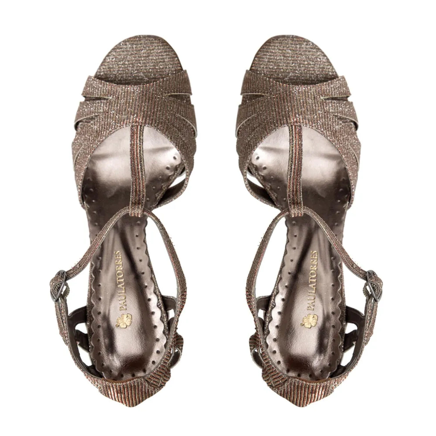 Sandália de salto alto, muito confortável, perfeita para uma festa, casamento, formatura ou evento especial. O brilho da sandália dá destaque aos pés, e deixa o look ainda mais especial.