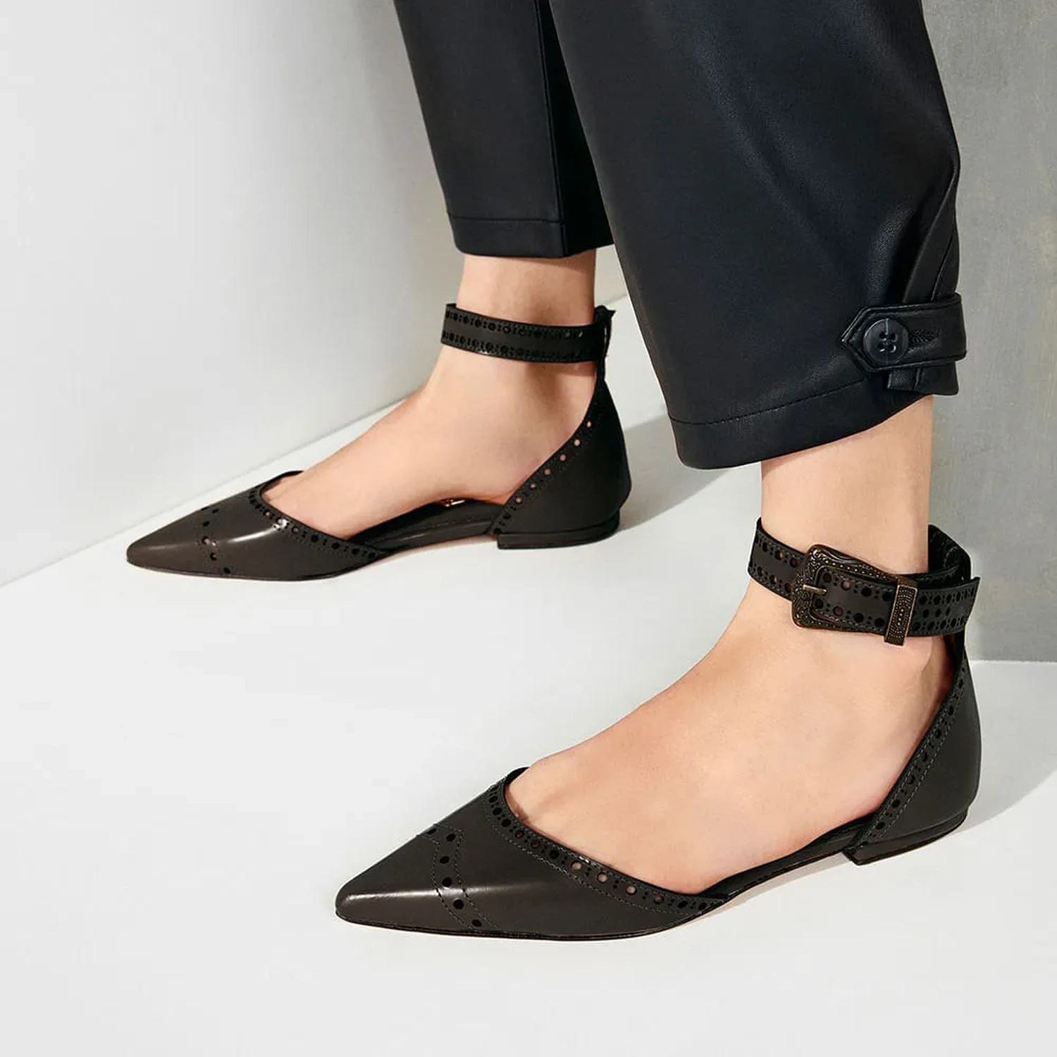 Produzida em couro, a Sapatilha Amalfi possui detalhes que remetem aos estilo Western. Modelagem em bico fino e couro trabalhado, somados à fivela estilizada, a peça cria uma estética elegante e confortável, caracterizando o DNA handmade da marca.