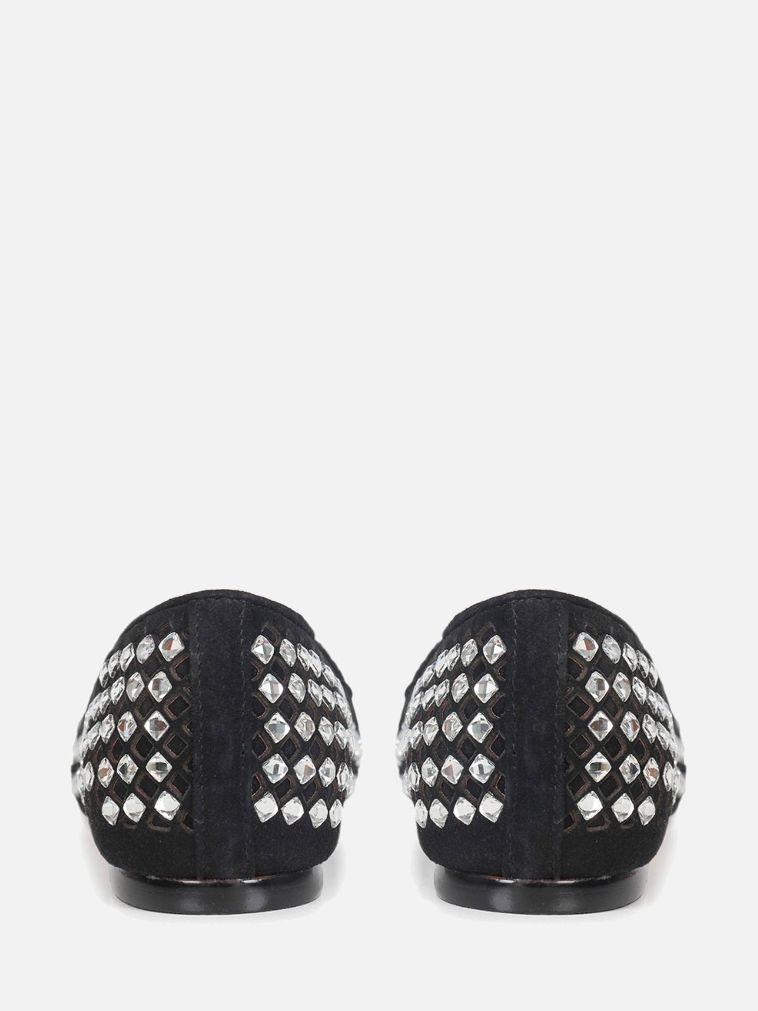 A Sapatilha Antonela é um calçado elegante e charmoso, confeccionado em camurça de alta qualidade. O bico quadrado proporciona um design moderno e sofisticado à sapatilha, agregando um toque diferenciado ao seu visual. O cabedal da Sapatilha Antonela é trabalhado com recortes quadrados a laser, criando um padrão de detalhes que confere um visual refinado e elegante à sapatilha. Além disso, conta com uma aplicação de cristais, que traz um brilho sutil e um toque de glamour à sapatilha, acrescentando um elemento de estilo único.