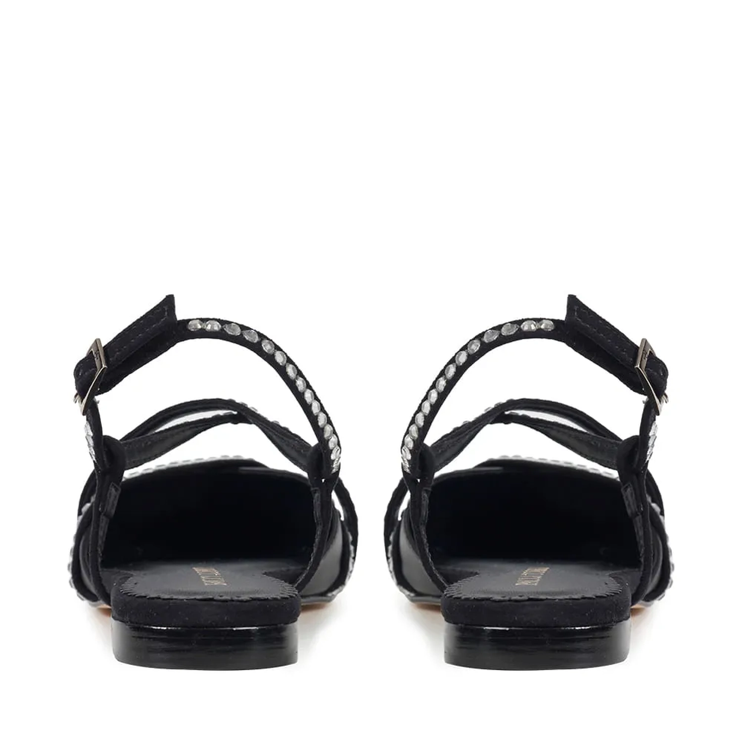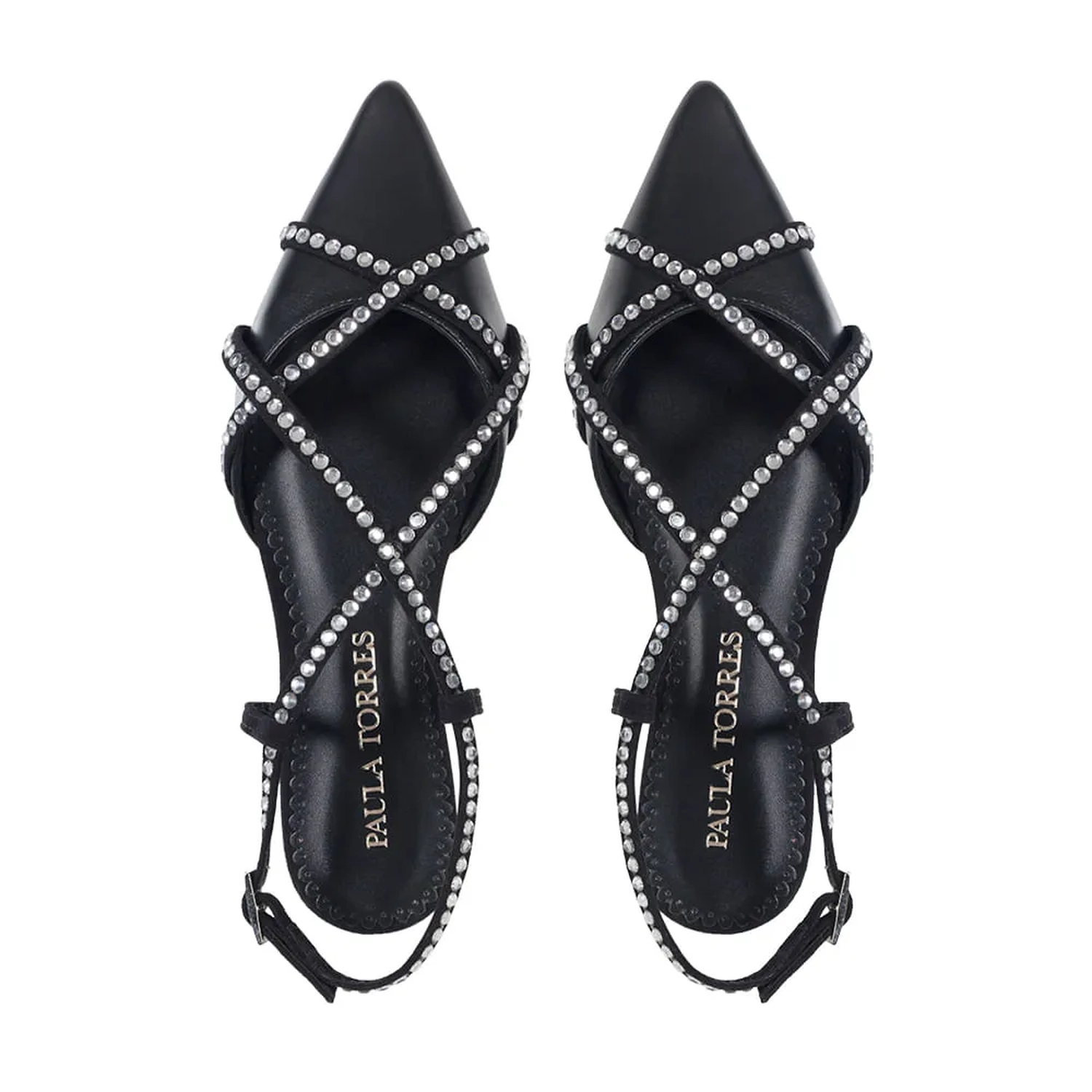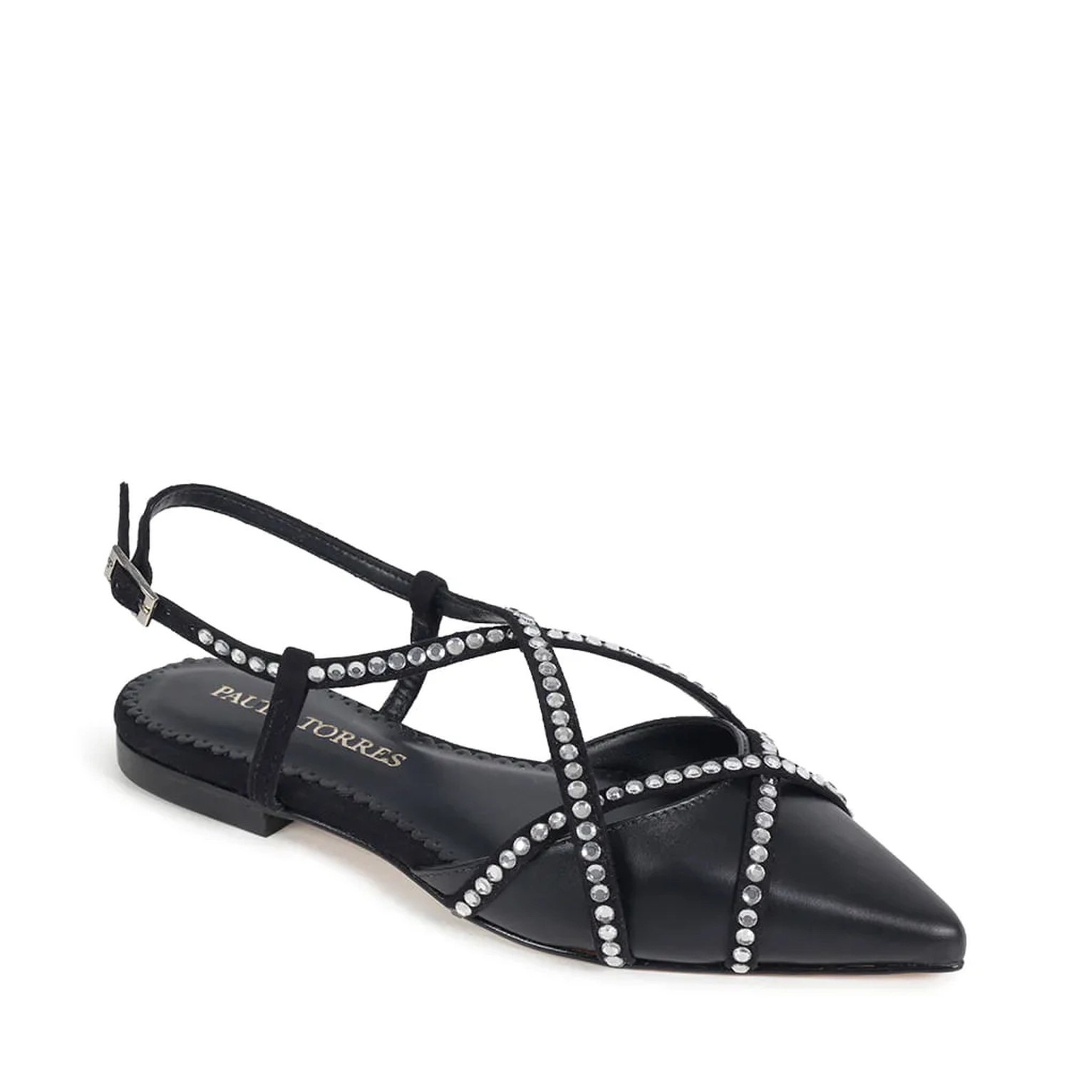 A Sapatilha Brooke é confeccionada em couro. Modelagem em bico fino e fechamento por fivela lateral. Cabedal composto por finas tiras de couro, que se transpassam, resultando em desenhos que destacam o calce. O diferencial do modelo são os cristais embutidos, conferindo glamour e sofisticação, completamente Paula Torres.