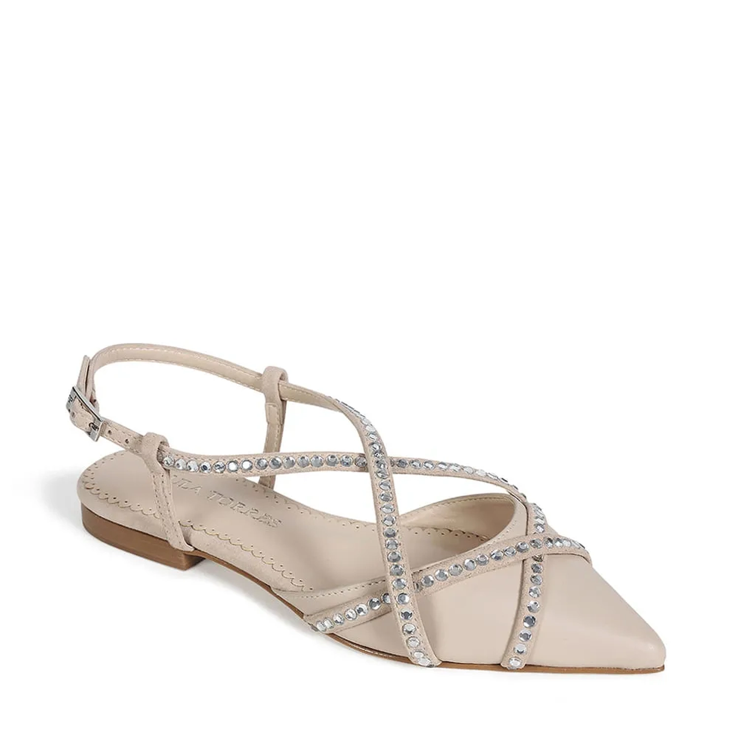 A Sapatilha Brooke é confeccionada em couro. Modelagem em bico fino e fechamento por fivela lateral. Cabedal composto por finas tiras de couro, que se transpassam, resultando em desenhos que destacam o modelo. O diferencial da peça são os cristais embutidos, conferindo glamour e sofisticação, completamente Paula Torres.