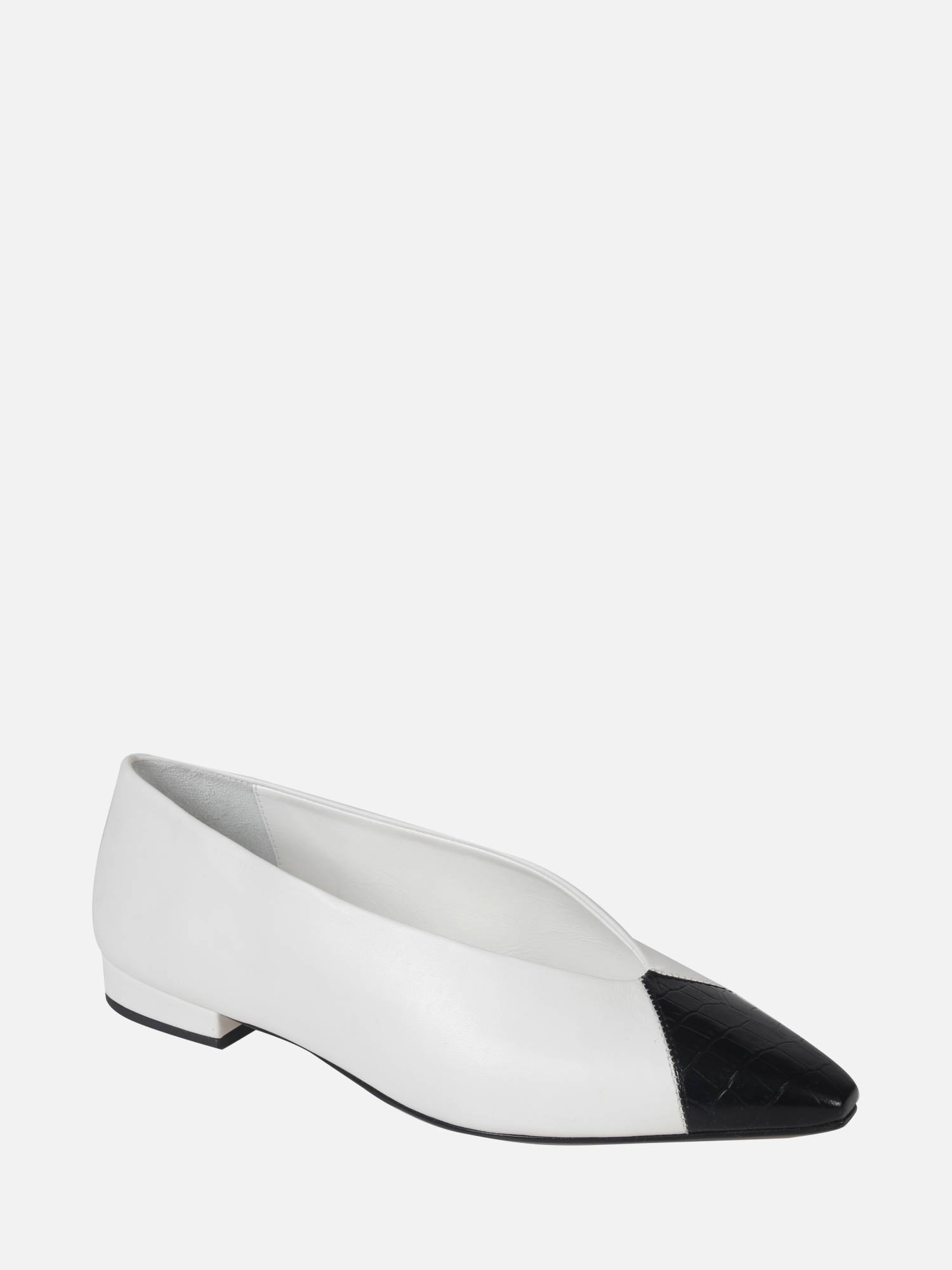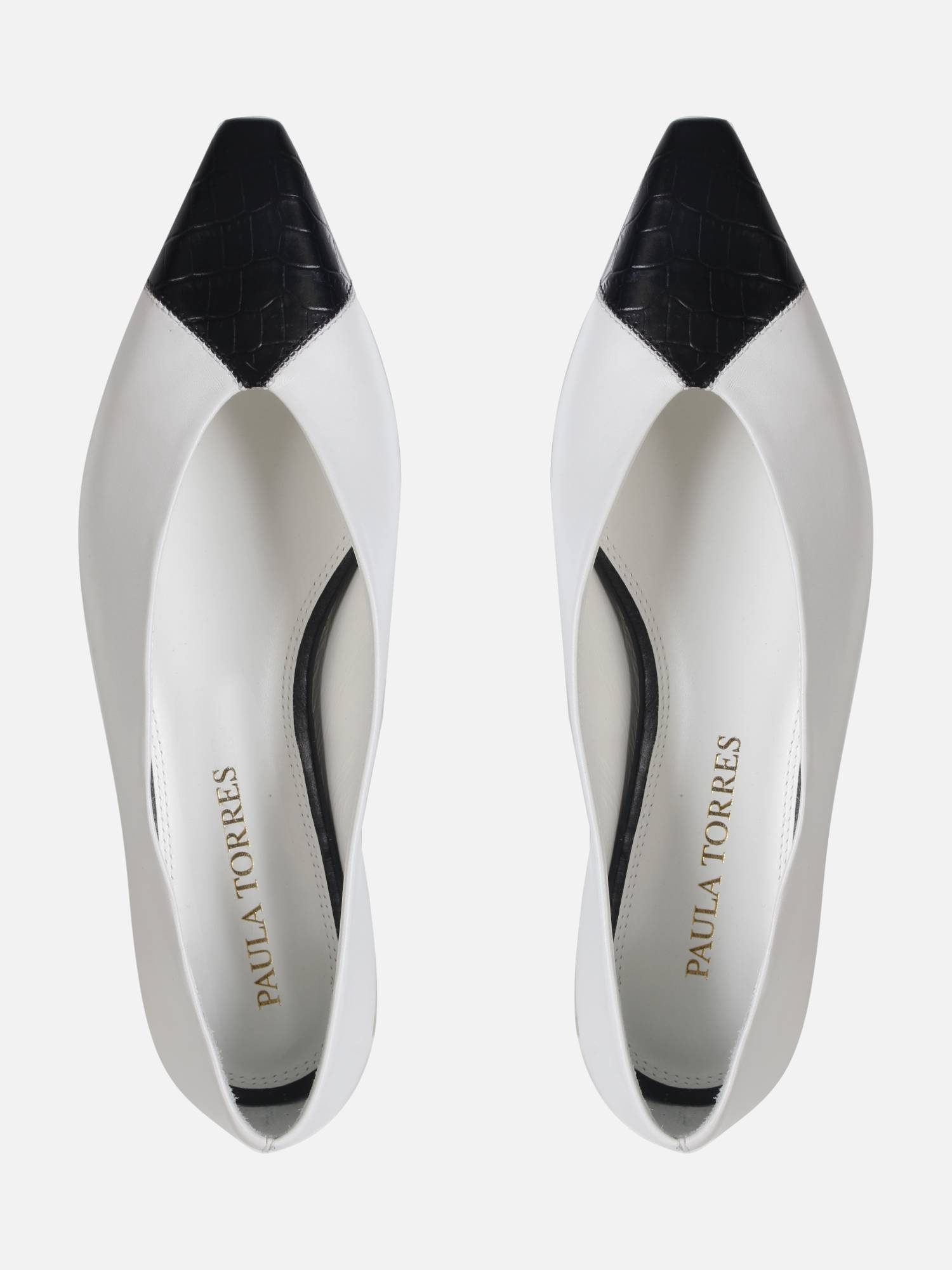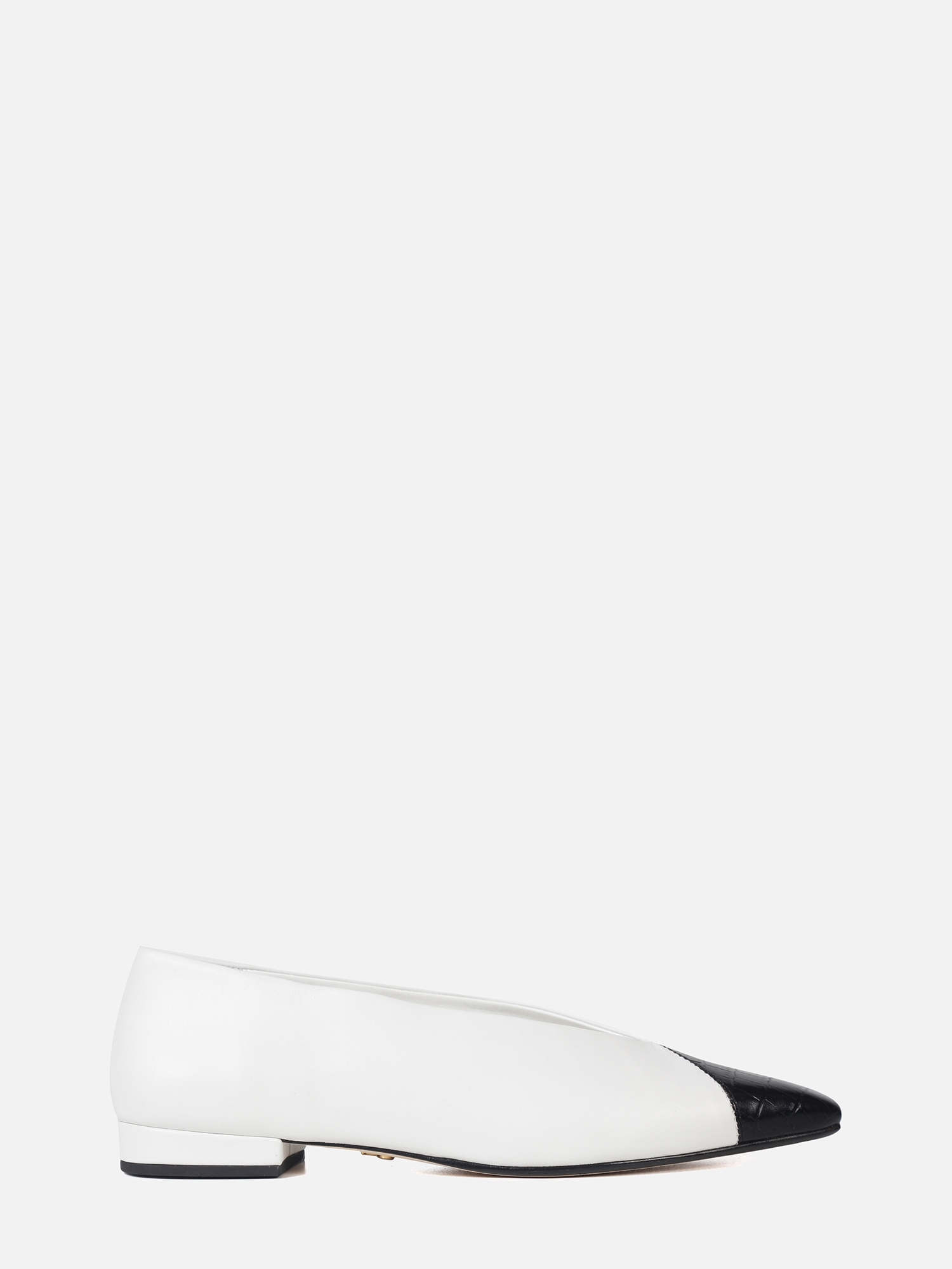 A Sapatilha Carmela é confeccionada em couro, caracterizada pelo bico fino com ponta quadrada. Apresenta um recorte em couro com estampa croco na biqueira. Possui salto bloco baixo e solado em couro para durabilidade.