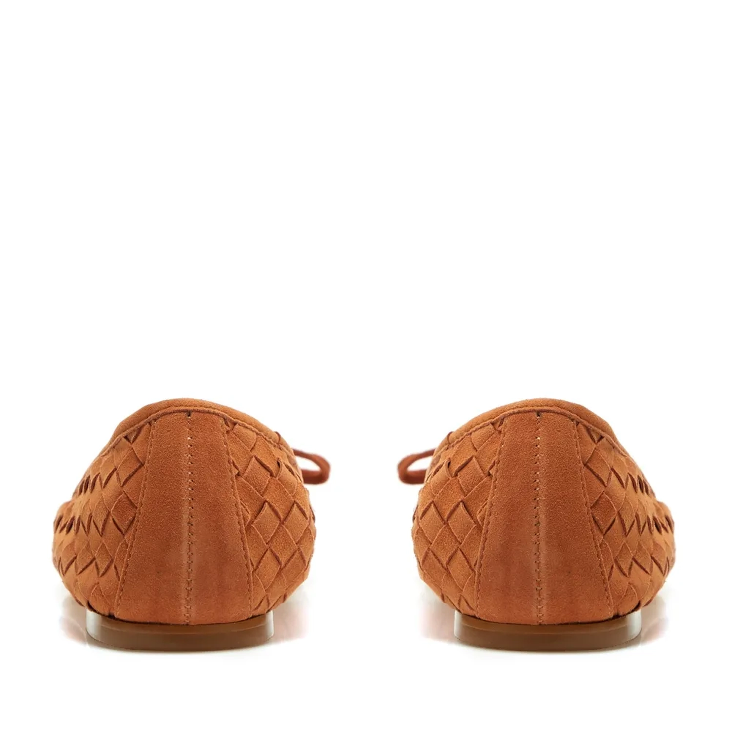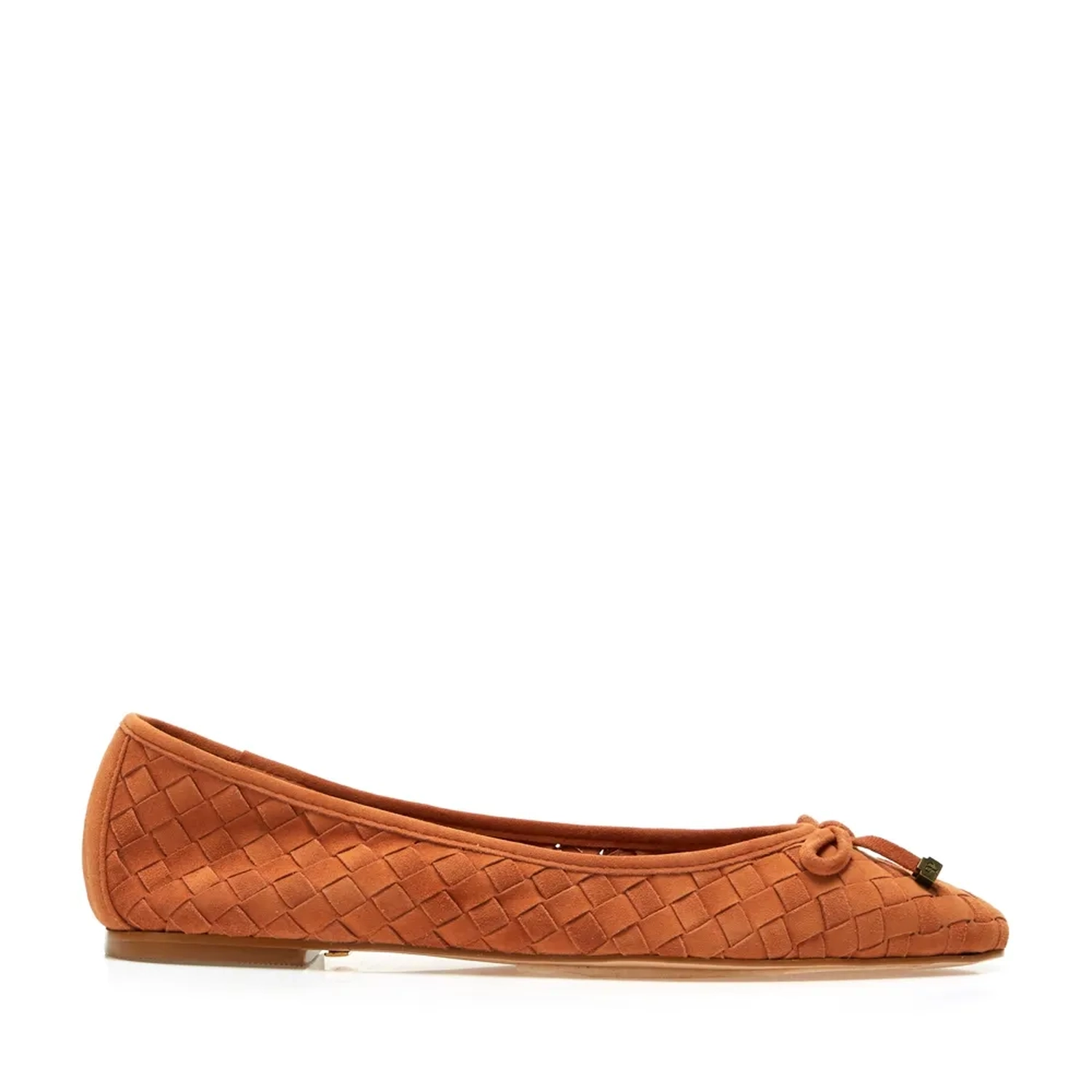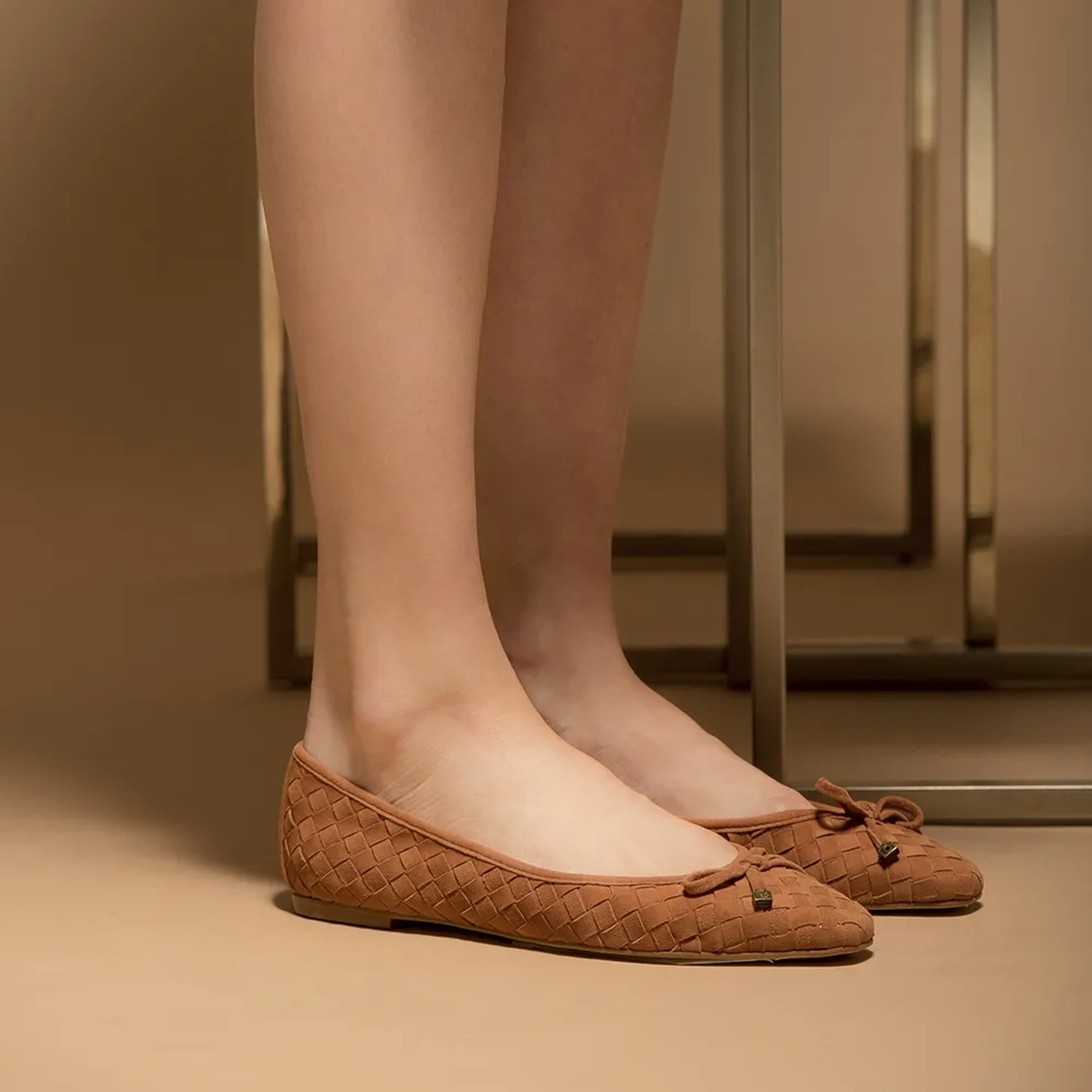 A Sapatilha Florença é produzida em camurça. Com o cabedal todo em tresse e não possui forro, o que proporciona maior conforto ao modelo. Na parte superior, um laço em camurça, finalizado com ponteiras em metal personalizado com o nosso monograma.