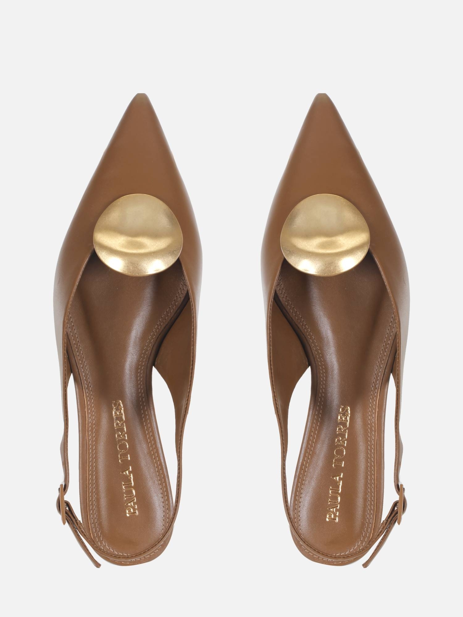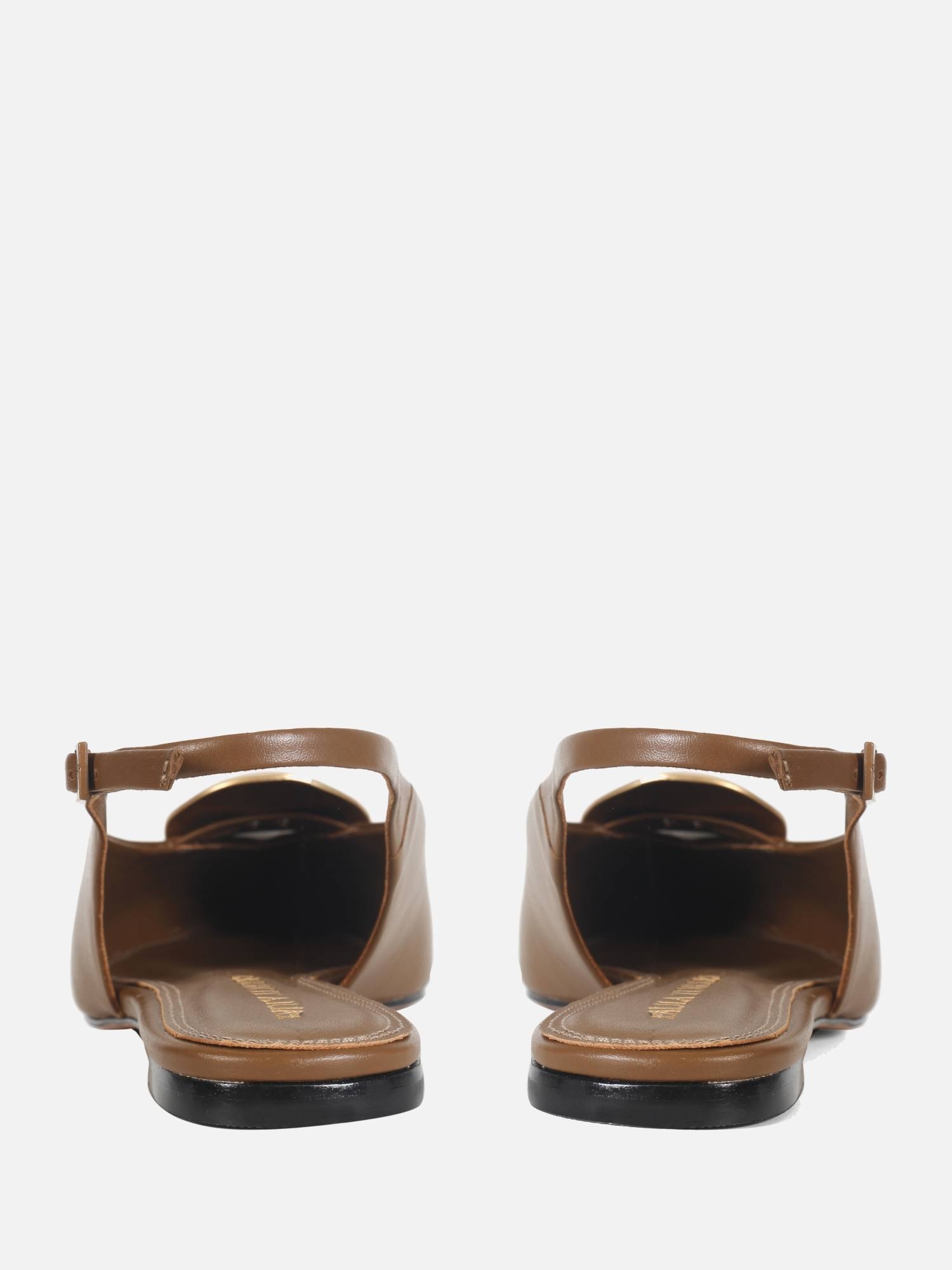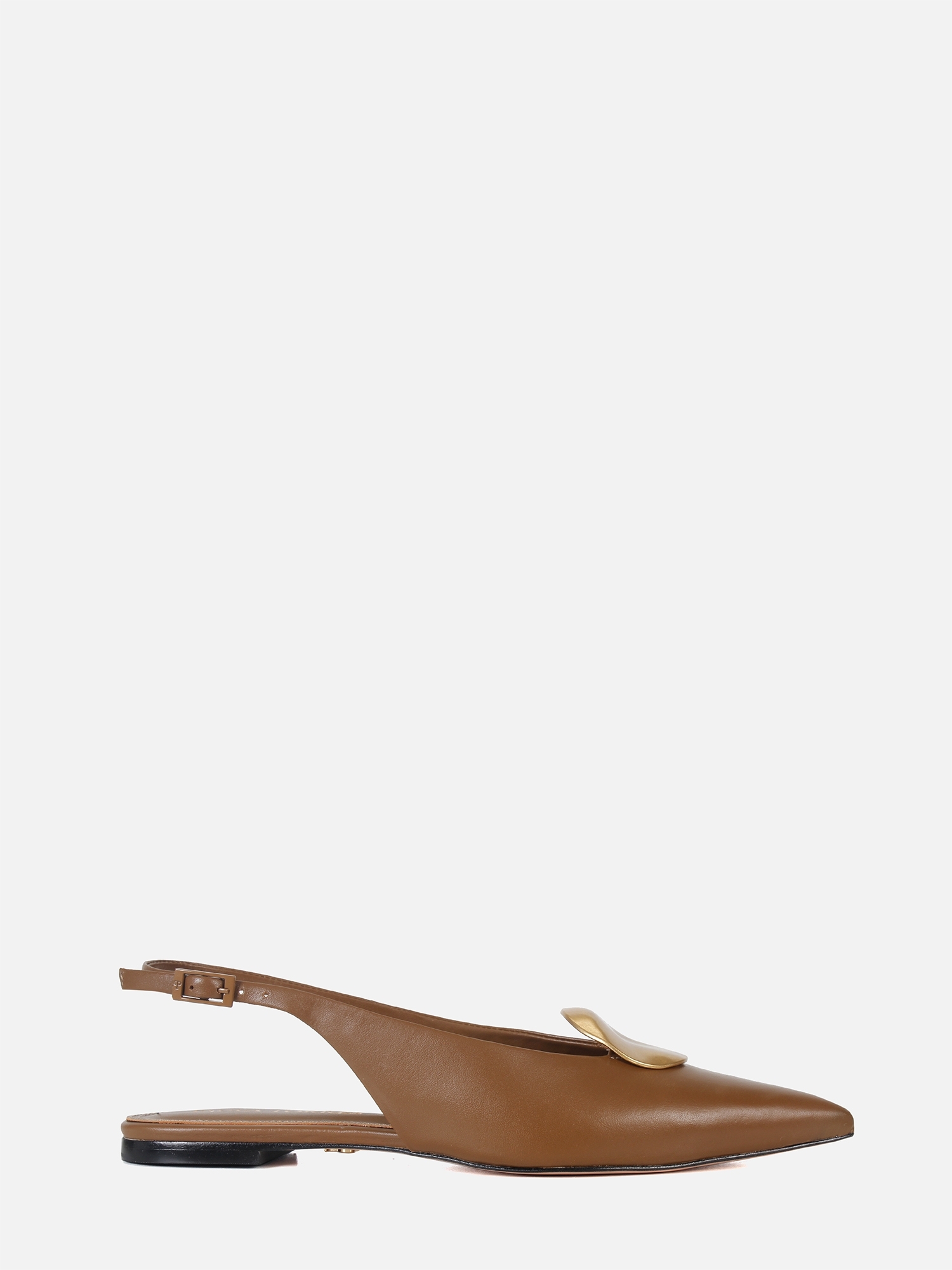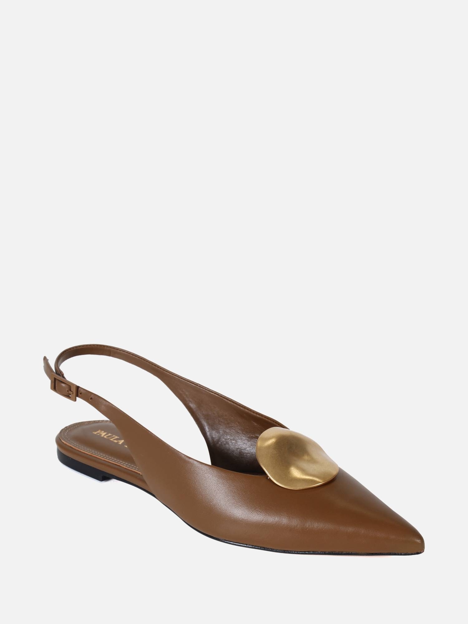 A Sapatilha Helo é produzida em couro metalizado. O modelo de bico fino alongado é realçado por uma delicada peça com banho dourado fosco. O fechamento é feito por fivela lateral, enquanto o solado em couro garante durabilidade à peça.
