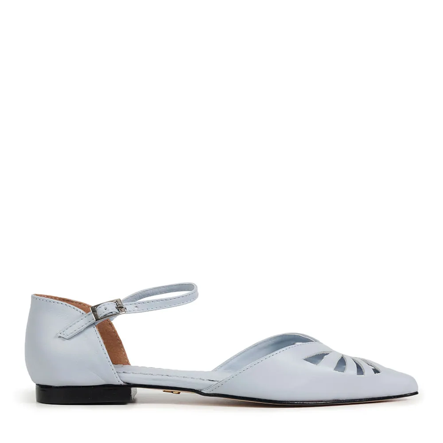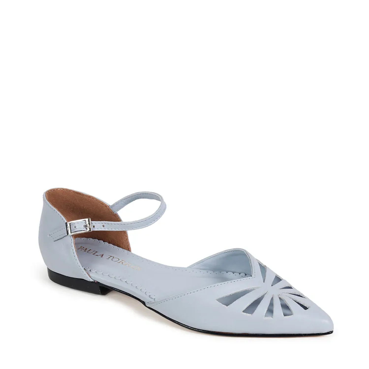 A Sapatilha Kate é confeccionada em couro. Modelagem clássica, em bico fino e fechamento por fivela. O destaque são os recortes na parte frontal do cabedal, conferindo uma estética contemporânea e fresca. A tornozeleira com fivela e o contraforte fechado tornam o modelo delicado. A monocromia e o decote em ¿v¿ transmite sofisticação e elegância.