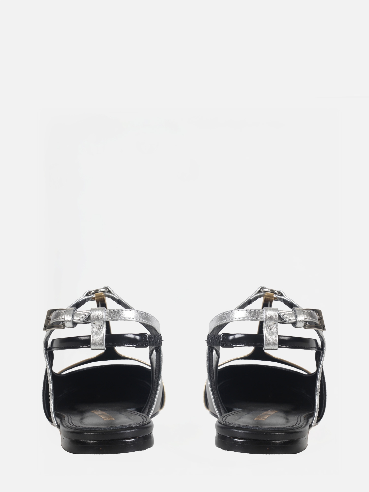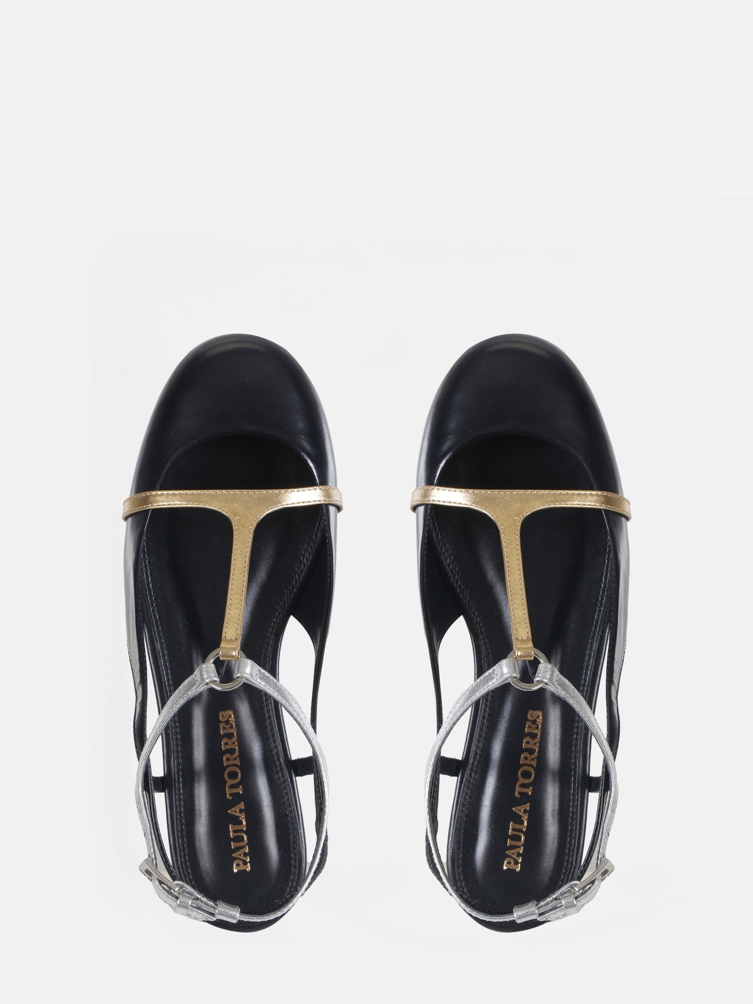 A Sapatilha Lola Preta traz a combinação perfeita entre sofisticação e ousadia. Confeccionada em couro box, o modelo destaca-se pelo cabedal preto com tiras em T nas cores dourado e prata, conectadas por uma elegante argola metálica no peito do pé. O design slingback reforça o visual leve e contemporâneo, enquanto a fivela lateral ajustável garante um calce seguro e confortável.