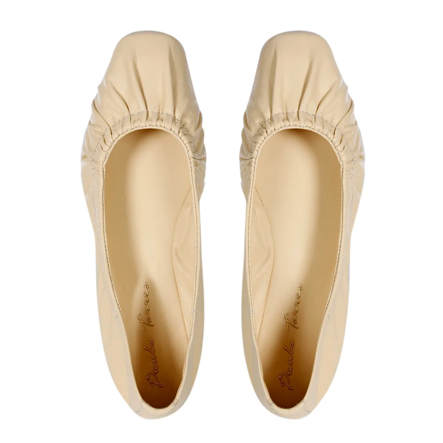 A Sapatilha Mel é confeccionada em couro. Modelagem em bico quadrado e decote U. Alternativa minimalista que realça a elegância, o modelo Paula Torres traz como diferencial o couro franzido e a borda elástica.