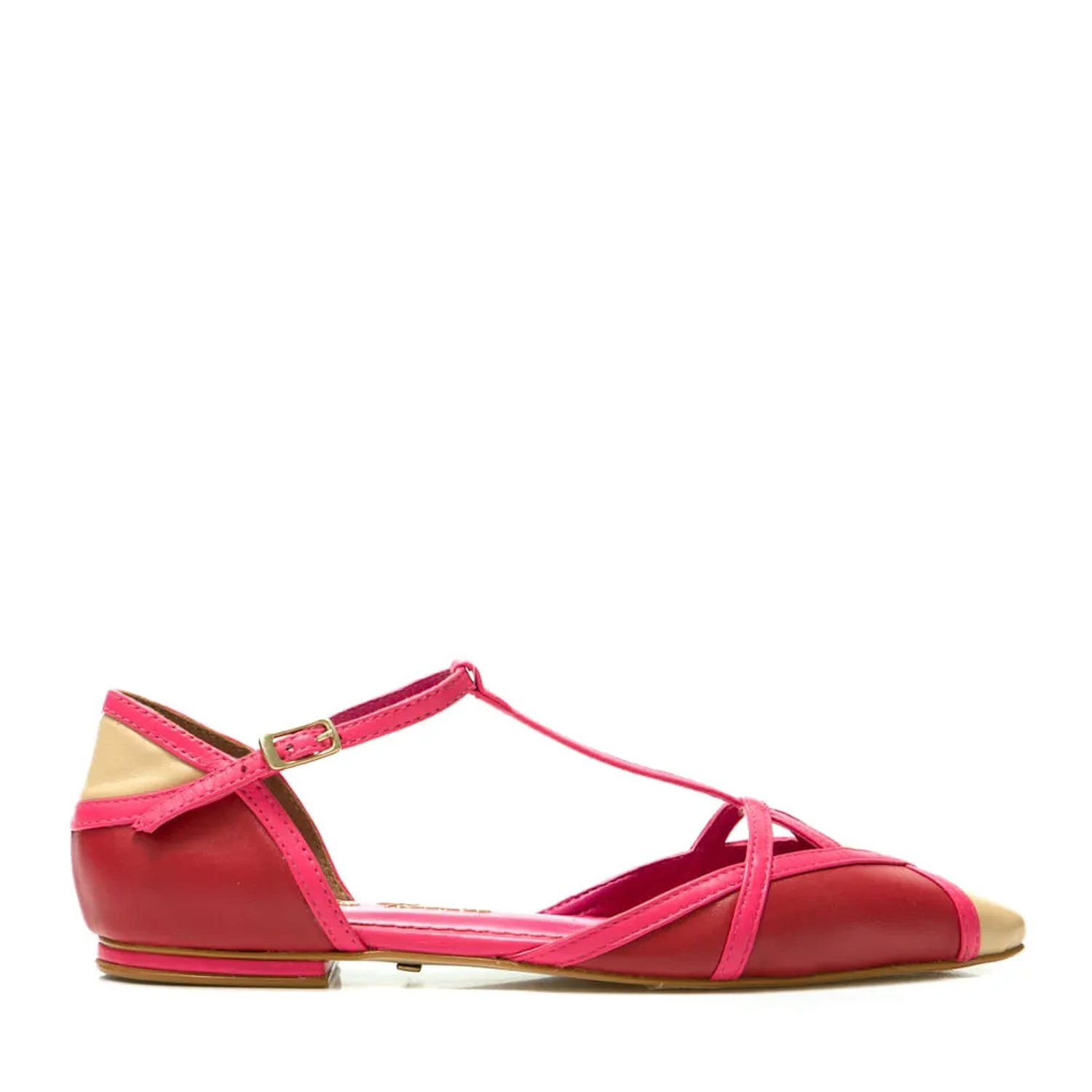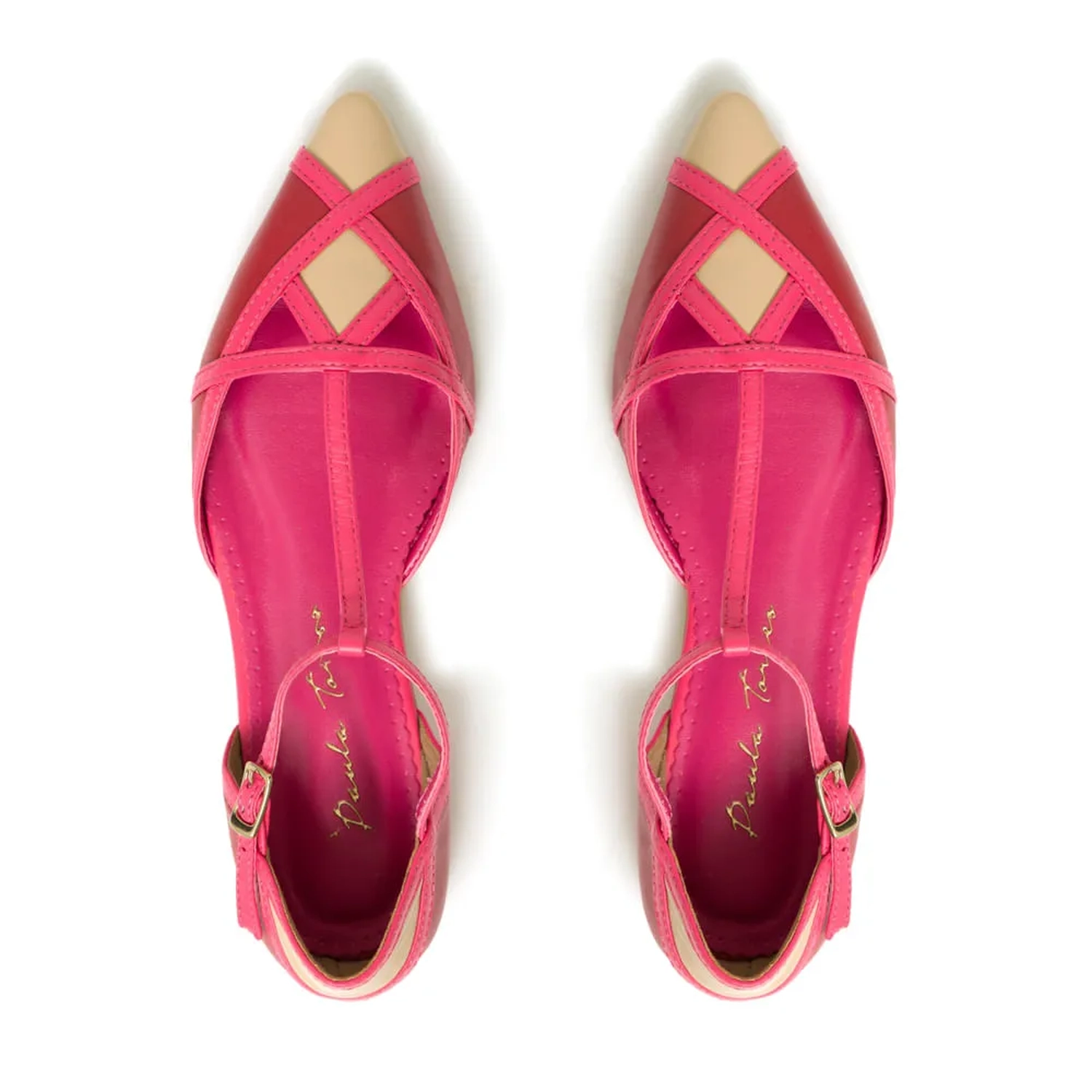 A Sapatilha Nápolis é produzida em couro. O modelo possui recortes frontais, salto flat e fechamento por fivela lateral ajustável. O destaque está na combinação de cores que deixam o modelo divertido e moderno.