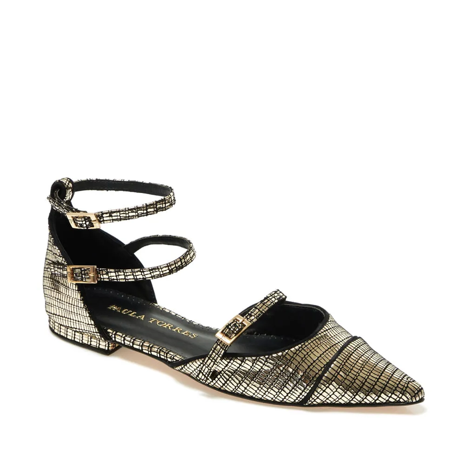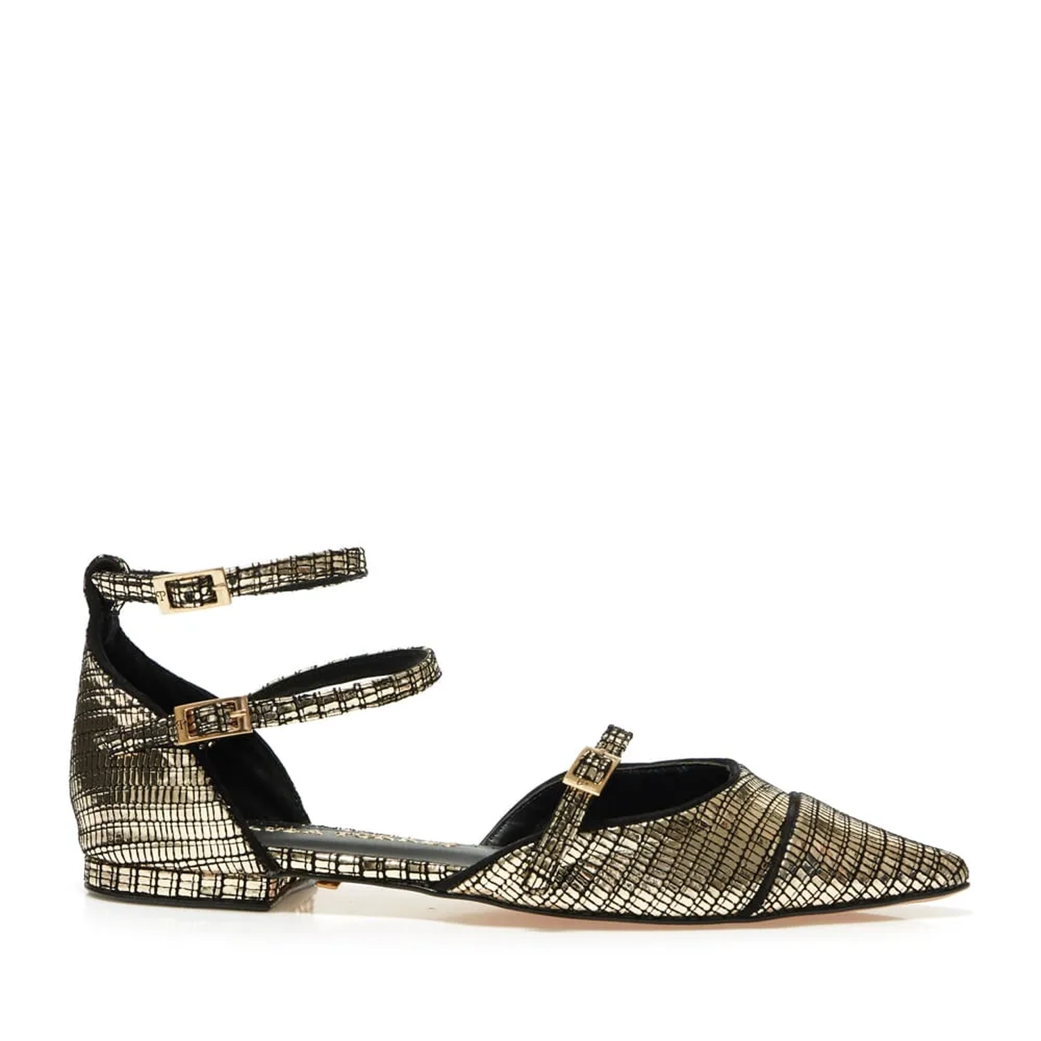 A sapatilha Parma é confeccionada em couro metalizado. Um modelo carregado de detalhes especiais com destaque para o bico fino com detalhe em recorte e debrum contrastante, calcanheira com tira dupla conferindo melhor sustenção ao calce, seu fechamento por tira dupla tras modernidade ao modelo clássico que é arrematado por mini salto forrado.