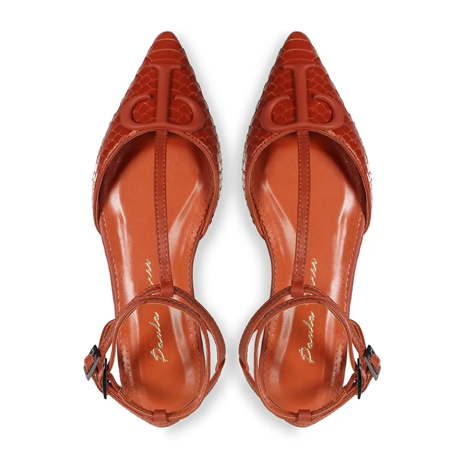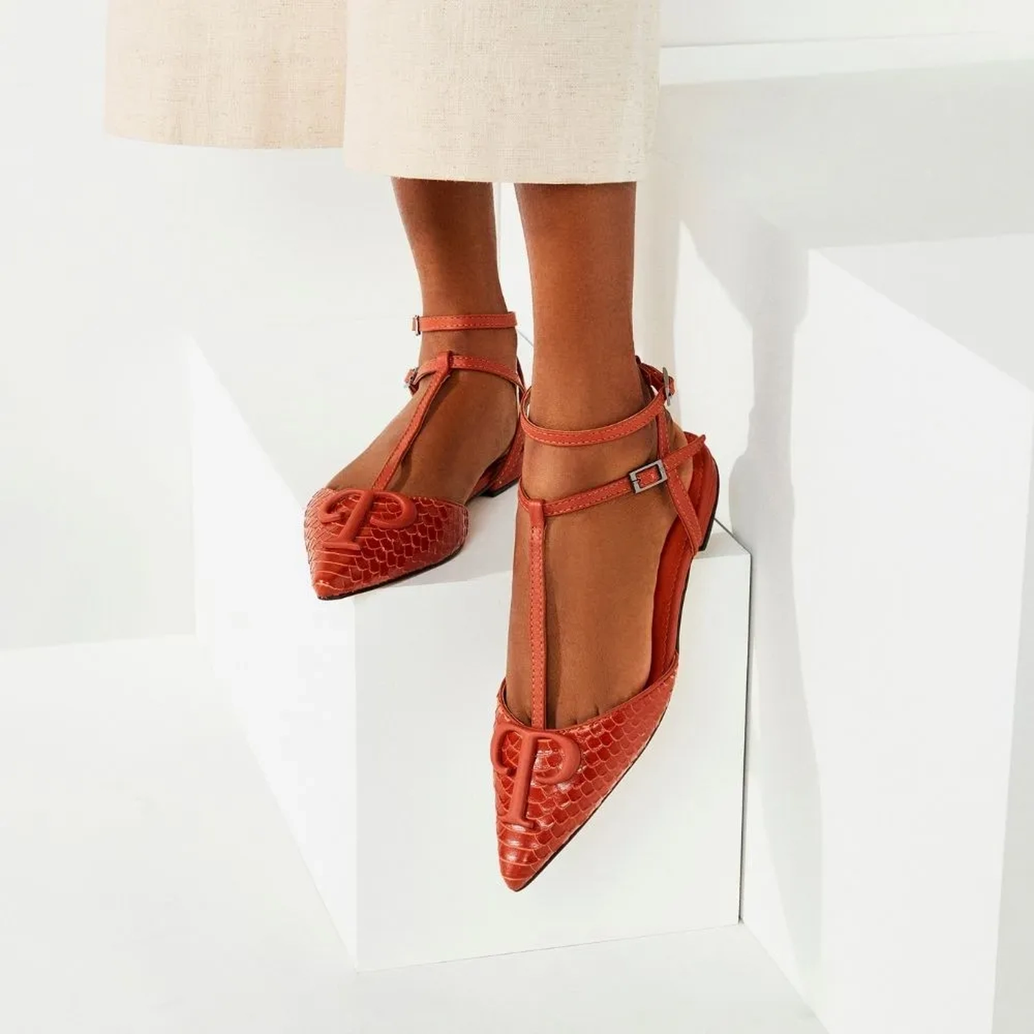 A Sapatilha Paula é confeccionada em couro. A peça possui bico fino e tiras finas no tornozelo com ajuste lateral feito por fivela e detalhe superior do monograma Paula Torres. O diferencial Winter 22 " é a textura do couro.