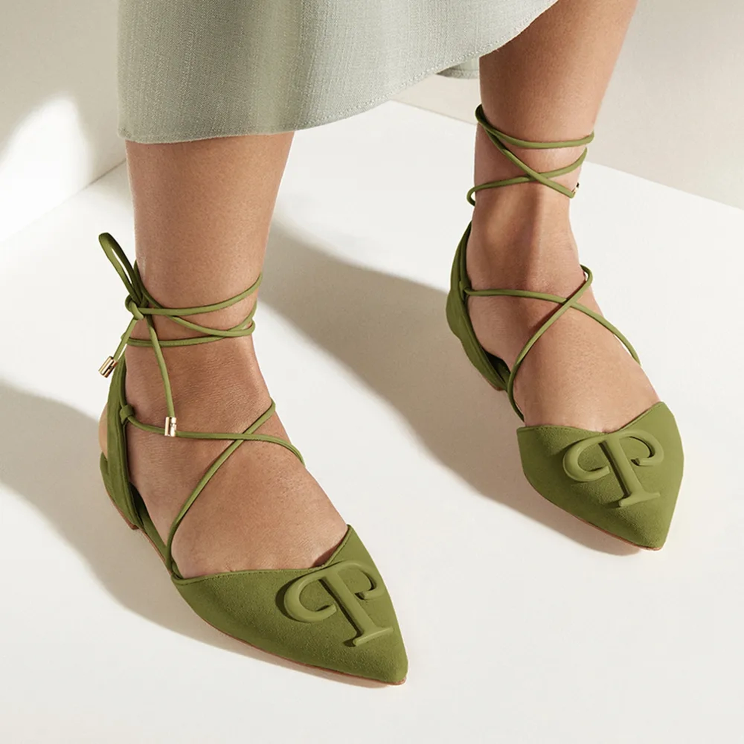 A Sapatilha Paula tornou-se um clássico nas coleções Paula Torres, e para coleção verão 22 o modelo ganha detalhes marcantes em sua construção. Em destaque a confecção em camurça, fechamento por amarração com acabamento feito por ponteiras com o monograma da marca, e o detalhe central que fica no cabedal, o monograma da marca em metal fosco no mesmo tom da camurça. Uma peça atemporal, sofisticada e com total atenção ao conforto, características marcantes no DNA da marca.