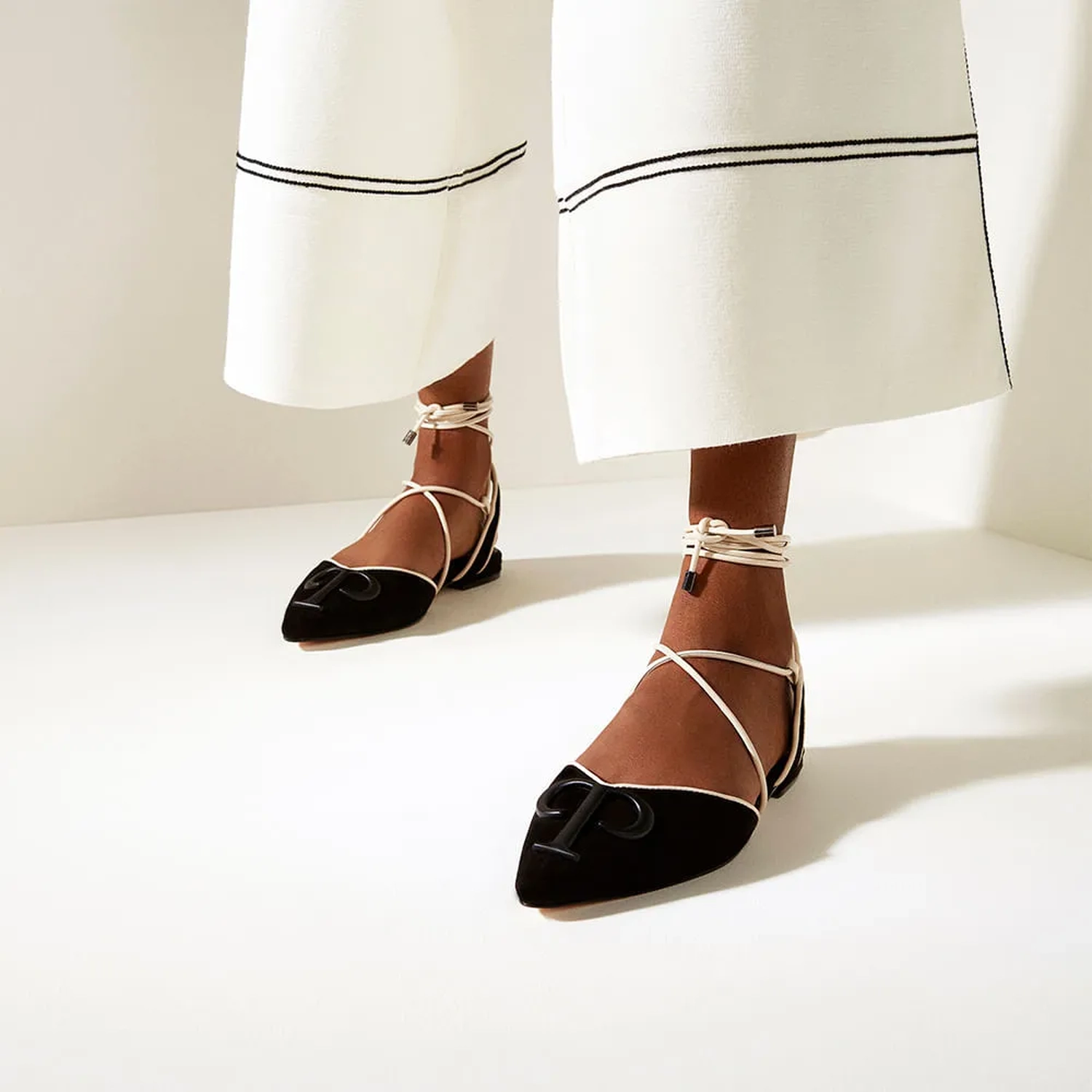A Sapatilha Paula tornou-se um clássico nas coleções Paula Torres, e para coleção verão 22 o modelo ganha detalhes marcantes em sua construção. Em destaque a confecção em camurça, fechamento por amarração com acabamento feito por ponteiras com o monograma da marca, e o detalhe central que fica no cabedal, o monograma da marca em metal fosco no mesmo tom da camurça. Uma peça atemporal, sofisticada e com total atenção ao conforto, características marcantes no DNA da marca.