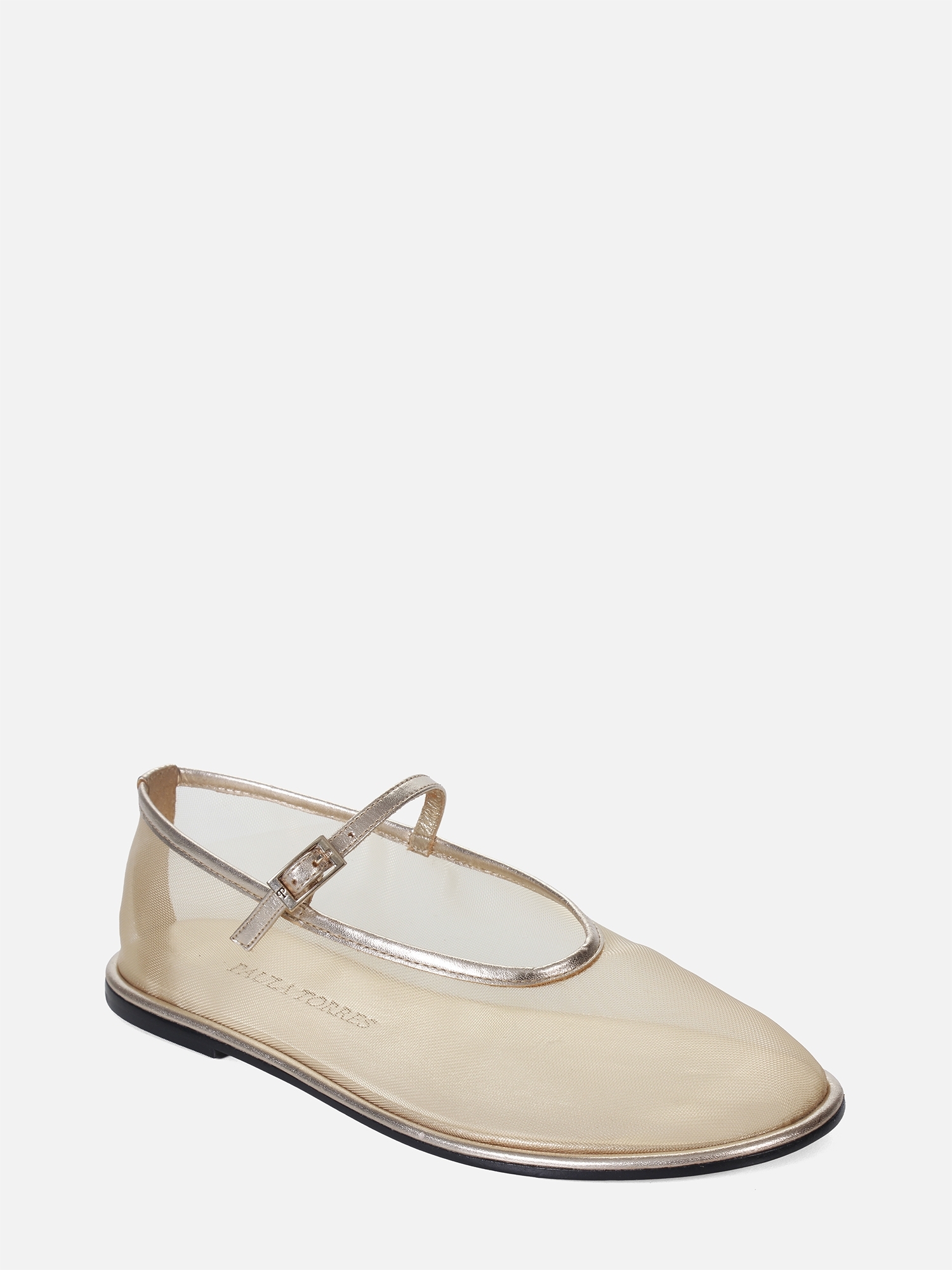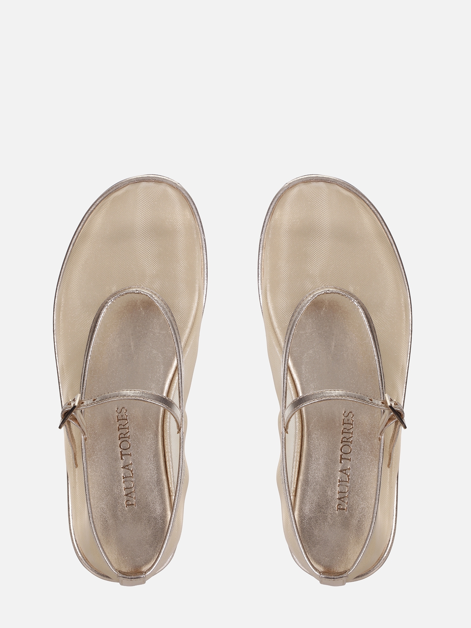 A Sapatilha Feminina Pipa da Paula Torres combina leveza, elegância e modernidade. Confeccionada em tela translúcida dourada com acabamento em couro metalizado, apresenta uma delicada tira com fivela no peito do pé, que proporciona ajuste seguro e confortável.