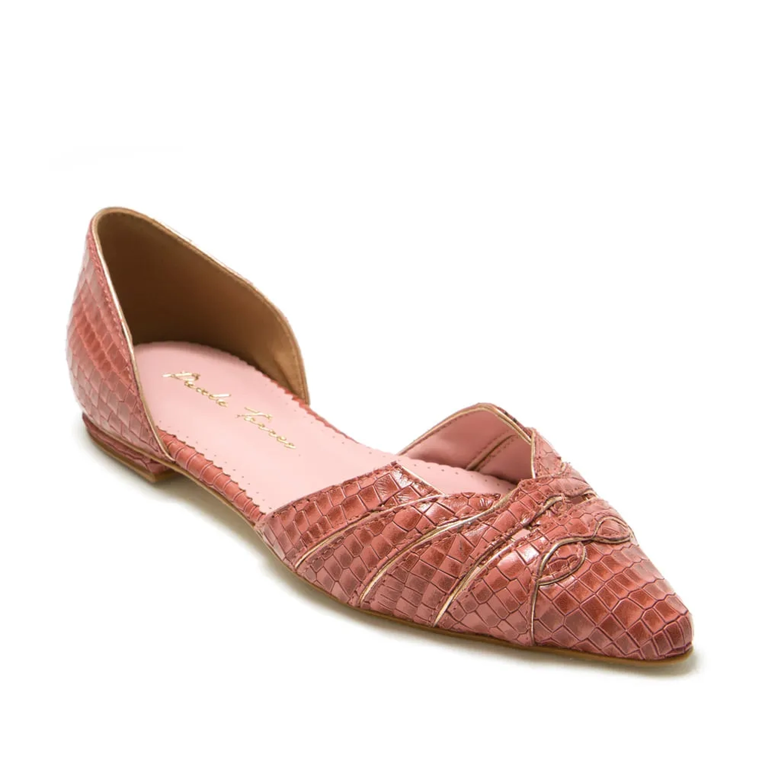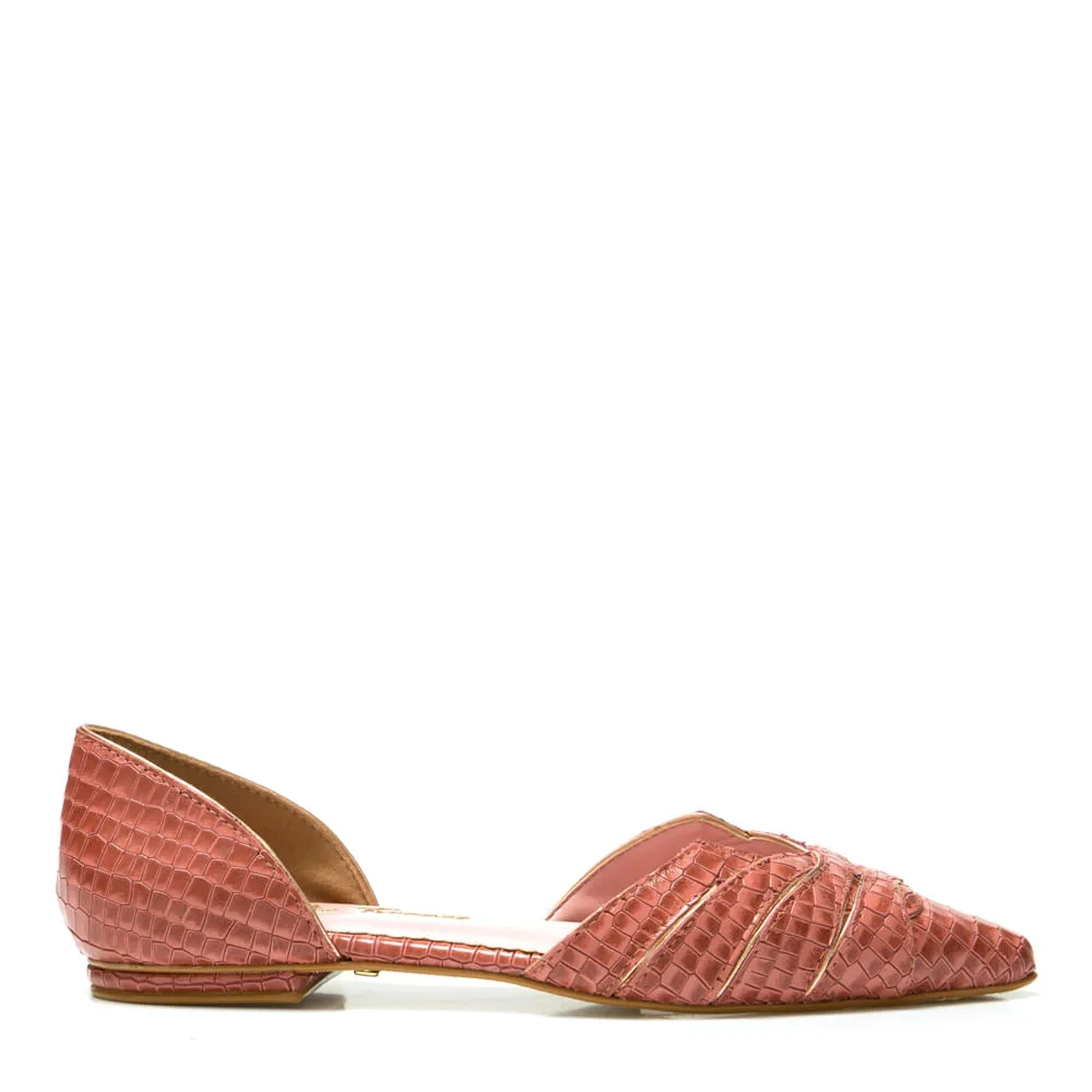 A Sapatilha Savana é produzida em couro com estampa animal. O modelo com bico fino e salto flat possui recortes finalizado com debrum de couro metalizado, trazendo luz a peça clássica que oferece ilimitadas opções de combinações.
