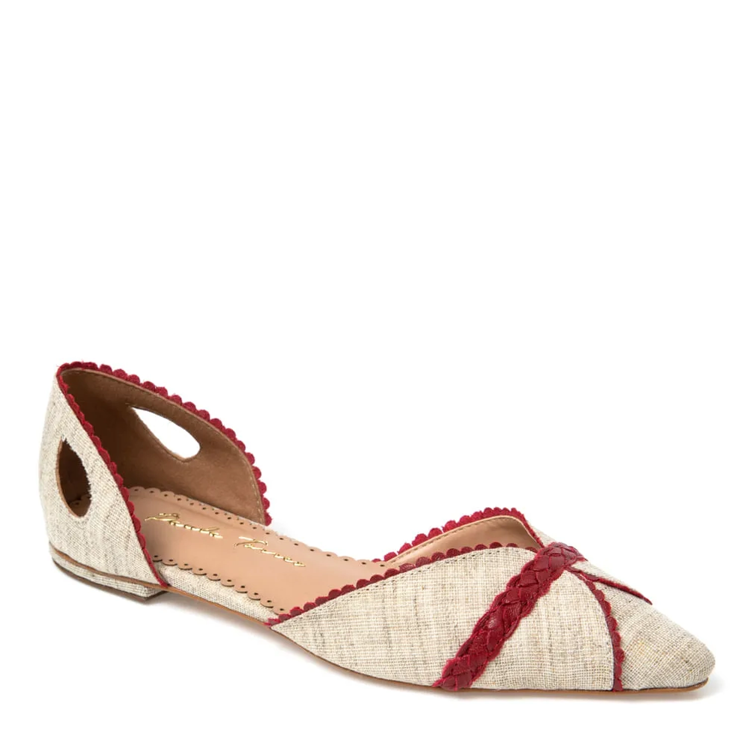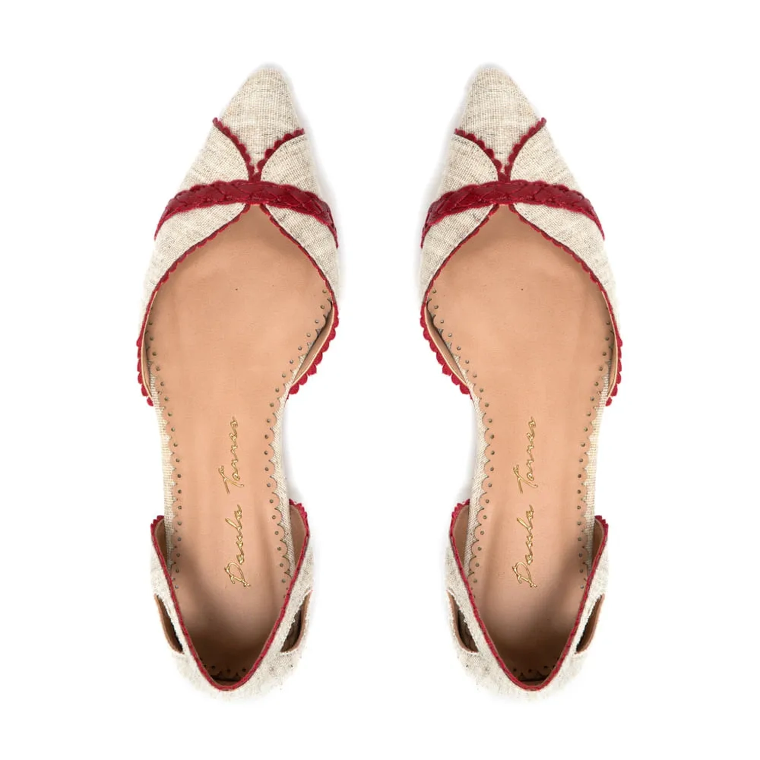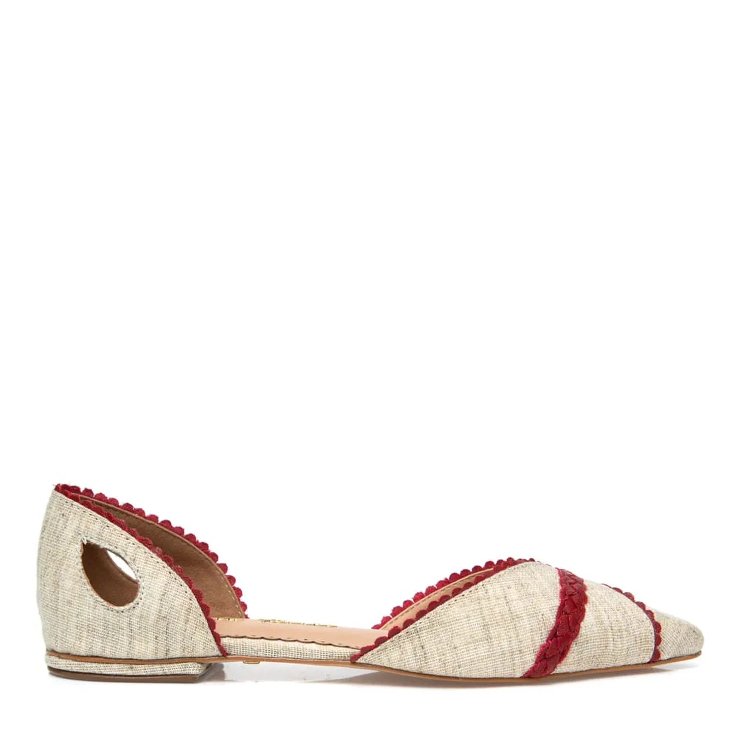 A Sapatilha Stella é confeccionada em tecido. Modelagem em bico fino e bordas do cabedal e calcanheira trabalhadas. Trança de couro na parte frontal. Detalhe de recorte em forma de pétala nas laterais da calcanheira, dão um toque especial ao modelo.