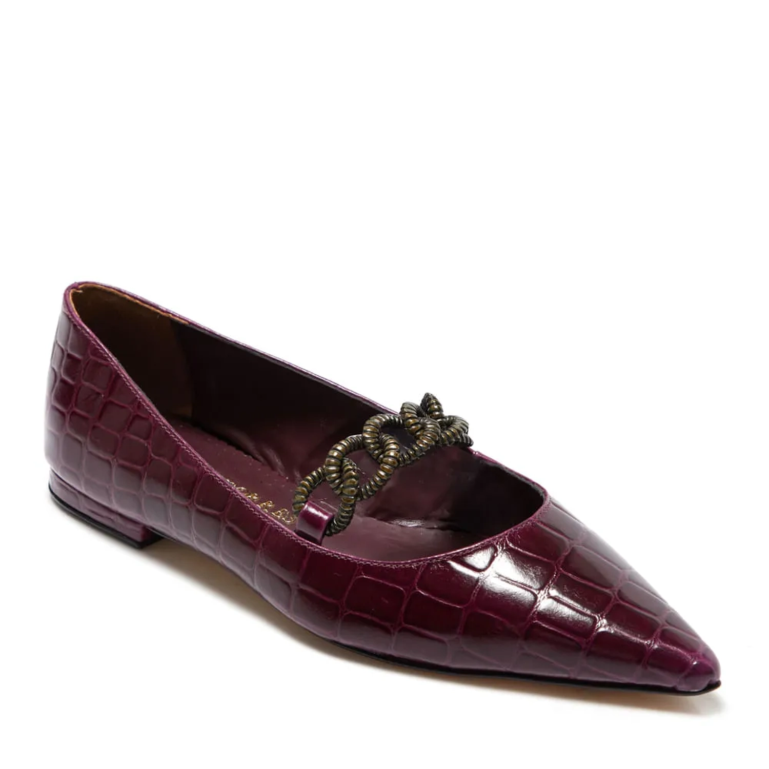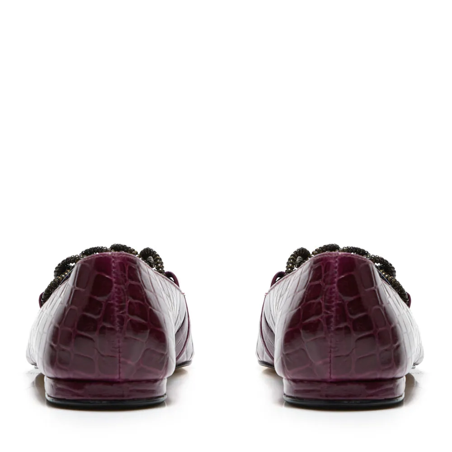 A Sapatilha Toronto é confeccionada em couro com textura croco. O modelo combina referências de moda com delicadeza no desenvolvimento. Sua construção é toda em couro com bico levemente fino e alongado, salto forrado com o mesmo couro do cabedal. O ponto chave fica no detalhe em corrente com elos no tom de ouro velho que acrescenta sofisticação. Uma peça eterna e atemporal que reafirma o design autoral, elegância, feminilidade e conforto que estão presentes no DNA Paula Torres.
