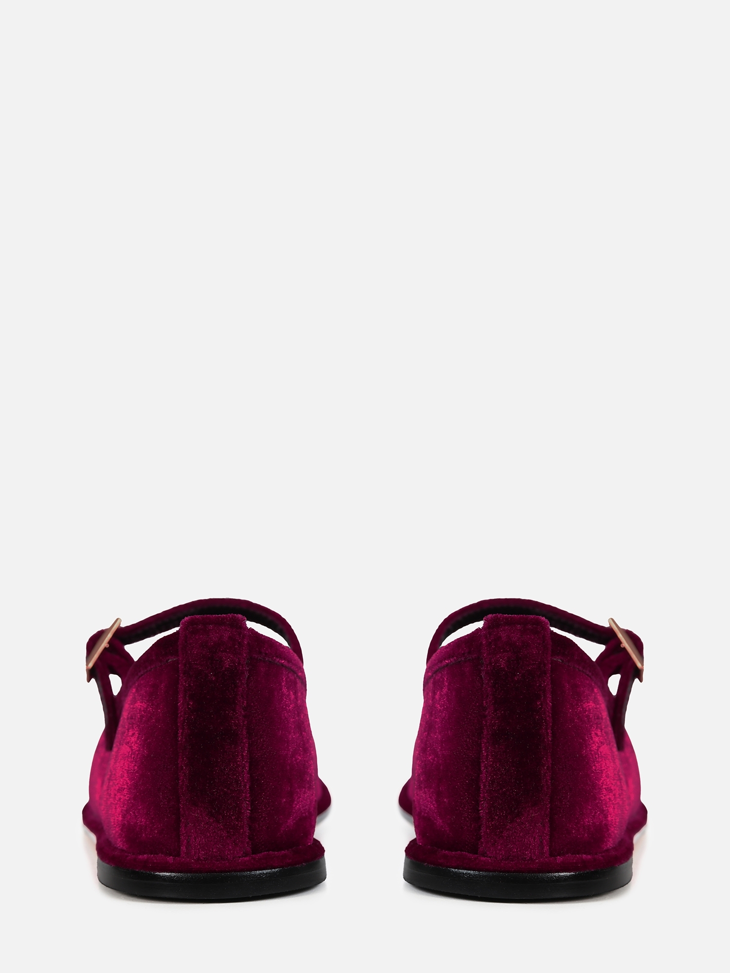 A Sapatilha Velvet é produzida em veludo de alta qualidade. O modelo de estilo Mary Jane apresenta tira com fivela no peito do pé, garantindo melhor ajuste. Possui bico arredondado com biqueira no mesmo material e solado de couro, que contribui para a durabilidade e o bom acabamento do produto. Versátil, é uma opção prática para o uso diário.