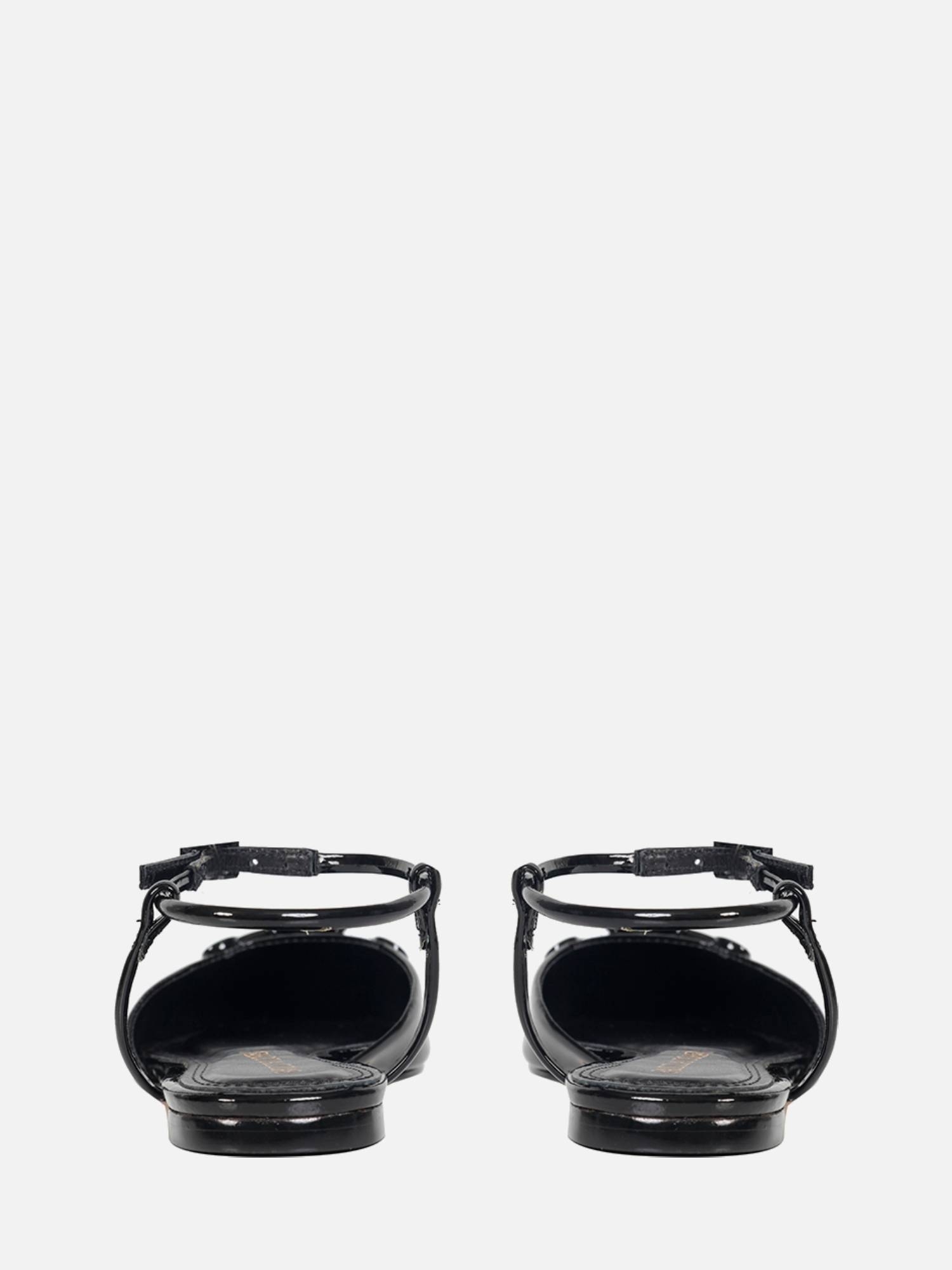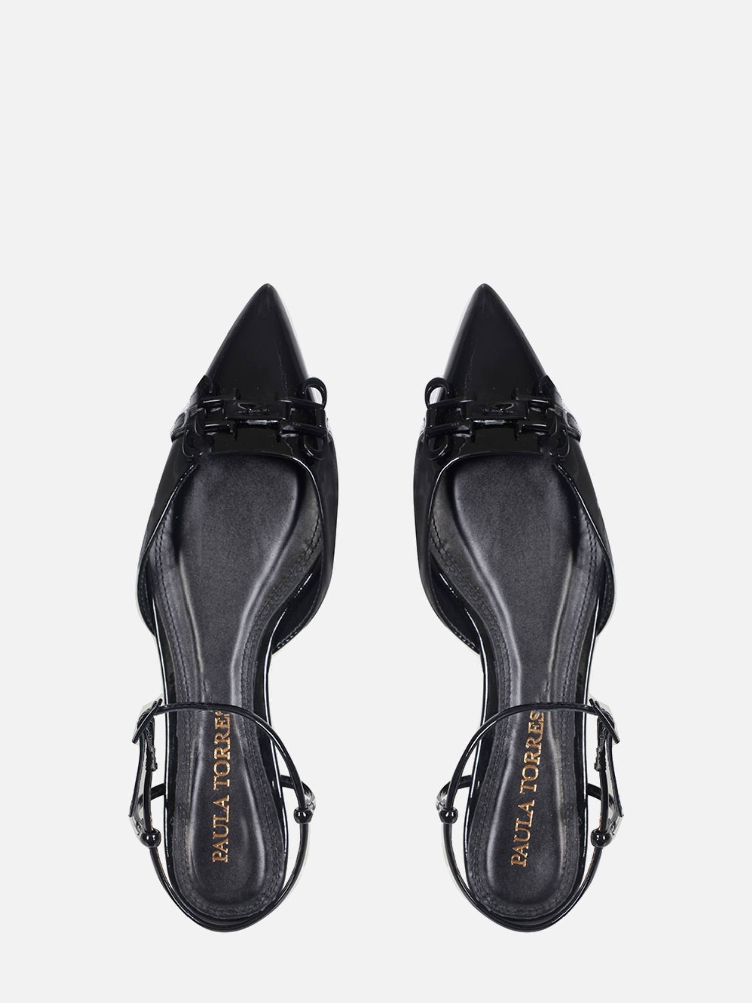 A Sapatilha Vera é um exemplo de conforto, confeccionado em couro envernizado, que garante destaque ao calçado. O bico fino e salto fino de tamanho baixo adiciona um toque ainda mais elegante. O novo monograma aparece de forma mais discreta, mas perder nossa identidade, mantendo o design limpo e refinado, assim como aparece no Scarpin Vera. O fechamento é através de tira que se ajusta ao tornozelo por fivela. Esses detalhes adicionam um charme único ao calçado, criando um visual sofisticado.