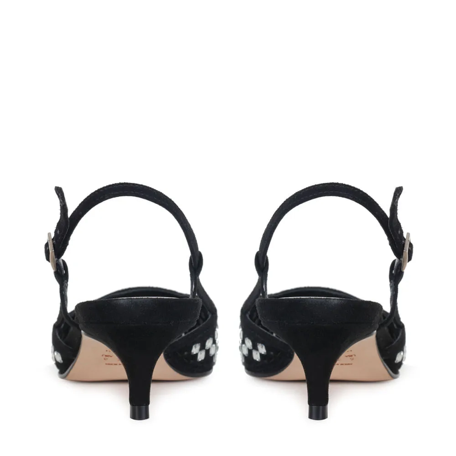 O Scarpin Antonela é um calçado sofisticado e elegante, confeccionado em camurça de alta qualidade. O bico fino confere um design clássico e feminino ao scarpin, proporcionando um toque refinado ao visual. O cabedal do Scarpin Antonela é trabalhado com recortes quadrados a laser, que adicionam um detalhe de textura e elegância ao calçado. Além disso, conta com uma aplicação de cristais, que traz um brilho sutil e um toque de glamour ao scarpin, tornando-o ainda mais especial e único. O salto fino confere altura e elegância à silhueta, tornando o Scarpin Antonela ideal para eventos formais e ocasiões especiais. O fechamento por fivela em metal permite um ajuste personalizado, garantindo segurança e conforto ao caminhar.