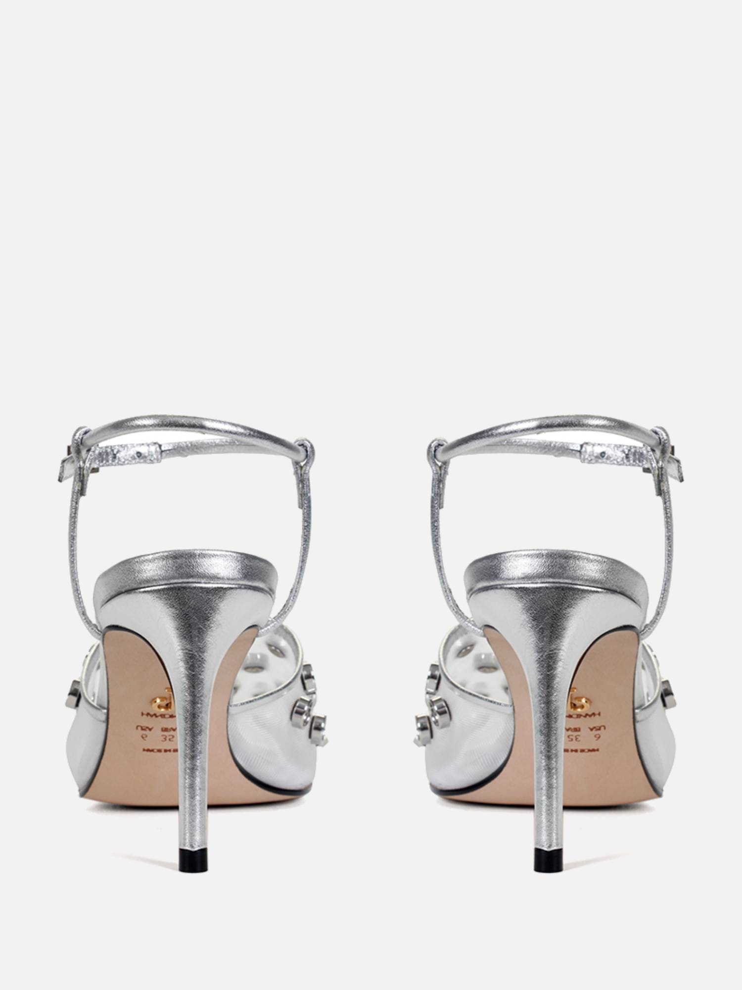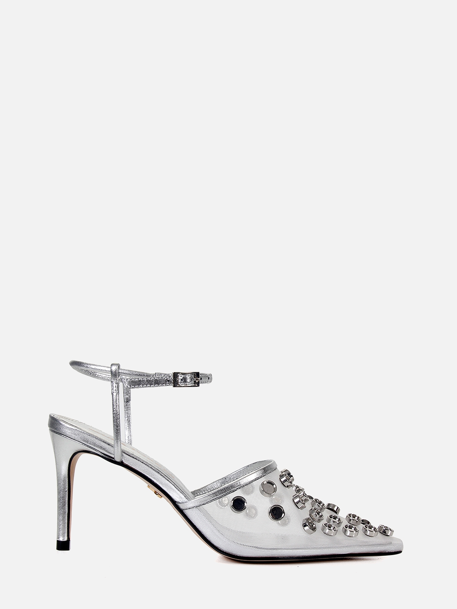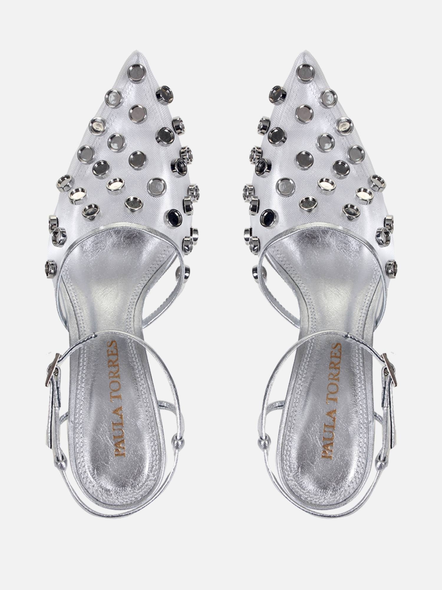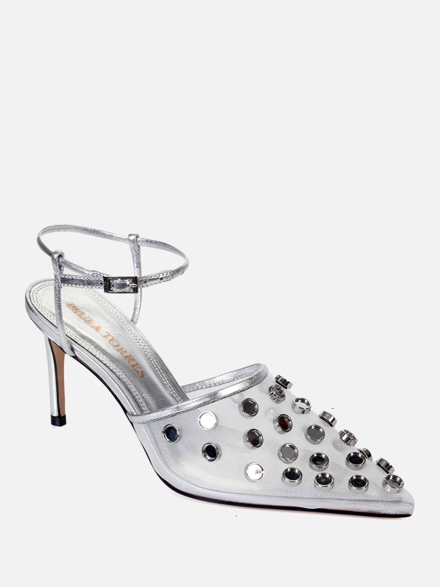 Apresentamos o Scarpin Aurora agora em outra versão, junto de um salto mais elevado. Escolha esse modelo para incorporar autenticidade ao seu visual. Ele é confeccionada em tecido telado com a aplicação de tachas metalizadas e detalhes em couro com acabamento metalizado na cor prata, além do envolvente bico fino, que oferece uma dose extra de estilo. Possui tiras aplicadas que adornam o tornozelo com fechamento por fivela superior que proporciona praticidade e um ajuste para te fornecer segurança a cada passo. Esse modelo te proporcionará um visual autêntico.