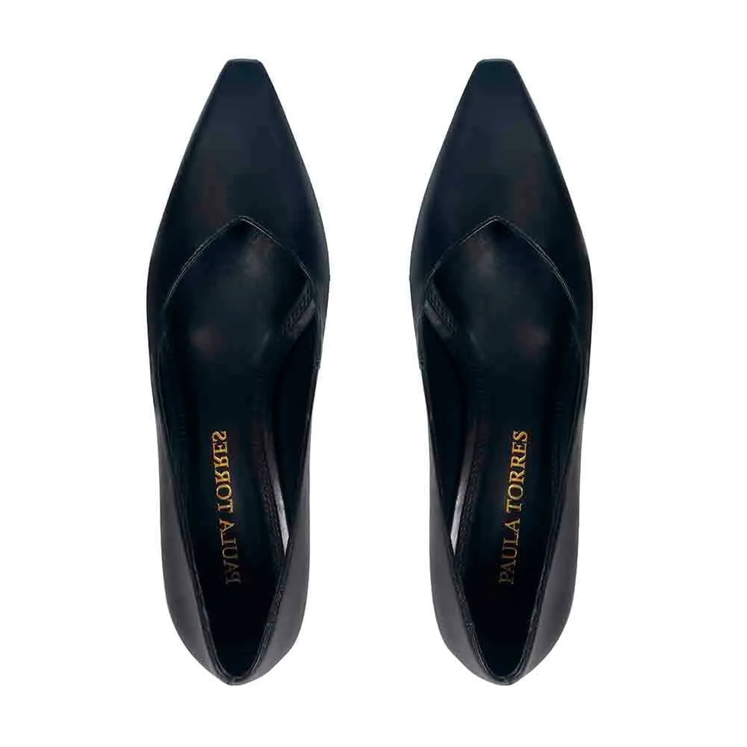 O Scarpin Carmela é confeccionado em couro. O modelo bico fino e decote arredondado. Salto médio tipo virgula e solado em couro.