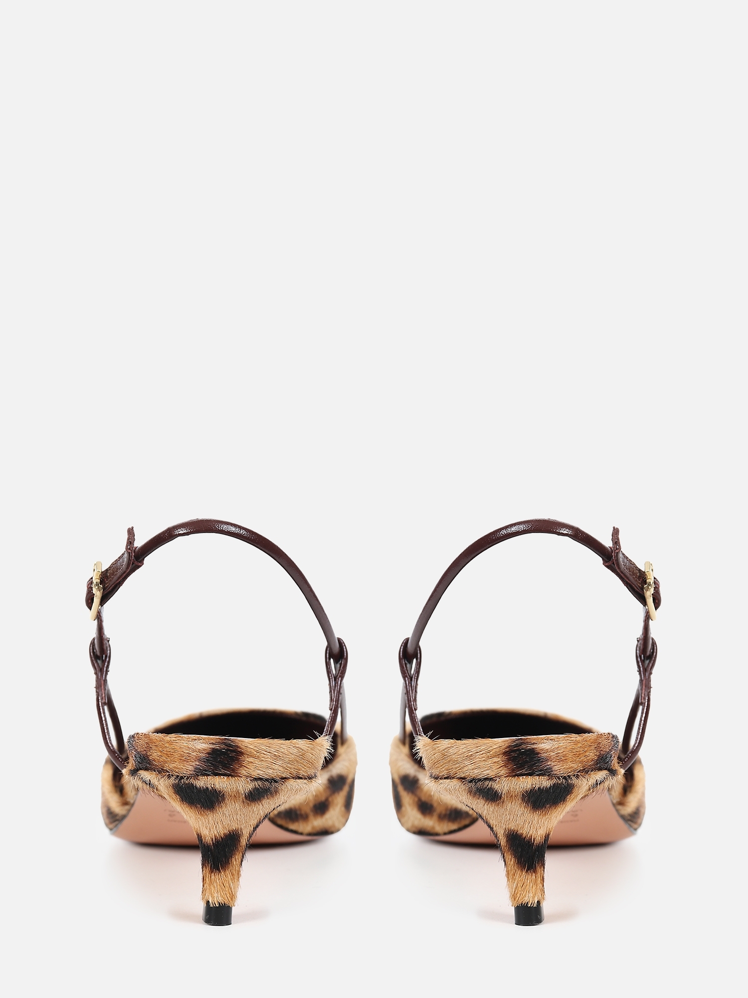 O Scarpin Glória é produzido em pelo com estampa animal print, conferindo um visual marcante e elegante. O modelo de estilo slingback apresenta fivela lateral para ajuste, que proporciona segurança e um acabamento delicado. Conta com salto baixo fino, que garante conforto e leveza ao caminhar, e solado de couro, que assegura durabilidade e um acabamento refinado.