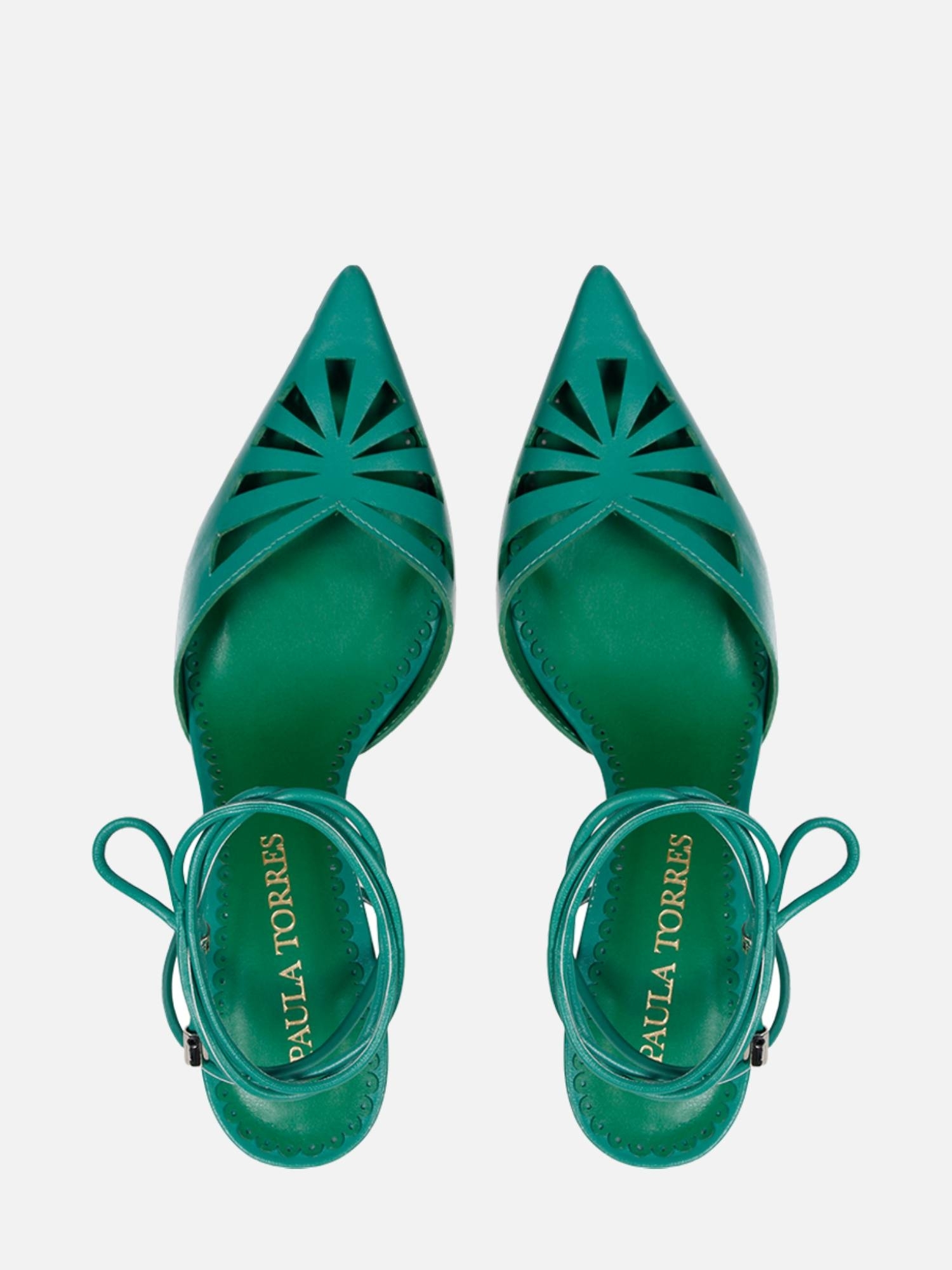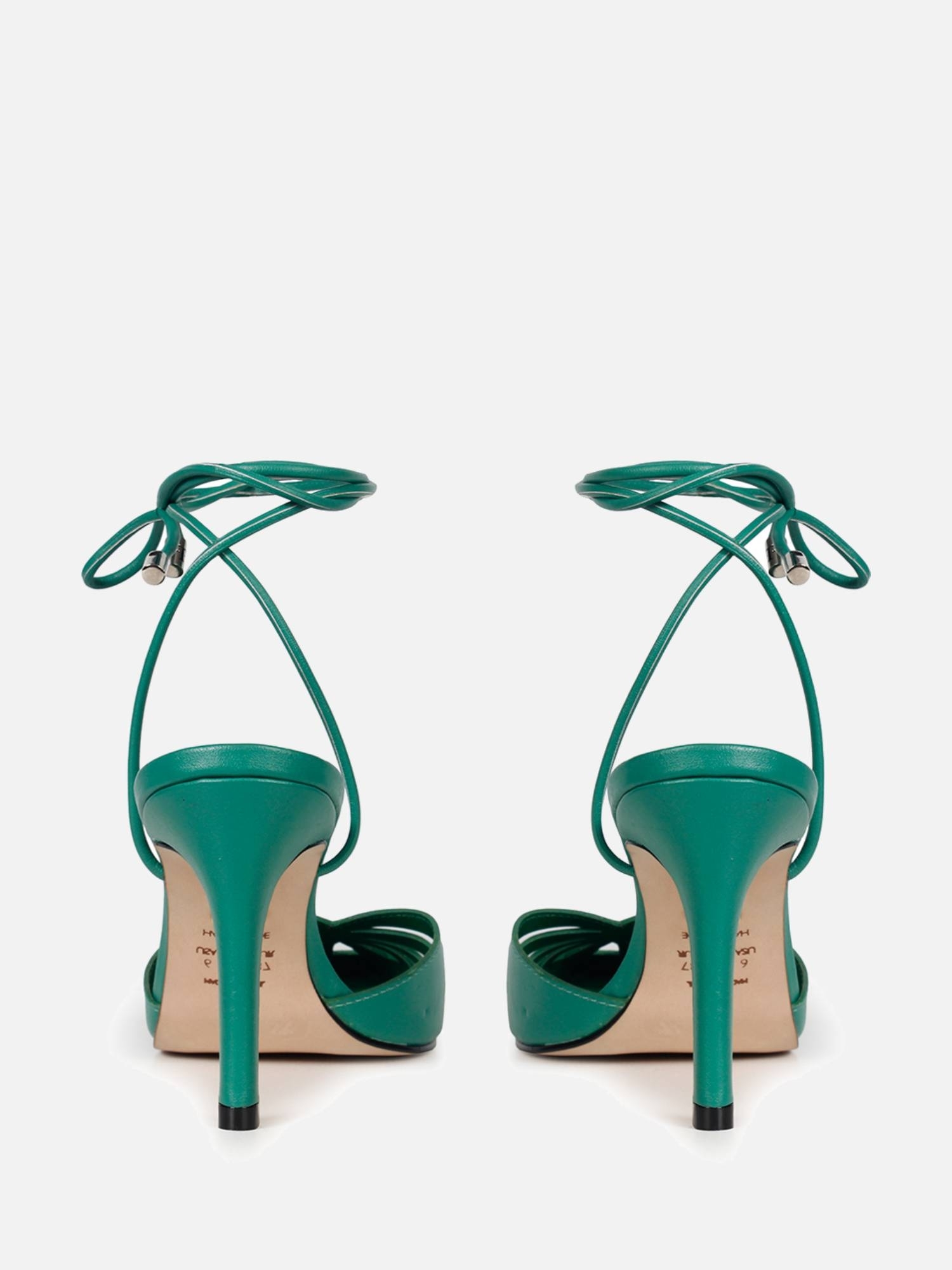 O Scarpin Kate é confeccionado em couro. Modelagem clássica, em bico fino e salto alto agulha. O destaque são os recortes na parte frontal do cabedal, conferindo uma estética contemporânea e fresca. O fechamento por amarração, finalizada em ponteiras metálicas com o monograma da marca, tornam o modelo delicado. A monocromia e o decote em ¿v¿ transmite sofisticação e elegância.