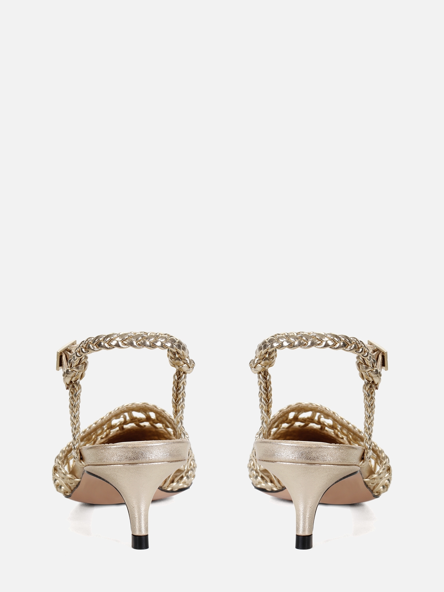 O Scarpin Lily salto baixo em couro dourado da Paula Torres combina o toque artesanal com a elegância atemporal. O modelo apresenta cabedal em trama trançada que confere leveza e sofisticação ao visual. A tira trançada com fivela no tornozelo garante ajuste seguro e delicado.